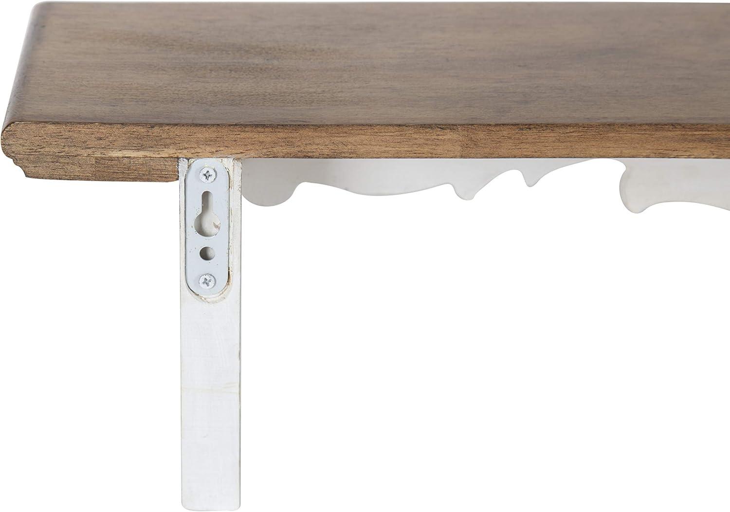 Kate and Laurel Abberly Farmhouse Wall Shelf, 28 x 5 x 6.5, Rustic Brown and White, Rustic Floating Shelf for Wall
