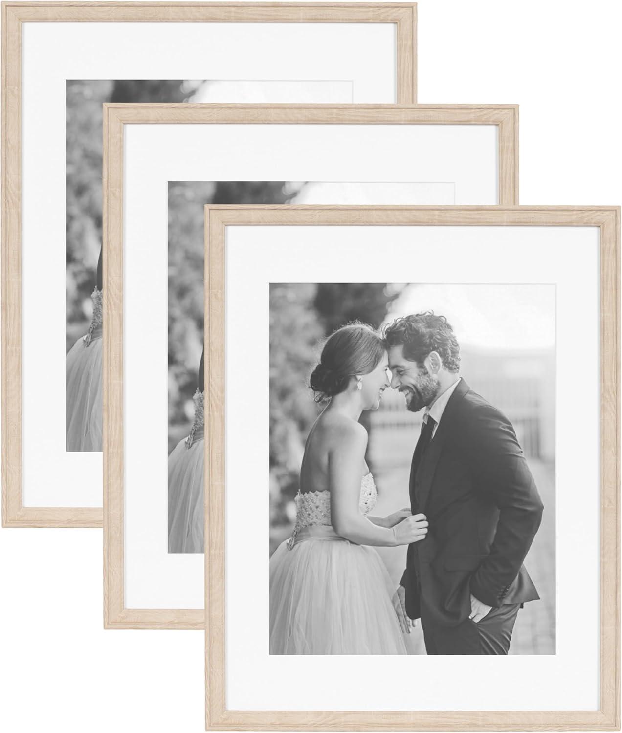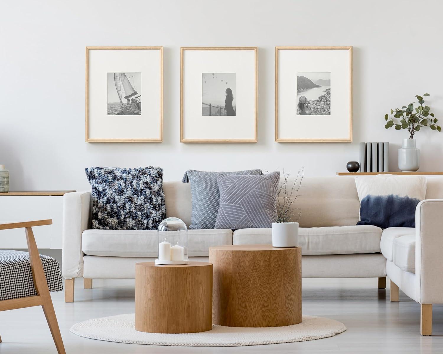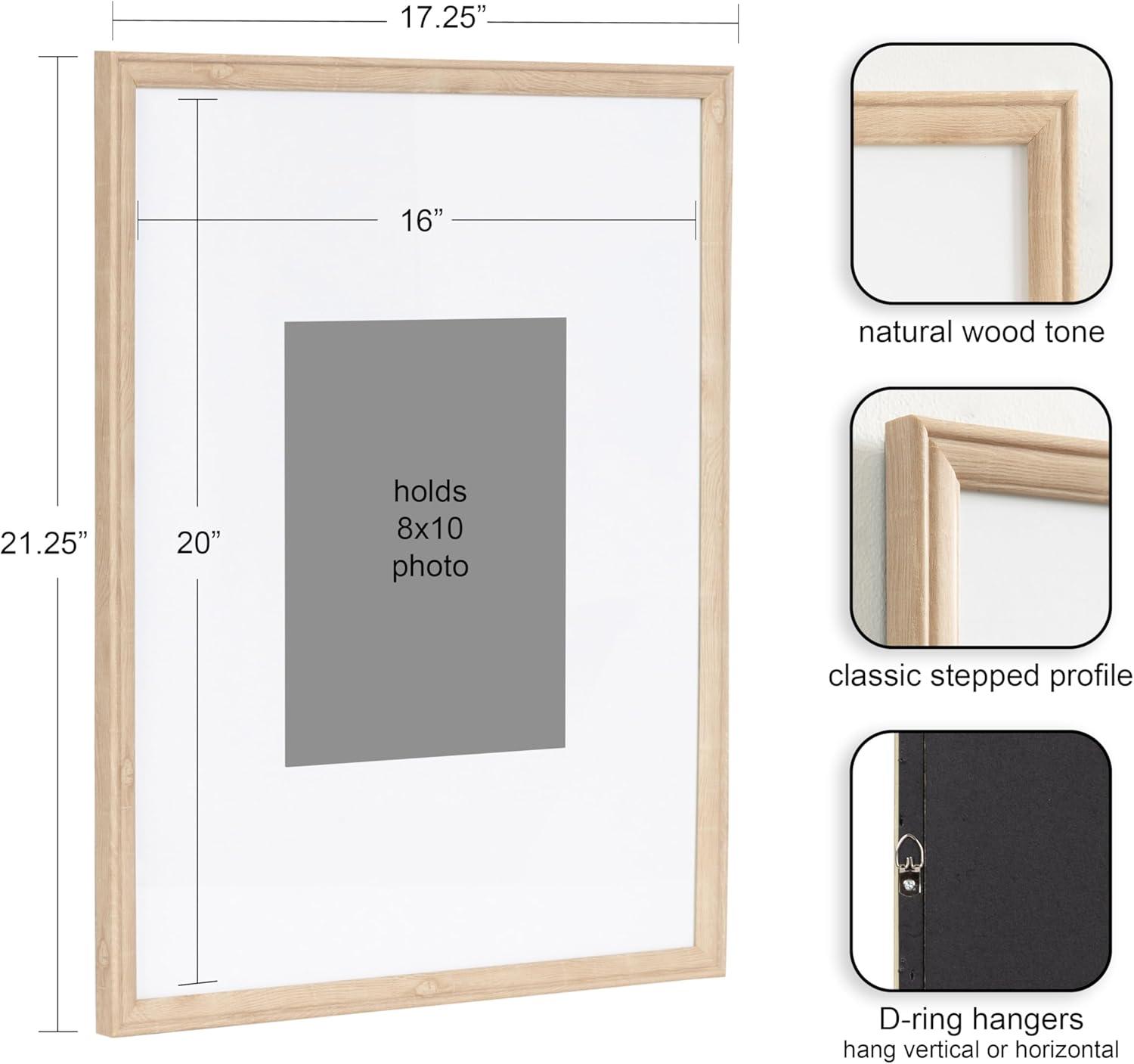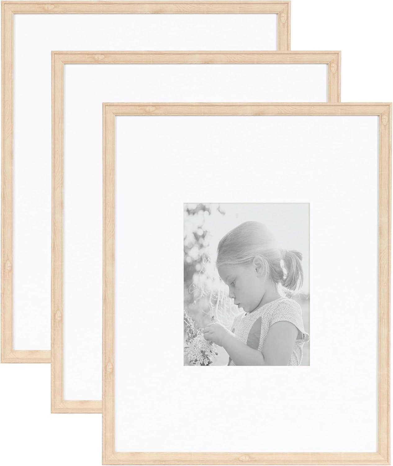 Kate and Laurel Adlynn Coastal Rectangle Picture Frame Set of 3, 16 x 20 matted to 8 x 10, White, Modern Three-Piece Photo Frame Set for Gallery Wall Decor in Living Room Wall Display(Natural)