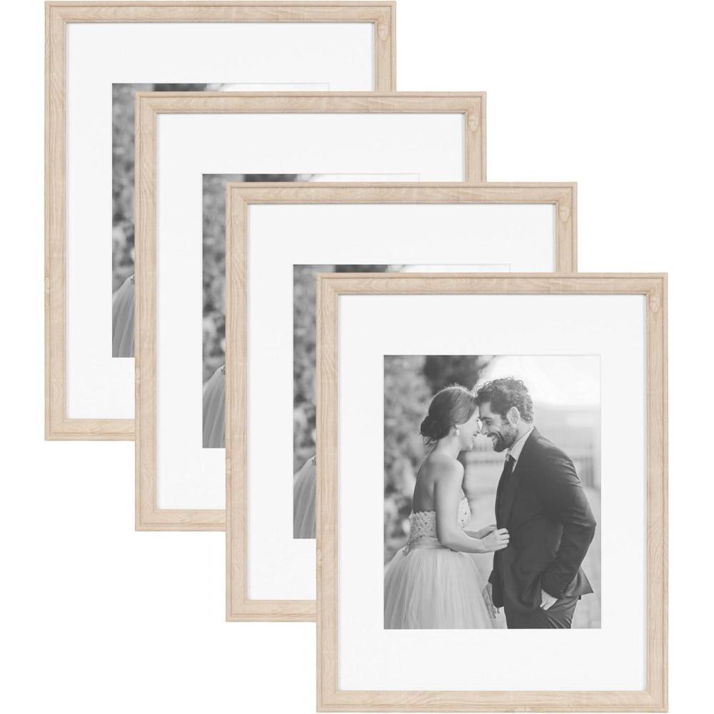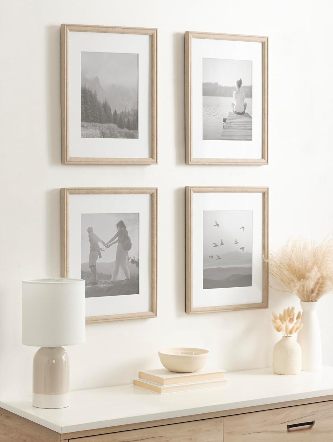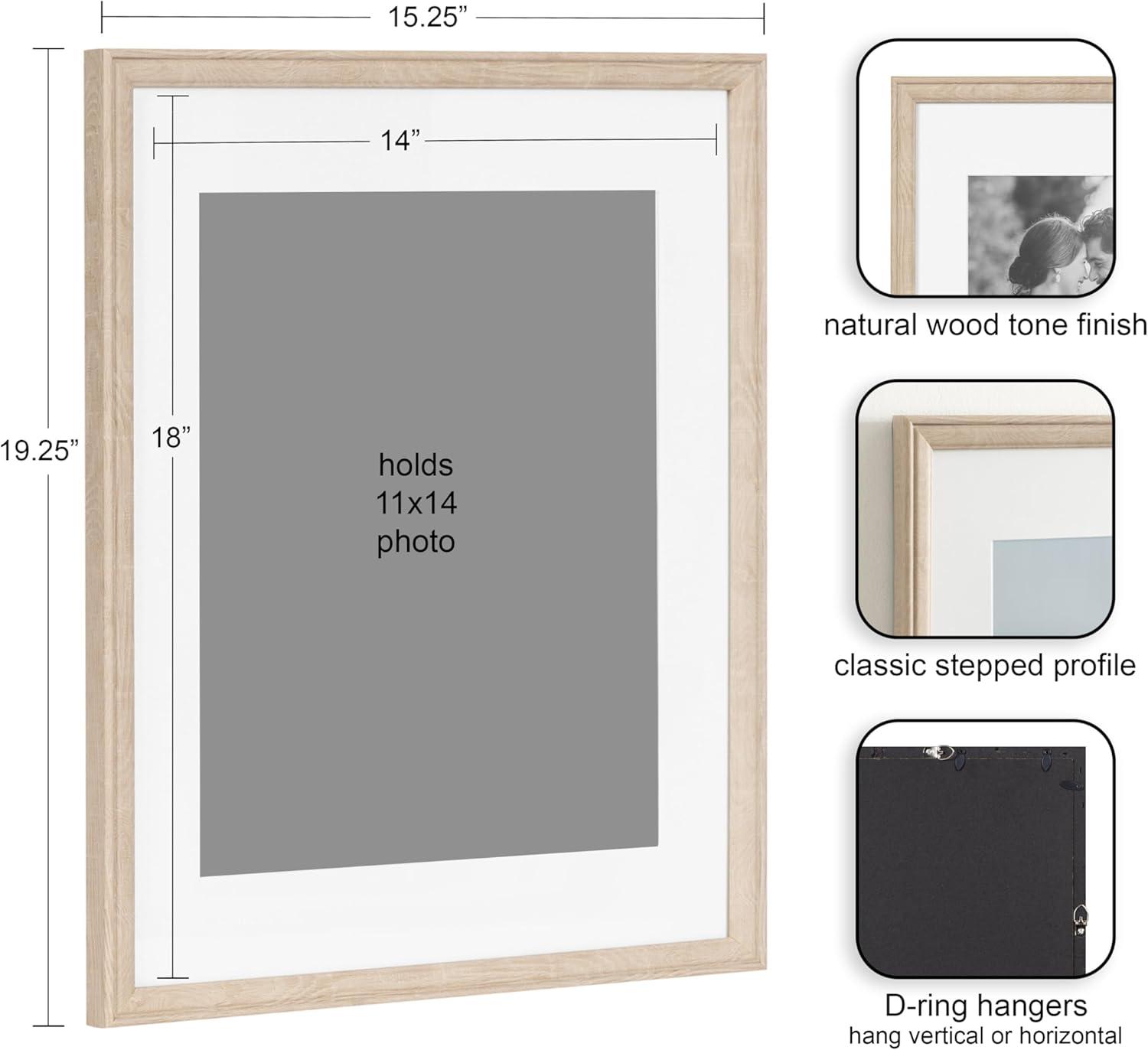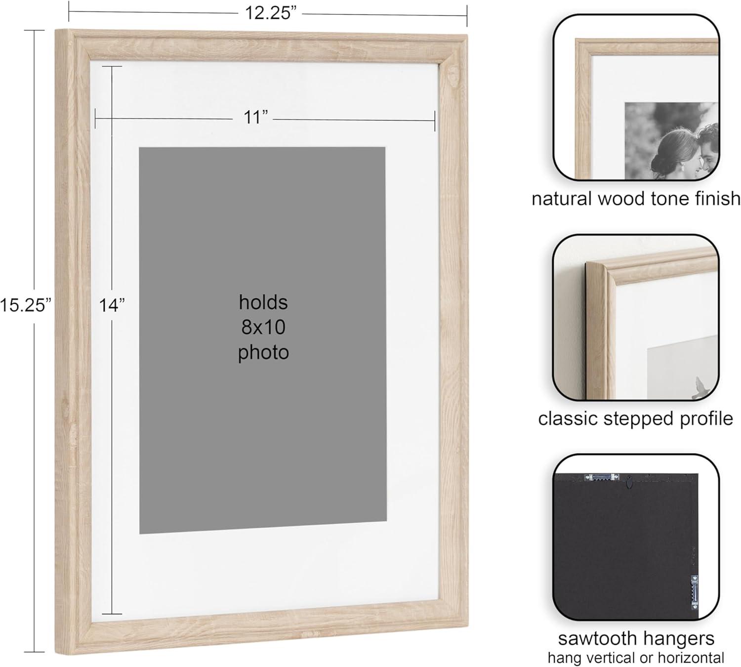 Kate and Laurel Adlynn Coastal Rectangle Picture Frame Set of 3, 16 x 20 matted to 8 x 10, White, Modern Three-Piece Photo Frame Set for Gallery Wall Decor in Living Room Wall Display(Natural)