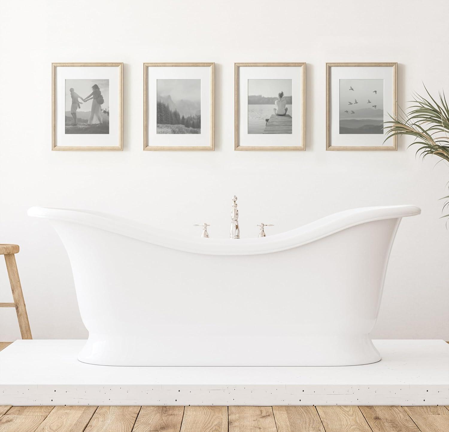 Kate and Laurel Adlynn Coastal Rectangle Picture Frame Set of 3, 16 x 20 matted to 8 x 10, White, Modern Three-Piece Photo Frame Set for Gallery Wall Decor in Living Room Wall Display(Gold)