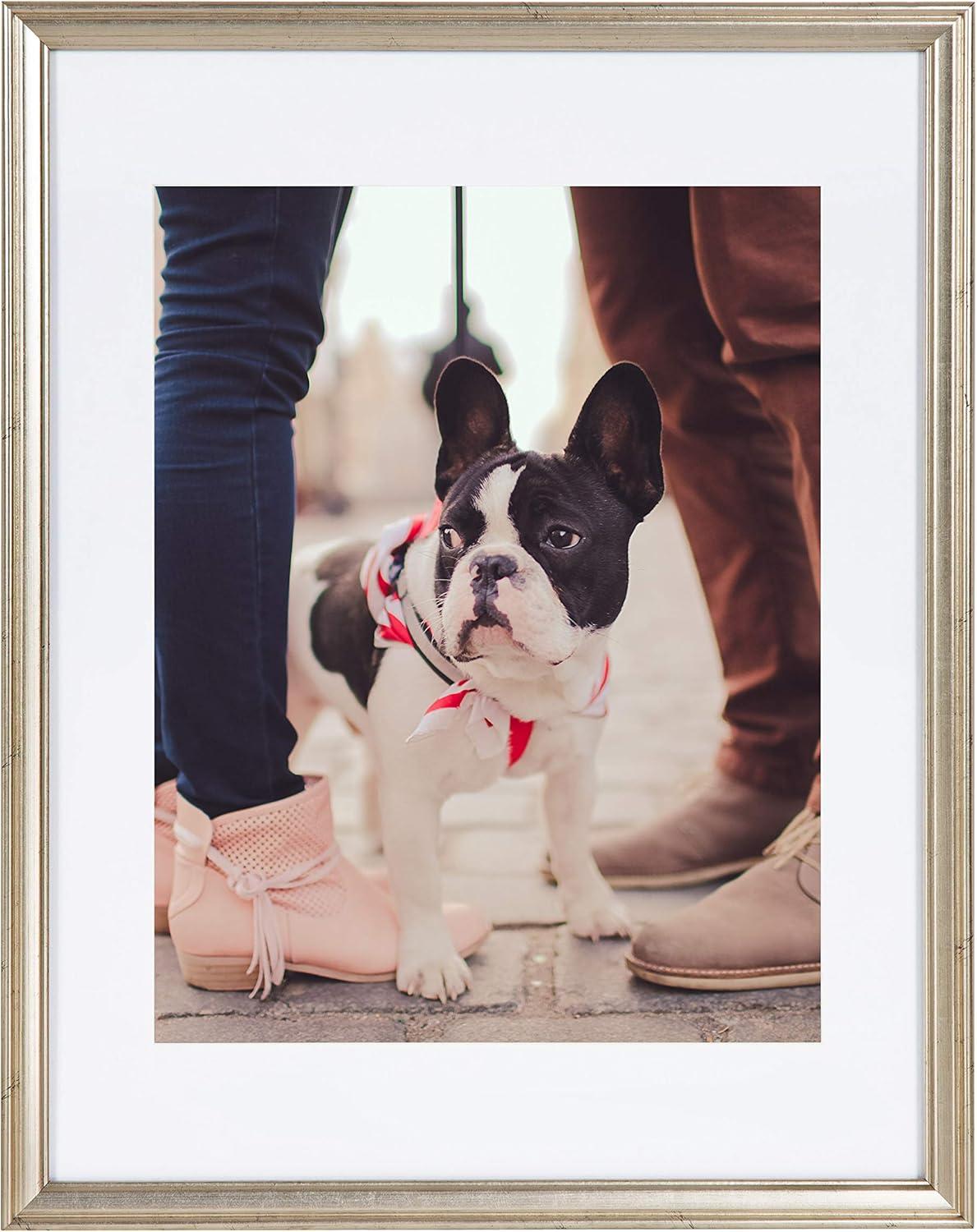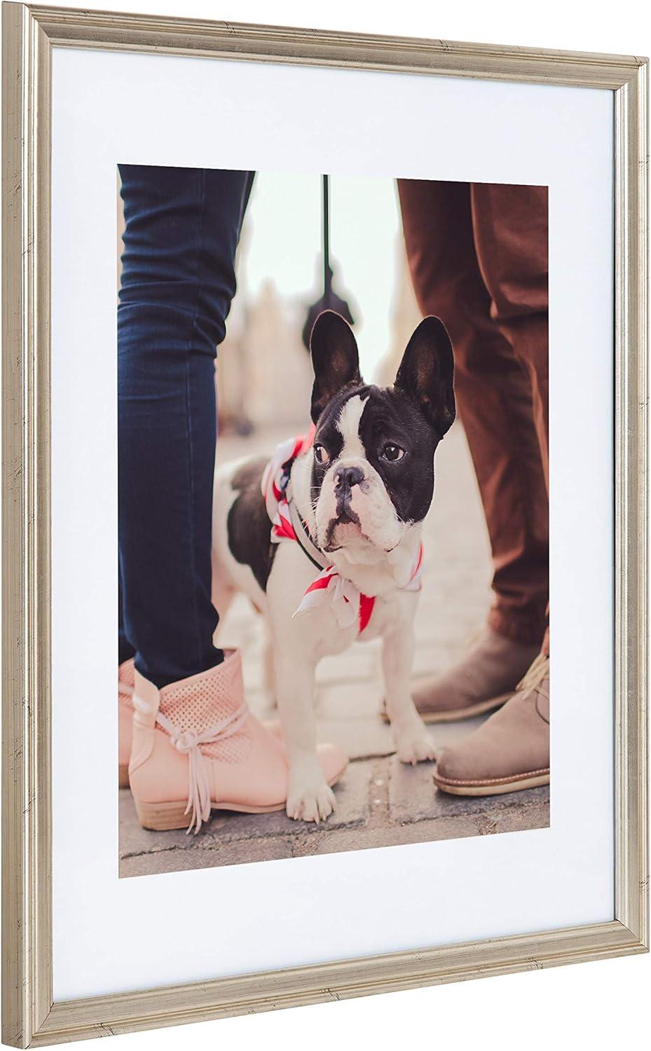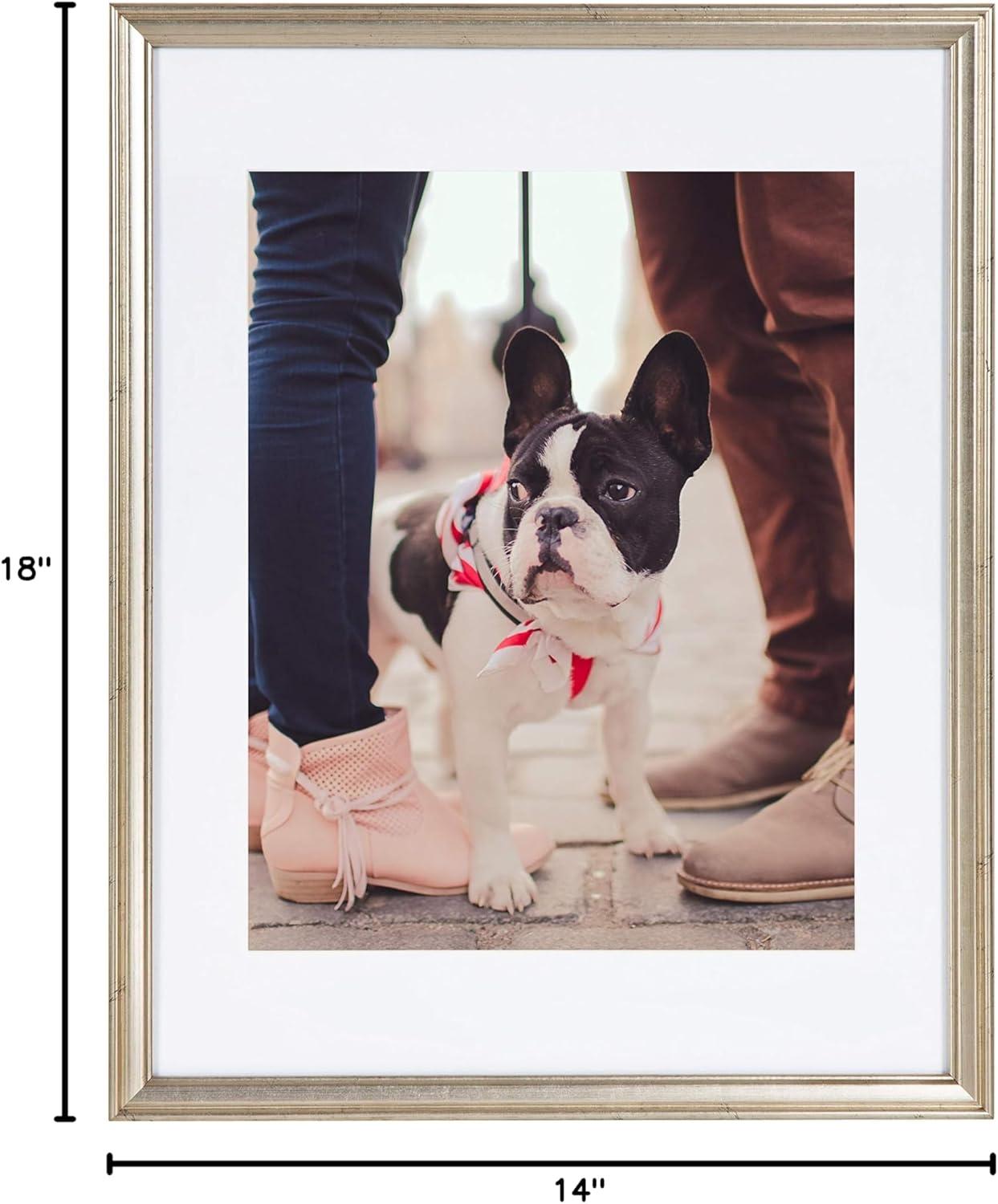 Enjoy the latest addition to our viral Adlynn picture frame set. Family photographs should be displayed where they can be a constant reminder that time spent with family and friends should be remembered and enjoyed by everyone. Sharing those photos is a joy that brings both satisfaction and entertainment. This three-piece set fills your space with a cohesive, refined look without the ridiculous picture frame prices. With three separate frames, you can showcase them together for a statement look or throughout your home for a sprawling, connective look. The Kate and Laurel Adlynn picture frame set helps you tell your story creatively, tastefully, and with the theme you have in mind. These white, refined frame profiles create a modern look and feel that accentuates your favorite photographs. Each frame fits an 8 x 10 inch photo with the included white mat or a 16 x 20 inch photo without the mat. The outside dimensions of each frame are 17.25 inches by 21.25 inches.
