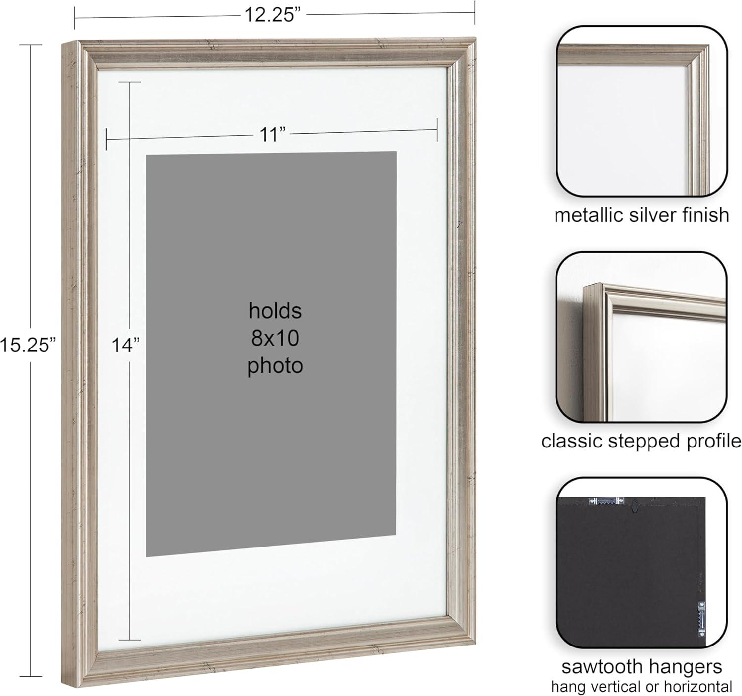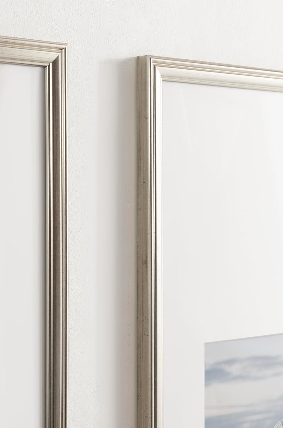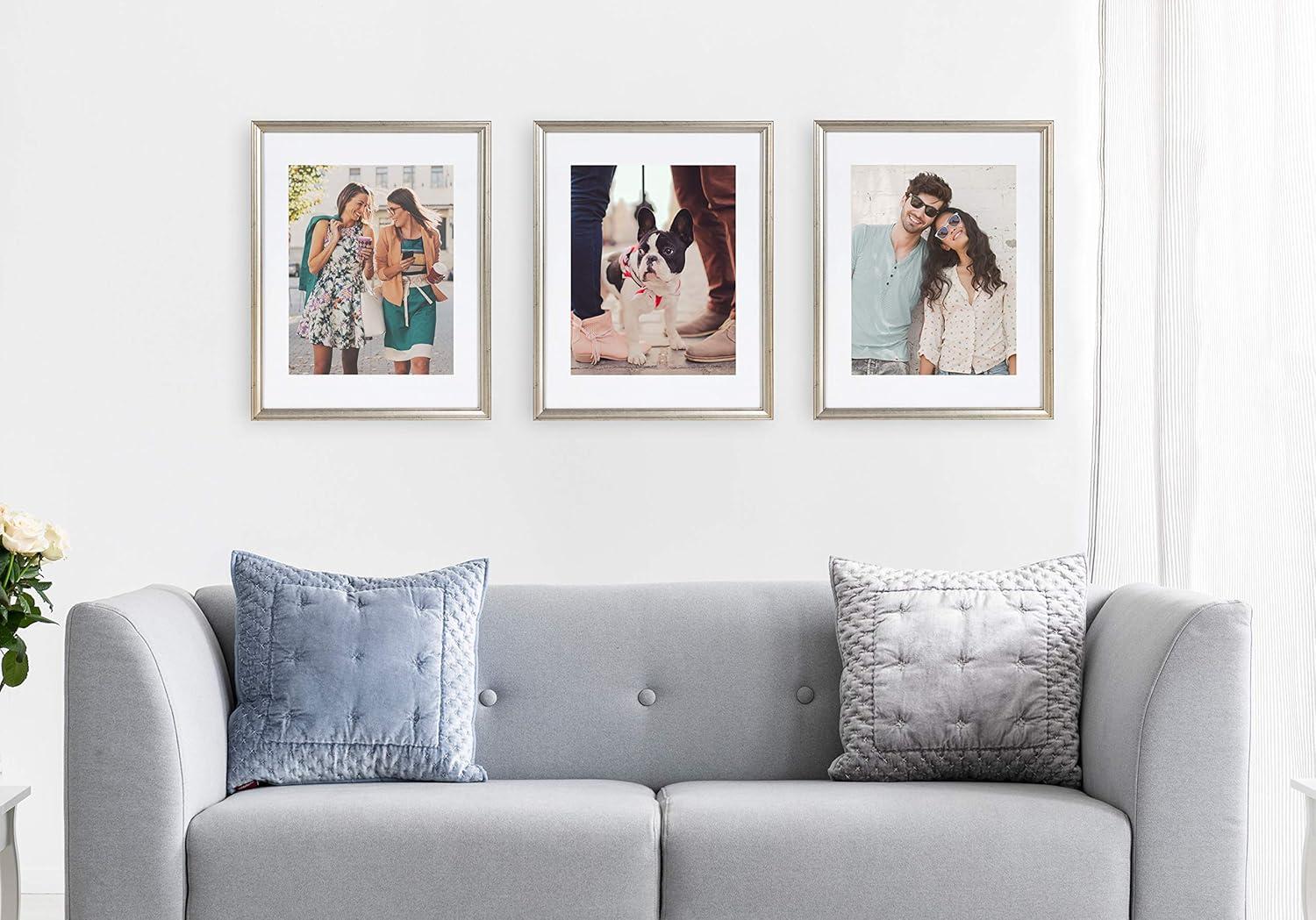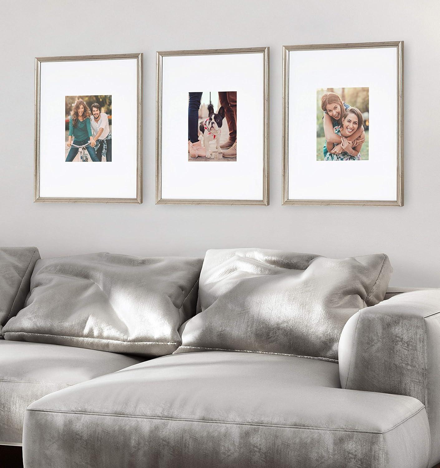 Kate and Laurel Adlynn Coastal Rectangle Picture Frame Set of 3, 16 x 20 matted to 8 x 10, White, Modern Three-Piece Photo Frame Set for Gallery Wall Decor in Living Room Wall Display(Silver)