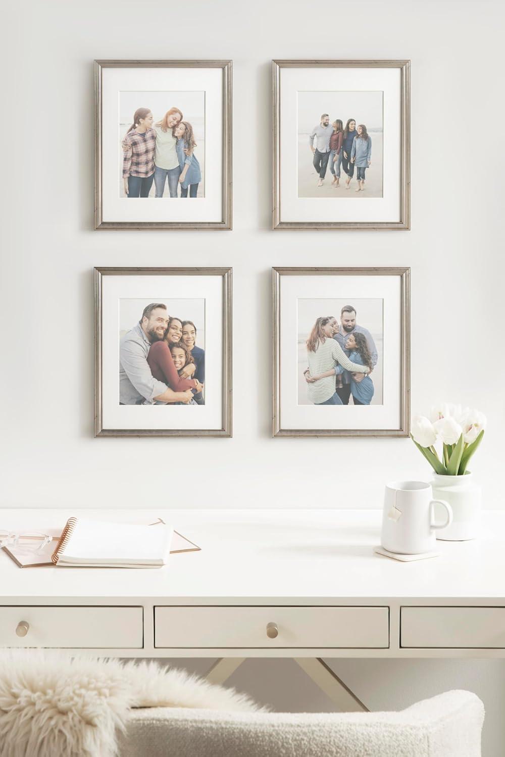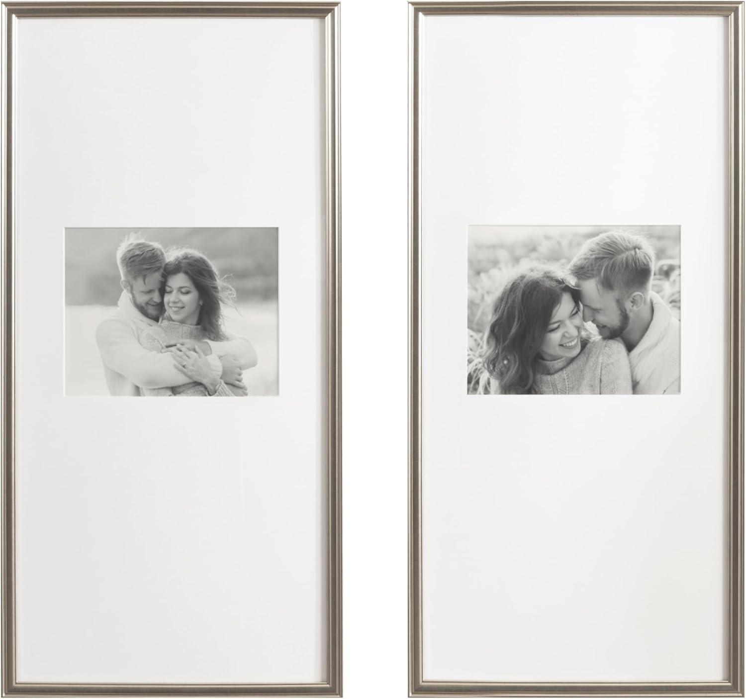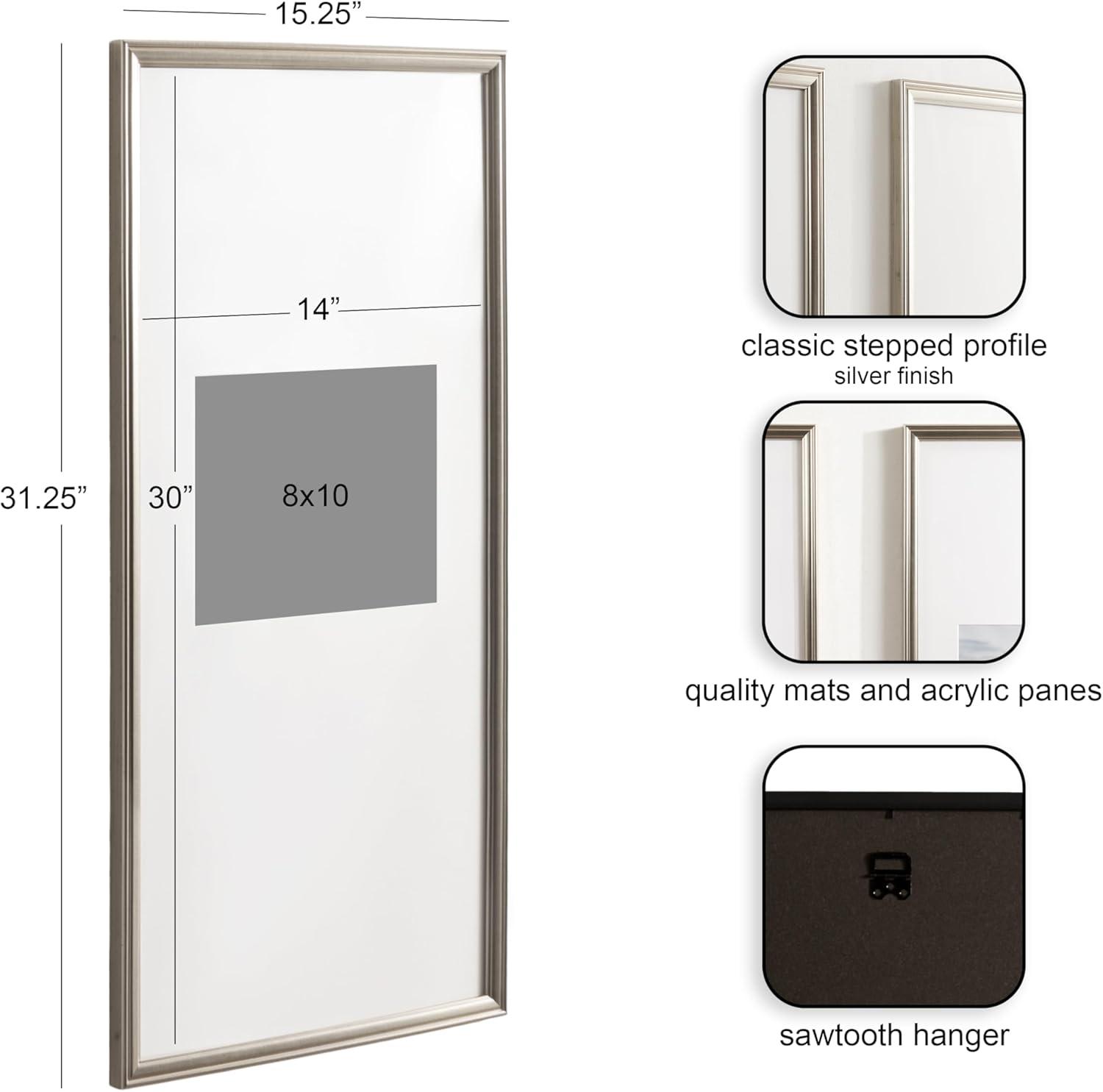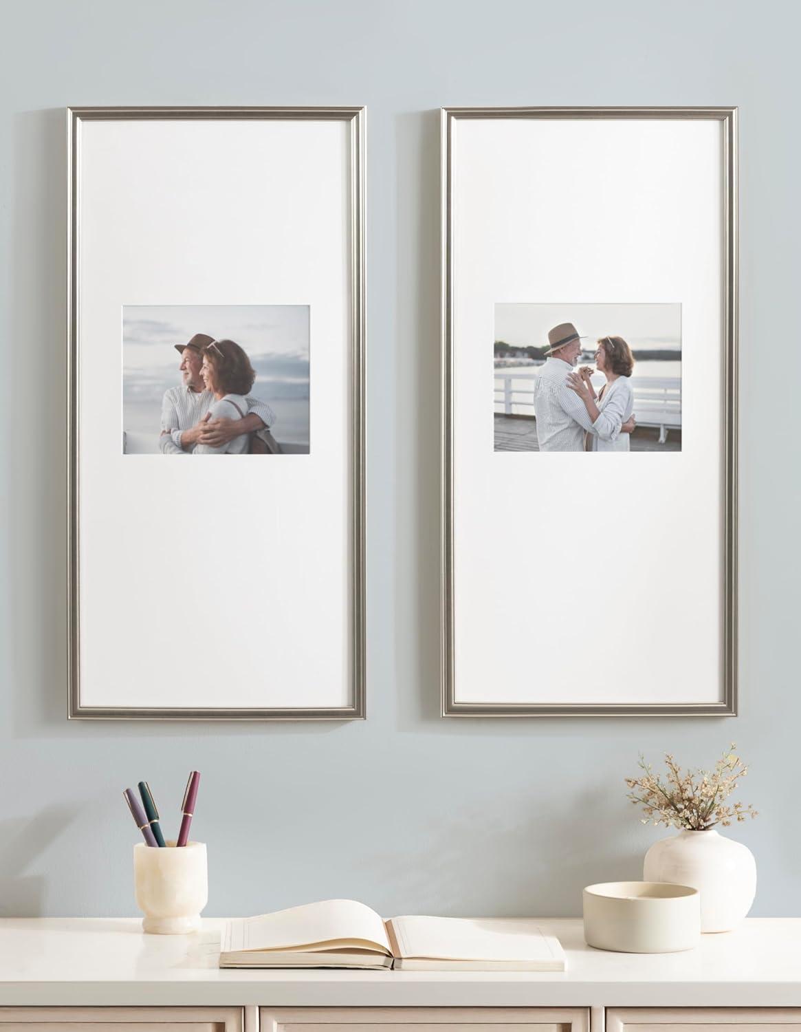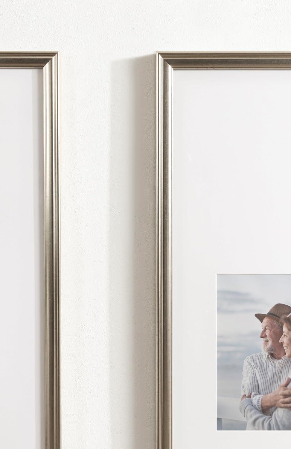 Kate and Laurel Adlynn Coastal Rectangle Picture Frame Set of 3, 16 x 20 matted to 8 x 10, White, Modern Three-Piece Photo Frame Set for Gallery Wall Decor in Living Room Wall Display(Silver)