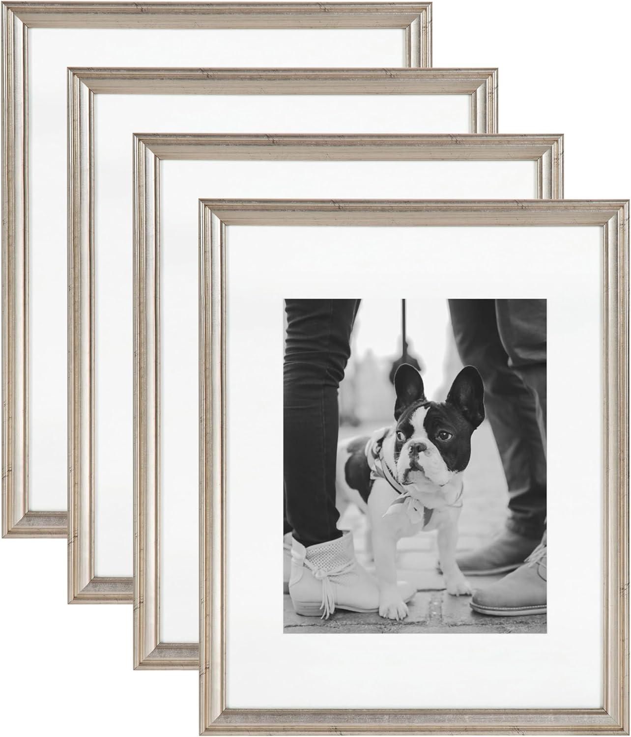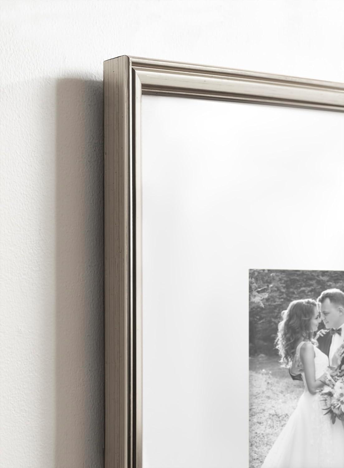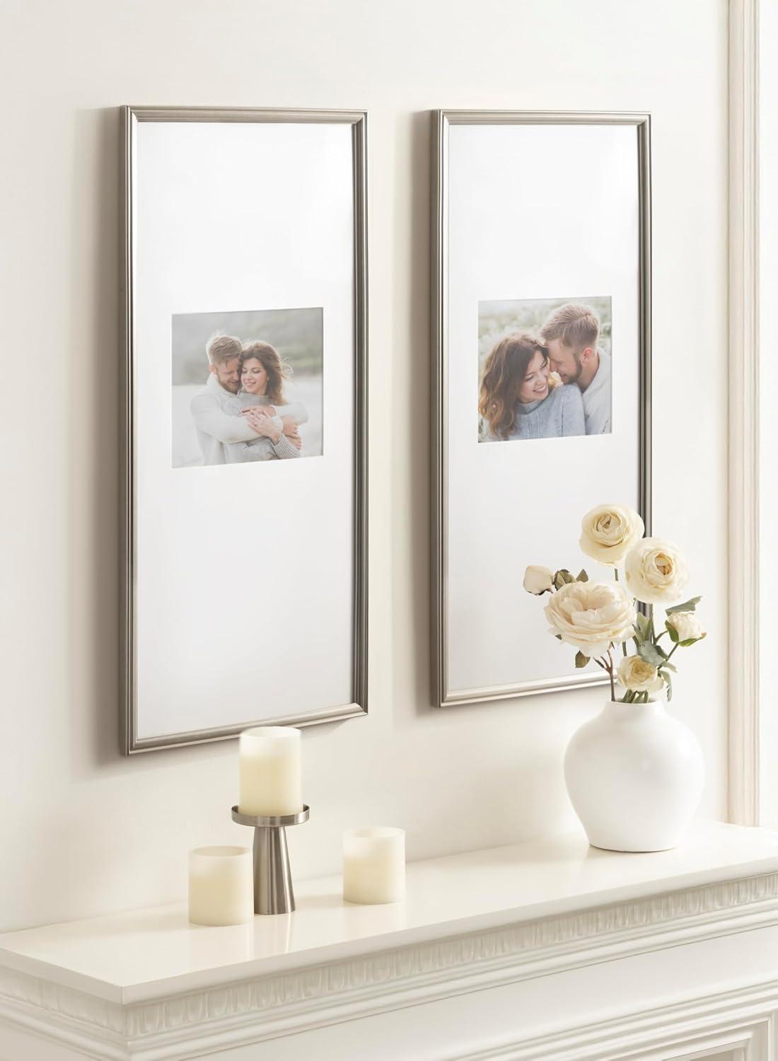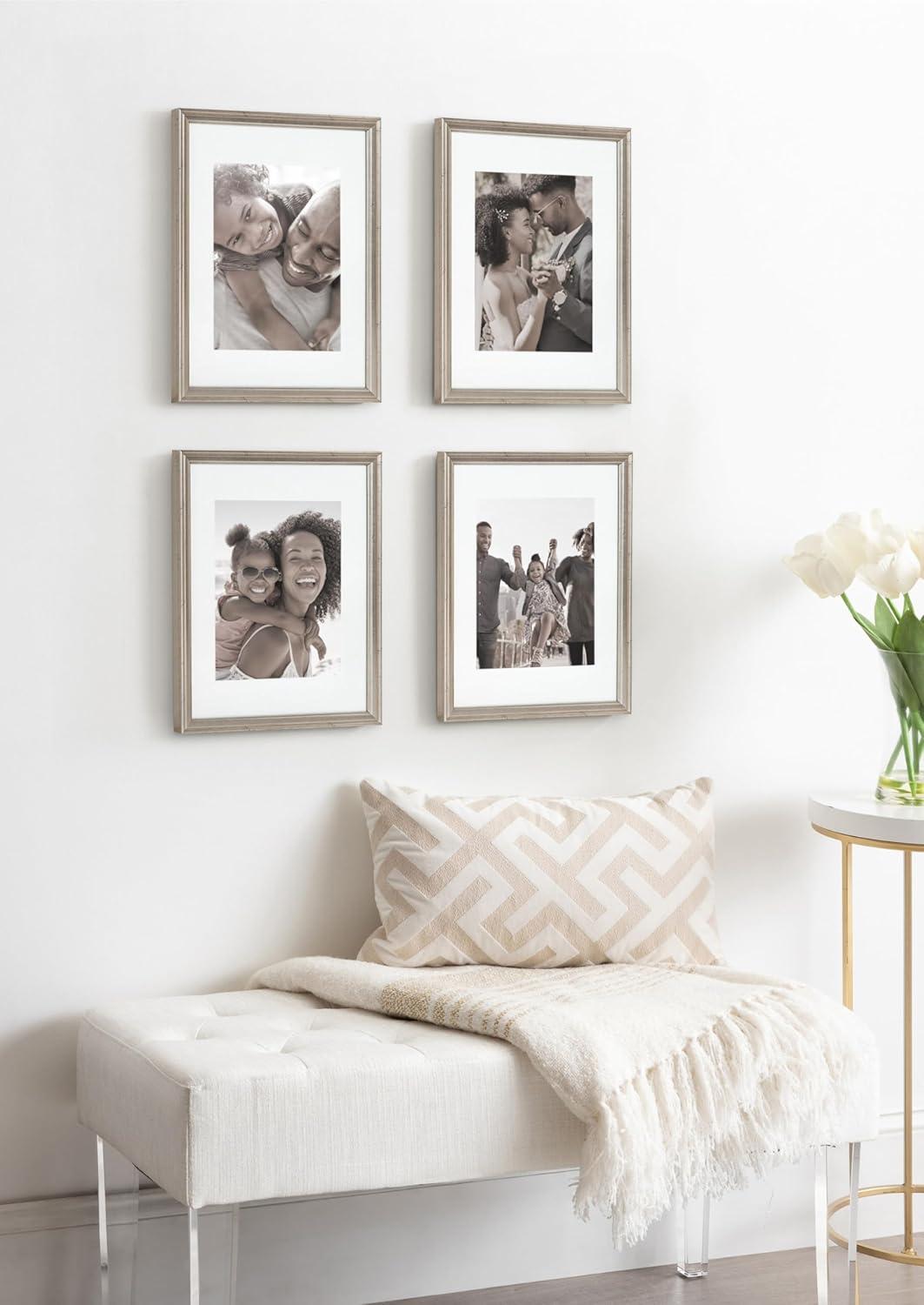 Kate and Laurel Adlynn Coastal Rectangle Picture Frame Set of 3, 16 x 20 matted to 8 x 10, White, Modern Three-Piece Photo Frame Set for Gallery Wall Decor in Living Room Wall Display(Silver)