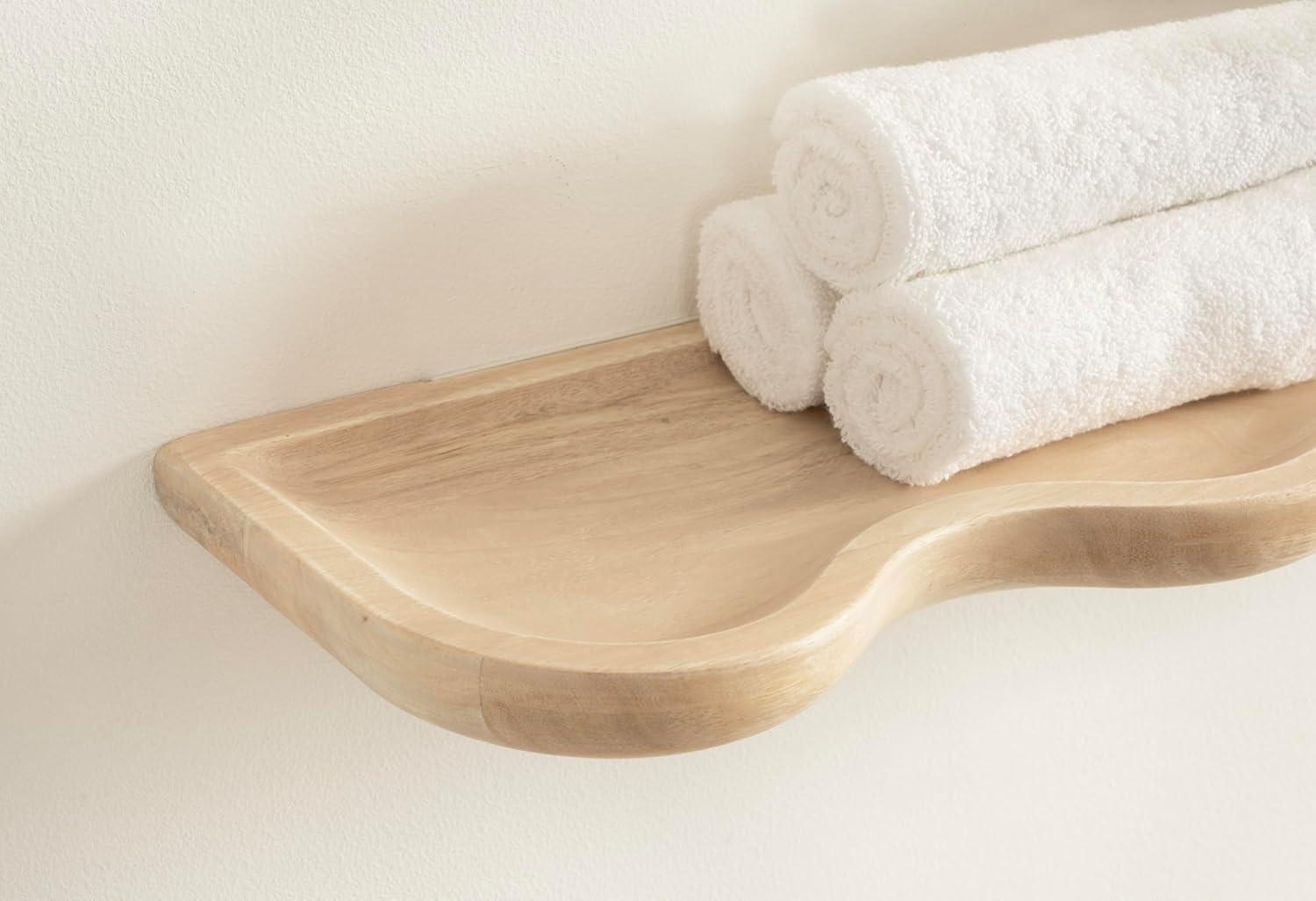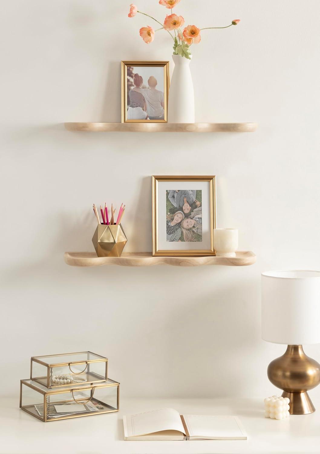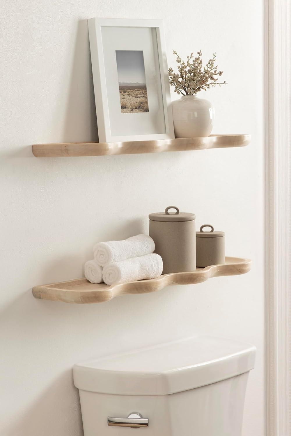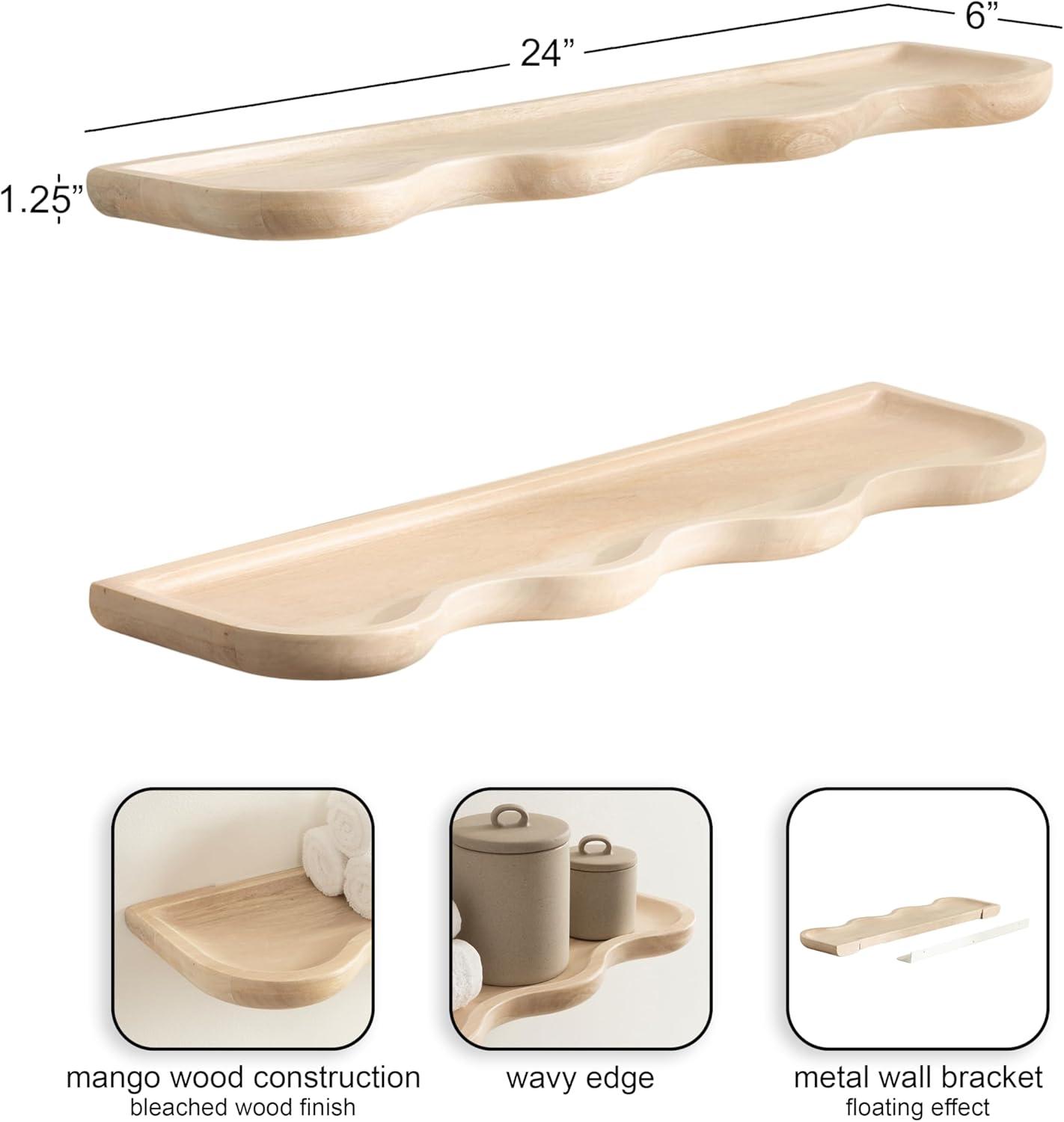 Kate and Laurel Alezar Modern Scalloped Mango Wood Floating Shelves, Set of 2, 24 x 6, Walnut Brown, Functional Wavy Bathroom and Kitchen Shelves for Storage and Display(White)
