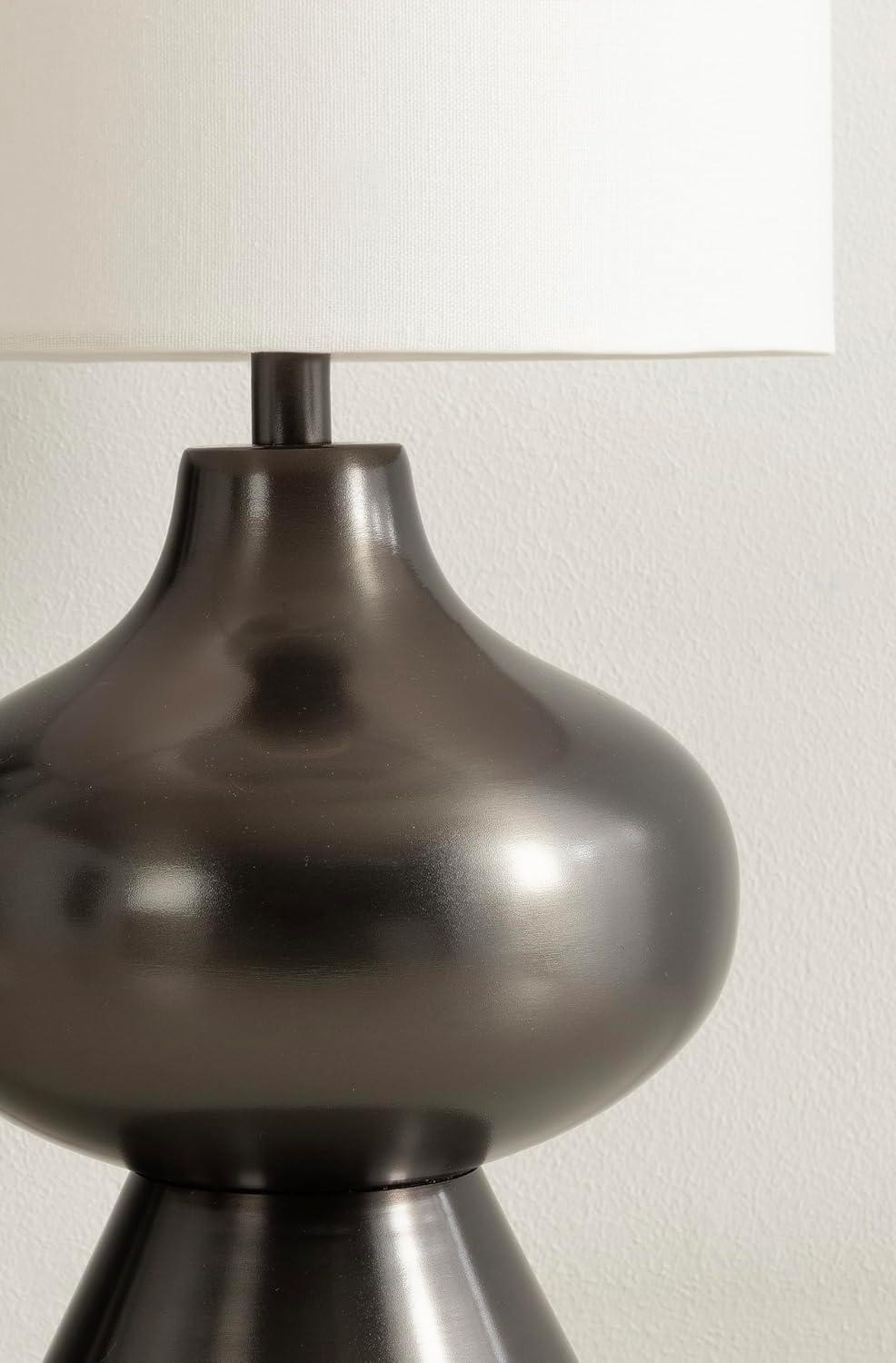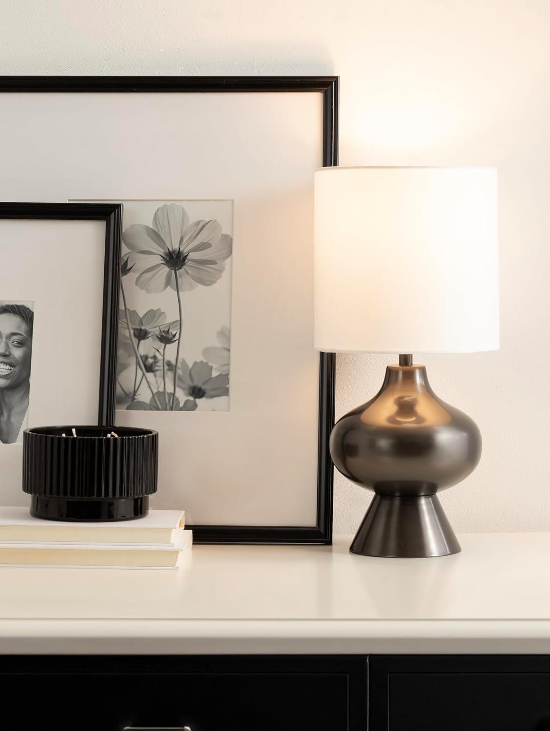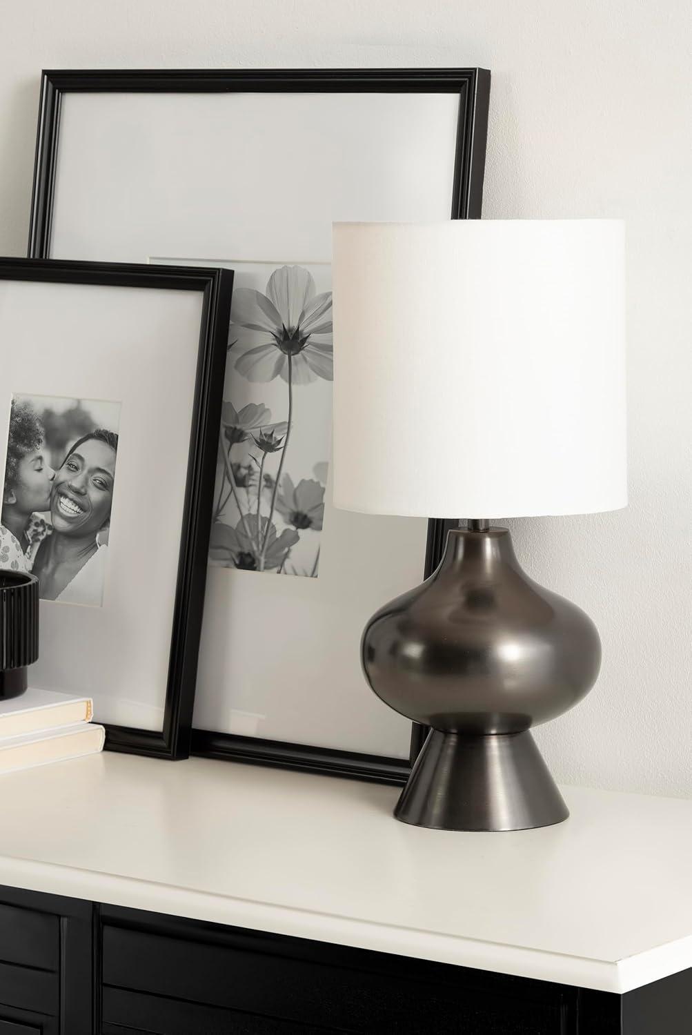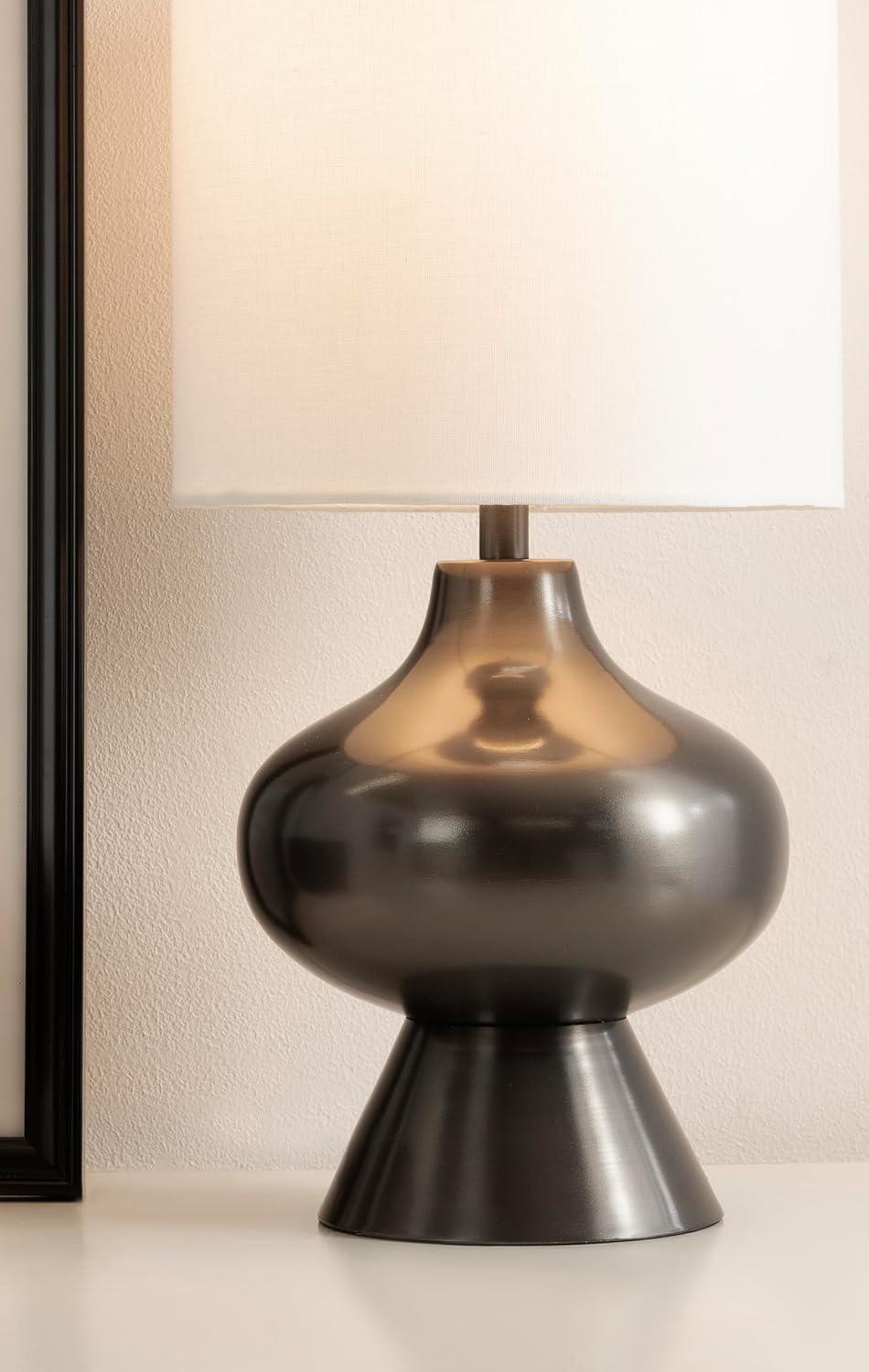 Kate and Laurel Bahira Modern Metal Bedside Table Lamp, 8 x 8 x 17, Antique Brass, Sculptural Decorative Tabletop Desk Lamp with Linen Shade for Living Room Decor(Pewter)