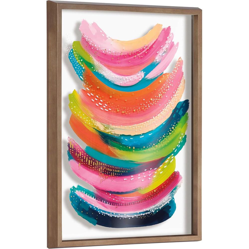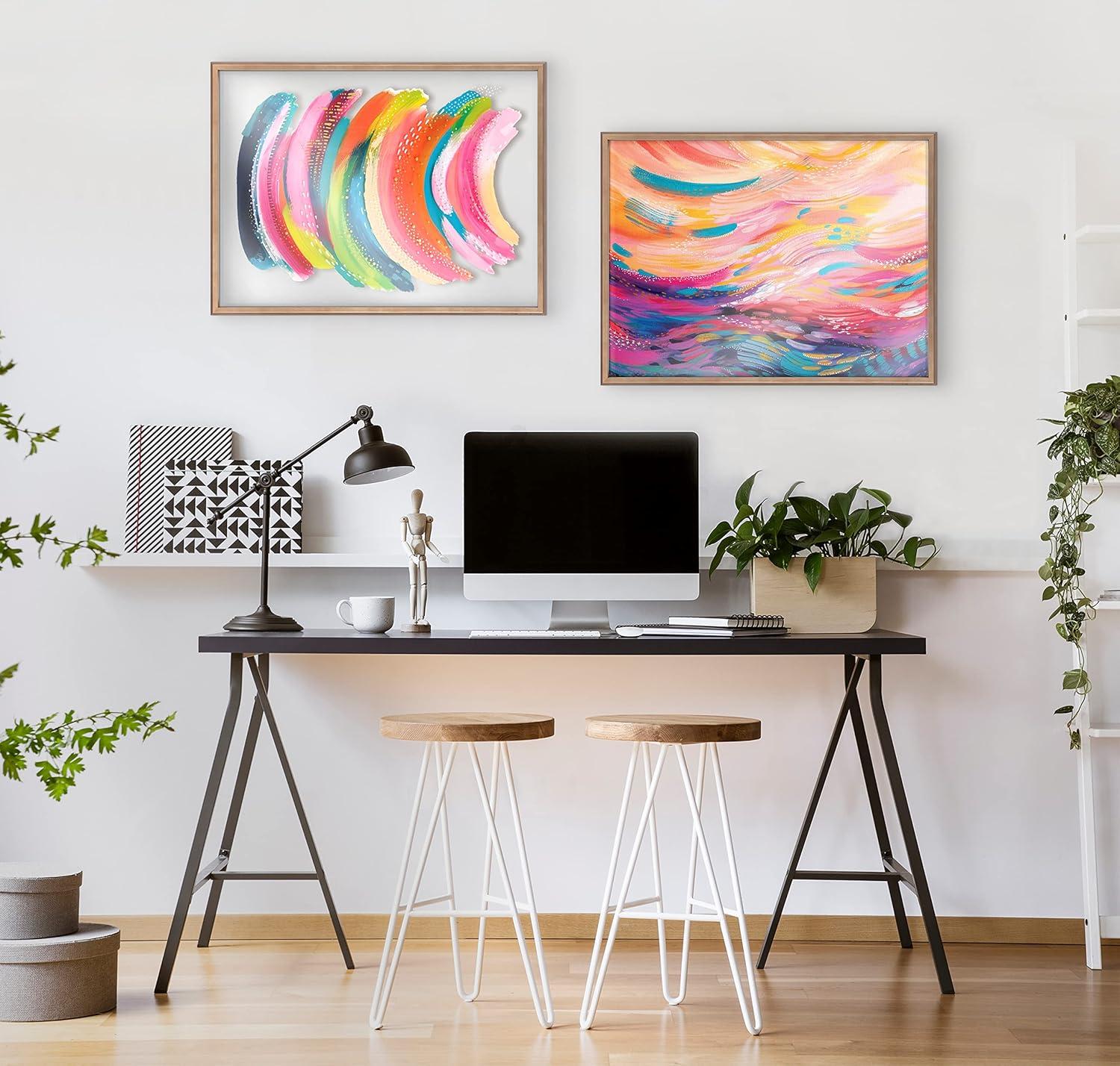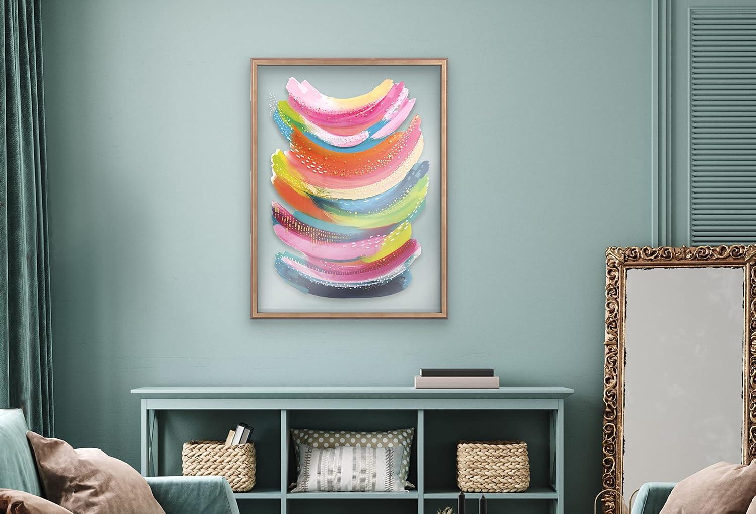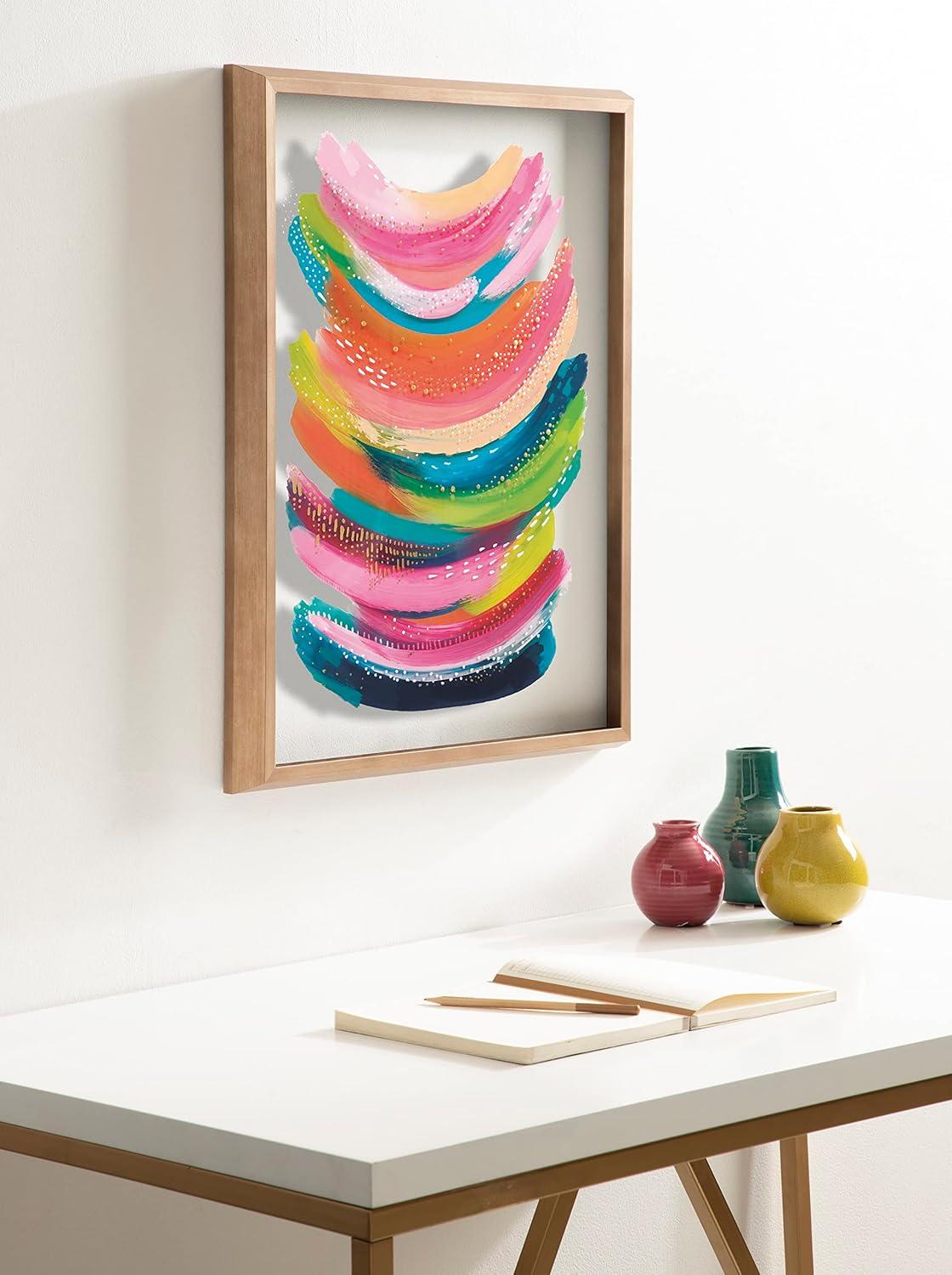 Light up your home with a bold and beautiful abstract print of colorful hues by Jessi Raulet of Ettavee. Framed in a sleek modern frame, this contemporary design is the perfect art piece to add to your home decor collection. Our glass and acrylic printed art uses a state-of-the-art printing process that creates vibrant, high-resolution prints. This allows you to step away from the traditional canvas print and provide your space with a standout element of artistic design. With its transparent material, our glass and acrylic prints give you a three-dimensional look that makes the art feel like it is part of the wall, not just hanging on it. Showcase this art in your living room, bedroom, home office, kitchen, bathroom or anywhere you want to bring a little beauty and charm to your walls. Specializing in home décor, we are continually bringing timeless works of art for the traditional decorator as well as trend forward pieces for that eclectic art lover. The glass and acrylic surfaces can also be used with dry-erase markers, so you can customize it or use it as a fun drawing surface for your kids. Our surfaces don't wear out as easily as traditional whiteboards, allowing you to reuse and wipe the surface repeatedly, then hang it back on your wall like nothing ever happened. The outer dimensions are 18 inches by 24 inches. Print Name: “Bright Abstract”