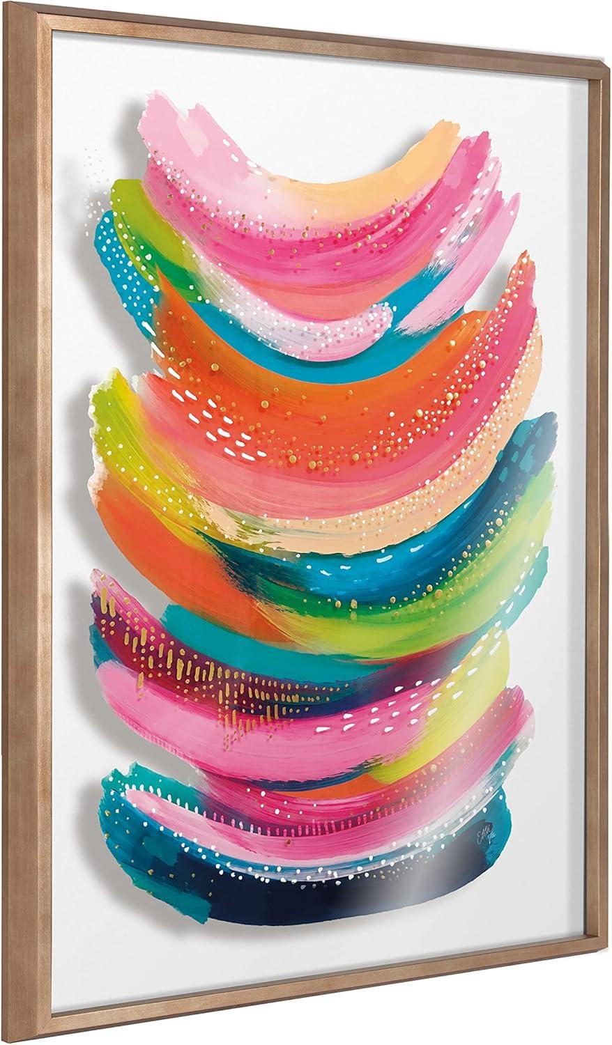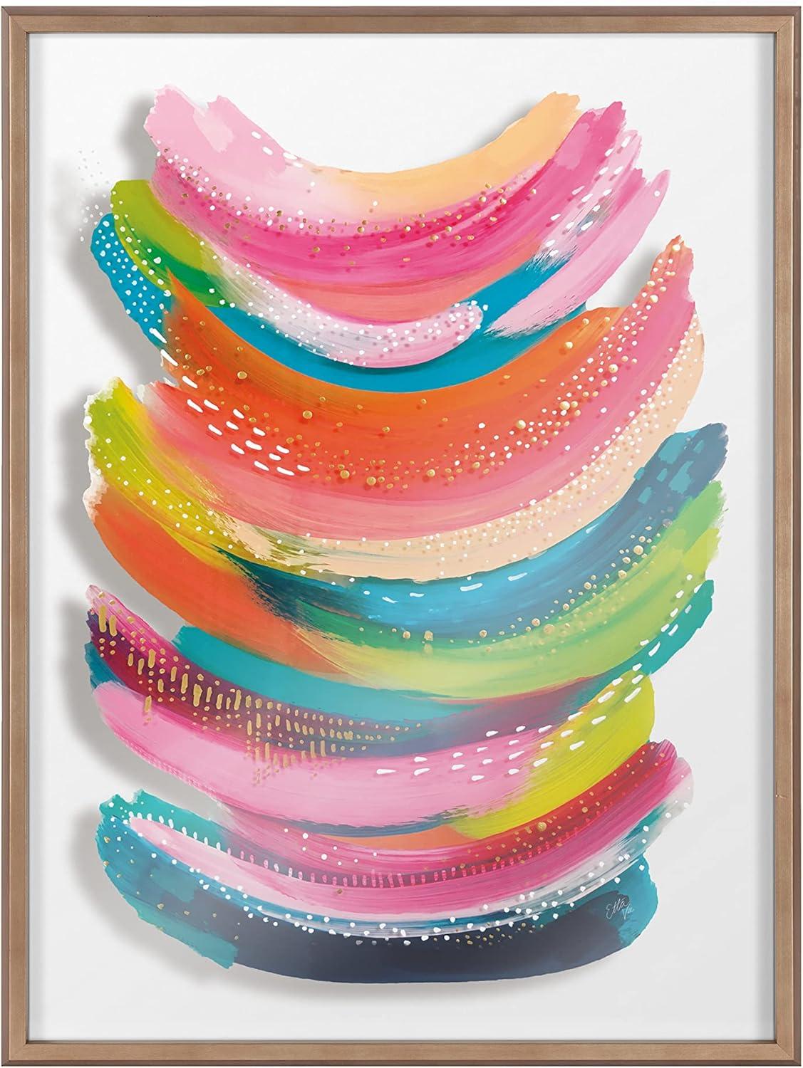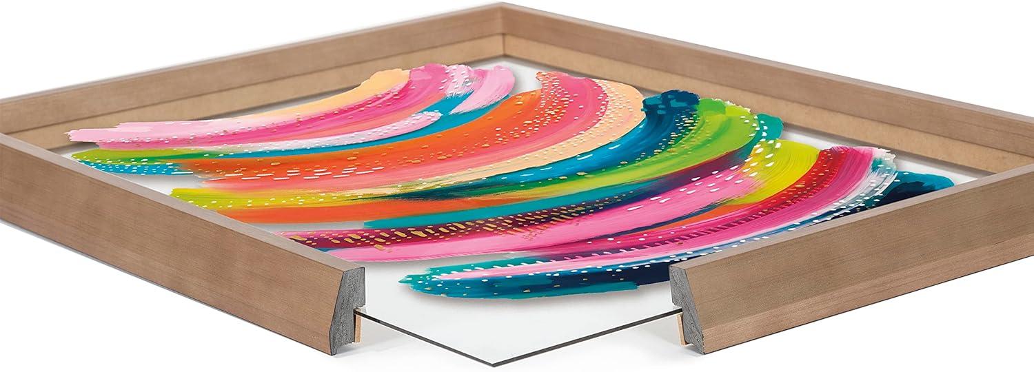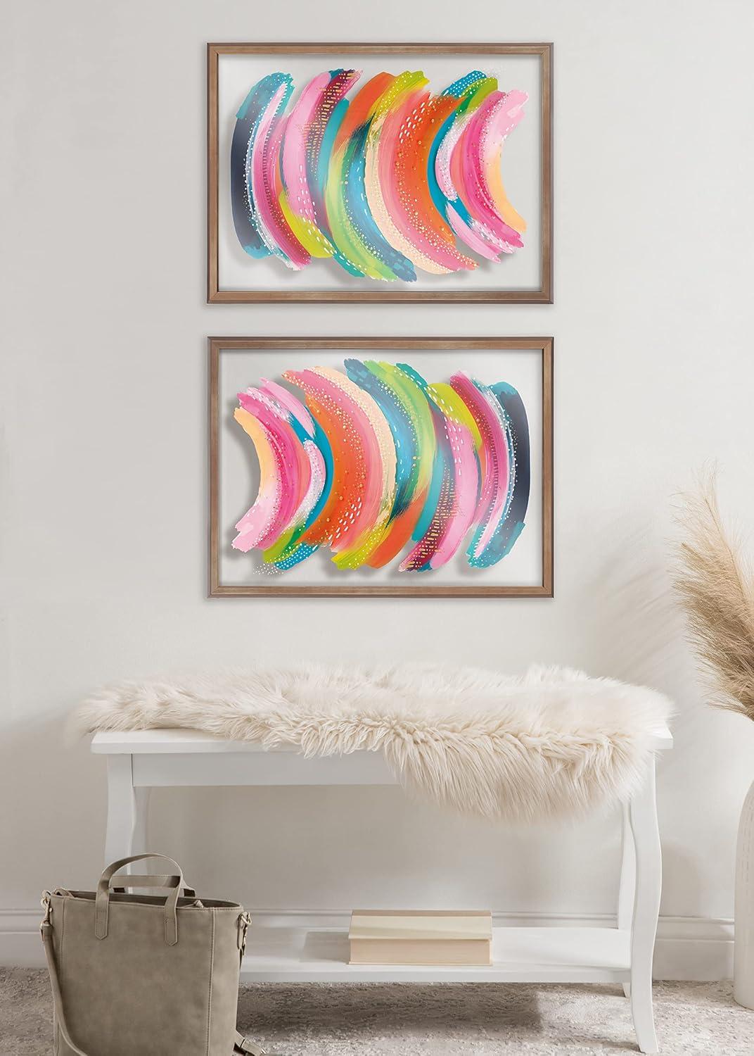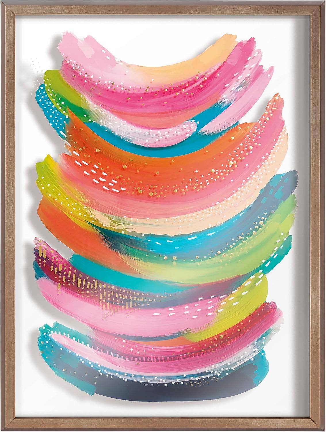 Light up your home with a bold and beautiful abstract print of colorful hues by Jessi Raulet of Ettavee. Framed in a sleek modern frame, this contemporary design is the perfect art piece to add to your home decor collection. Our glass and acrylic printed art uses a state-of-the-art printing process that creates vibrant, high-resolution prints. This allows you to step away from the traditional canvas print and provide your space with a standout element of artistic design. With its transparent material, our glass and acrylic prints give you a three-dimensional look that makes the art feel like it is part of the wall, not just hanging on it. Showcase this art in your living room, bedroom, home office, kitchen, bathroom or anywhere you want to bring a little beauty and charm to your walls. Specializing in home décor, we are continually bringing timeless works of art for the traditional decorator as well as trend forward pieces for that eclectic art lover. The glass and acrylic surfaces can also be used with dry-erase markers, so you can customize it or use it as a fun drawing surface for your kids. Our surfaces don't wear out as easily as traditional whiteboards, allowing you to reuse and wipe the surface repeatedly, then hang it back on your wall like nothing ever happened. The outer dimensions are 18 inches by 24 inches. Print Name: “Bright Abstract”