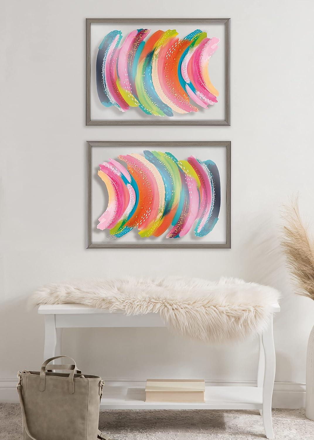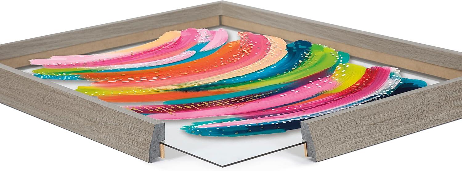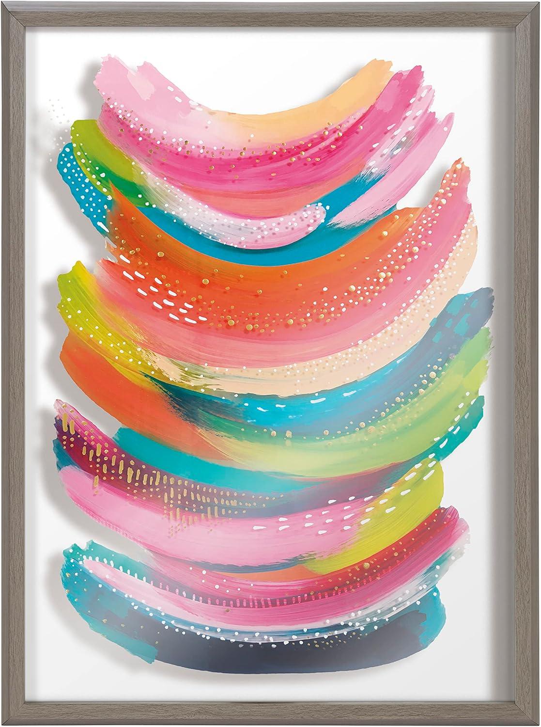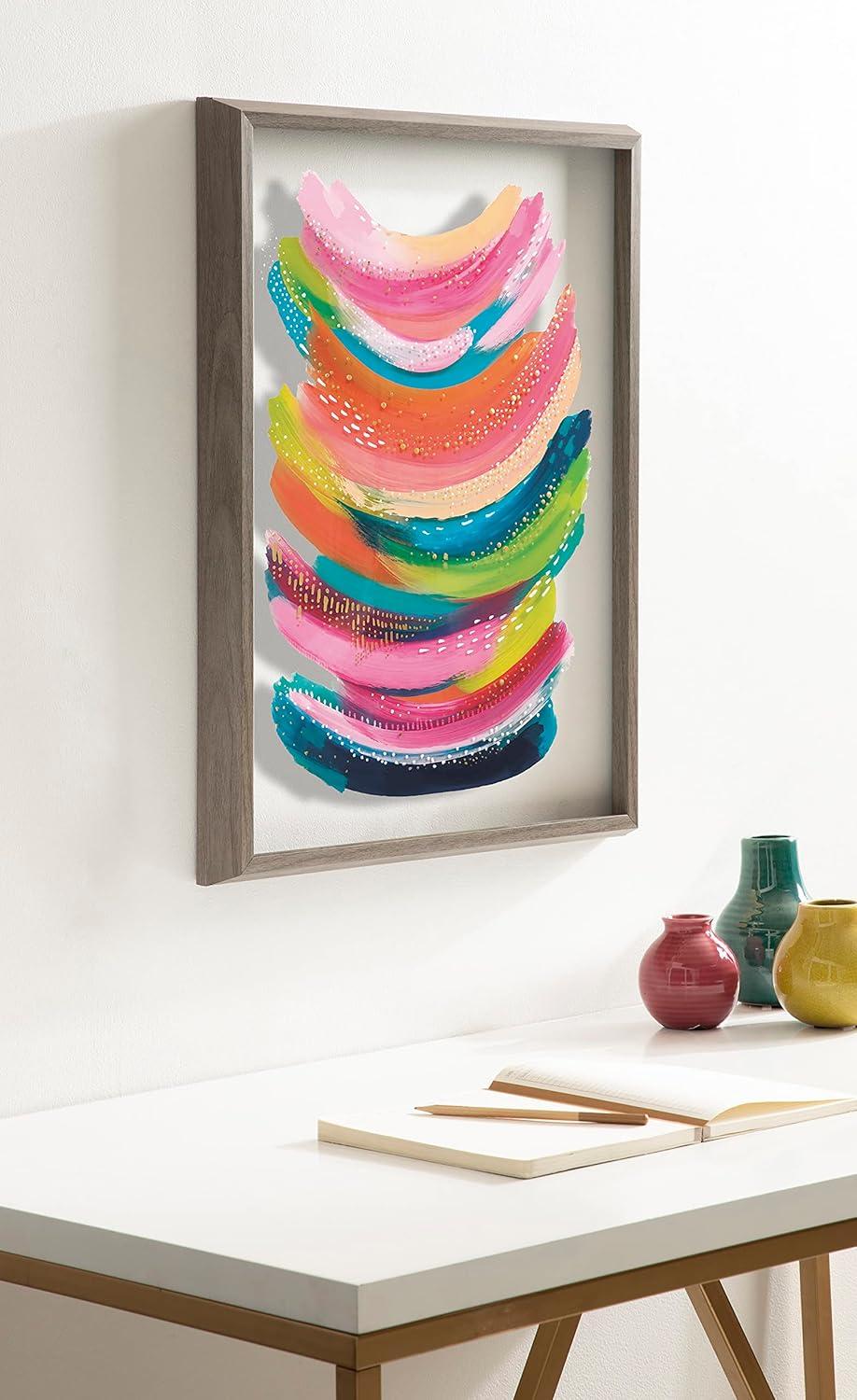 Modern Framed Glass Art: Colorful brushstrokes art printed on high-quality glass and framed with a durable beveled frame. Outside display dimensions are 24 inches by 18 inches by 1.6 inches