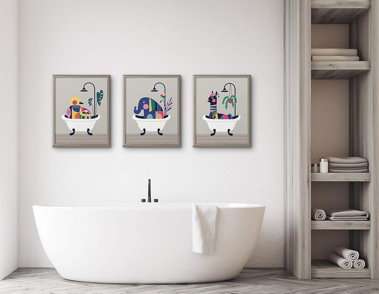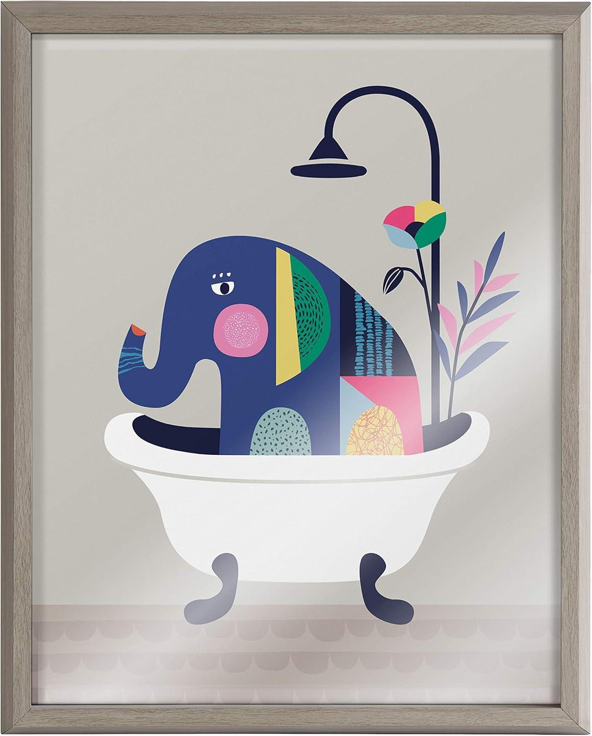 This elephant is ready to clean up his act in this whimsical bathtub print! Framed in a sleek modern frame, this contemporary design is the perfect art piece to add to your home decor collection. Printed and framed in the USA in Waunakee, Wisconsin, this printed glass art will be a pleasure to look at every day in your living room, bedroom, office, or any room in the home. This print also makes an excellent gift for a birthday, holiday, or house-warming. It also has two hangers already attached for easy wall display. The outer dimensions are 20 inches by 16 inches. Print Name: “Mid Century Modern Elephant in the Tub”