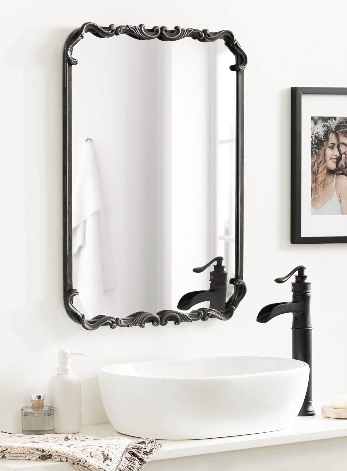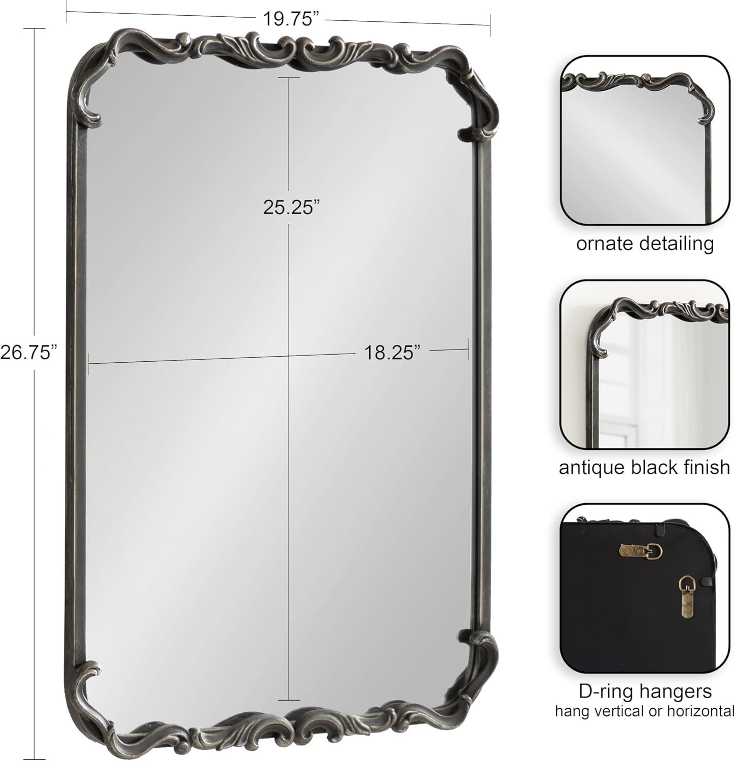Kate and Laurel Brazelton Traditional Rounded Rectangle Ornate Mirror; 20 x 27; Black; Ornamental Round Rectangular Classic Framed Wall Mirror for Bathroom Vanity Mirror or Fireplace Mantel Mirror(Black)