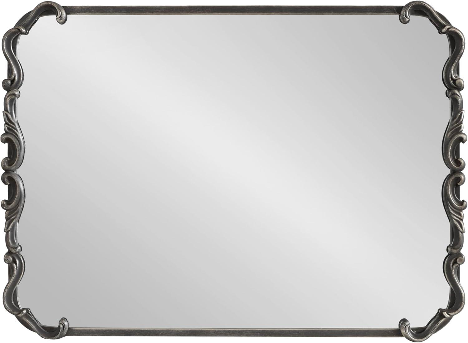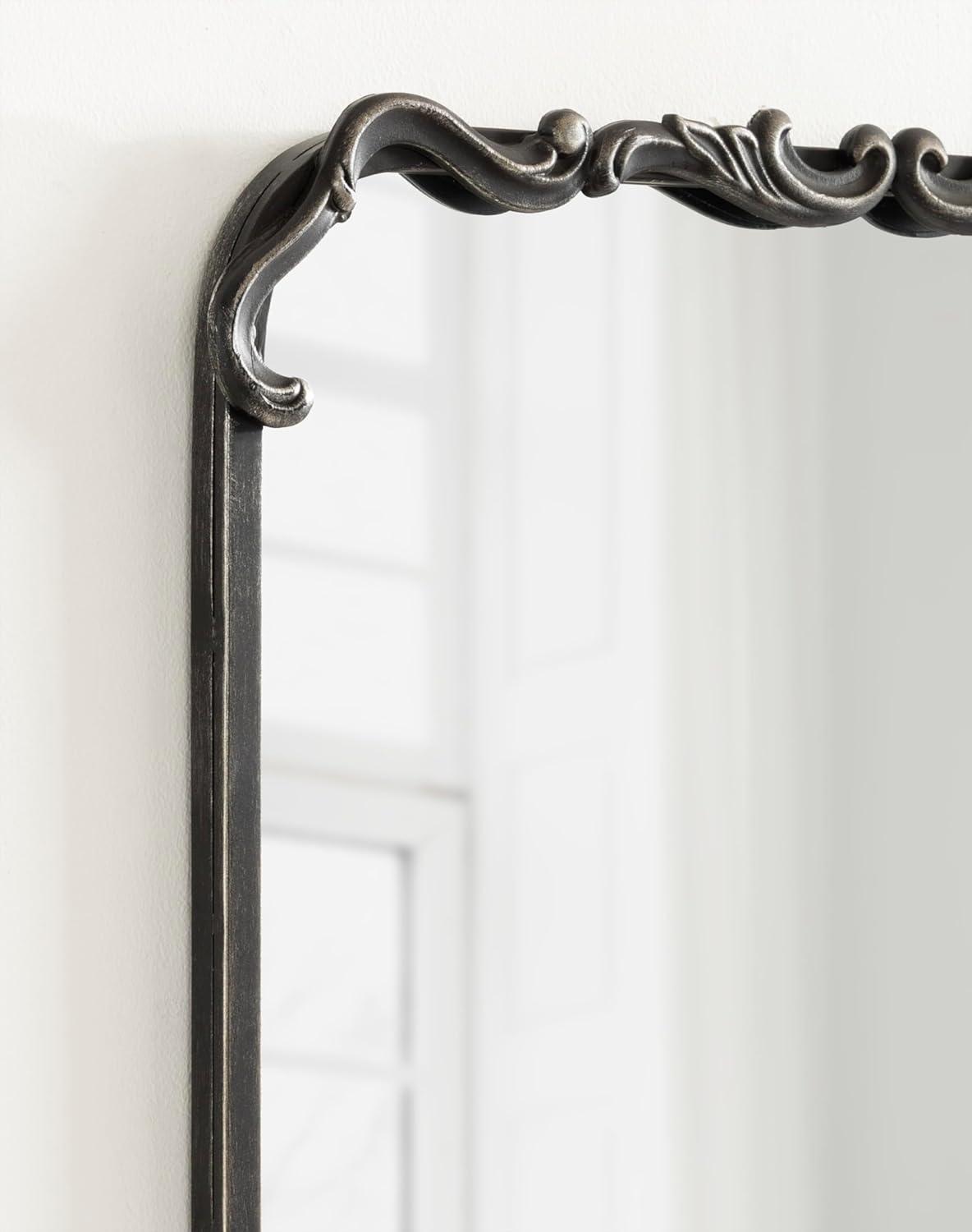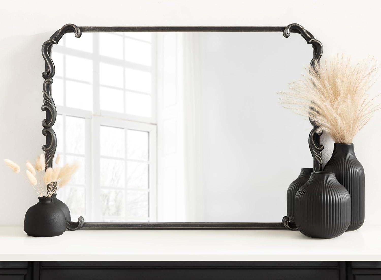 Provide your space with unbelievable, ornate detailing from the Brazelton wall mirror. This gorgeous, ornamental scroll is featured across both the top and bottom of the frame. Due to the Brazelton's unique look, you can be sure that it will turn heads and start instant conversations with guests. Its stunning antique black finish gives it a hue that appeases both traditional and modern glam aesthetics. The Brazelton features beautiful variation of its finish giving it a unique look all along the frame. The overall dimensions of the Brazelton are 19.75 inches wide by 1.25 inches deep by 26.75 inches high. Another attribute of the Brazelton is its versatility to fit a variety of spaces and settings. You can use it to bring light and depth to your bedroom, a bathroom vanity, an entryway, a living room, or even a dining area. It can also be hung both vertically and horizontally to capitalize on your available wall space. Its reflective nature provides an organic addition of light and depth to your space.