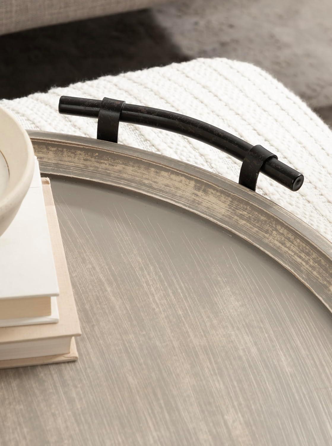 Kate and Laurel Bruillet Farmhouse Wood Round Ottoman Tray; 24 x 22; Rustic Brown; Circle Coffee Table Tray for Living Room Decor or Large Serving Tray(Gray)