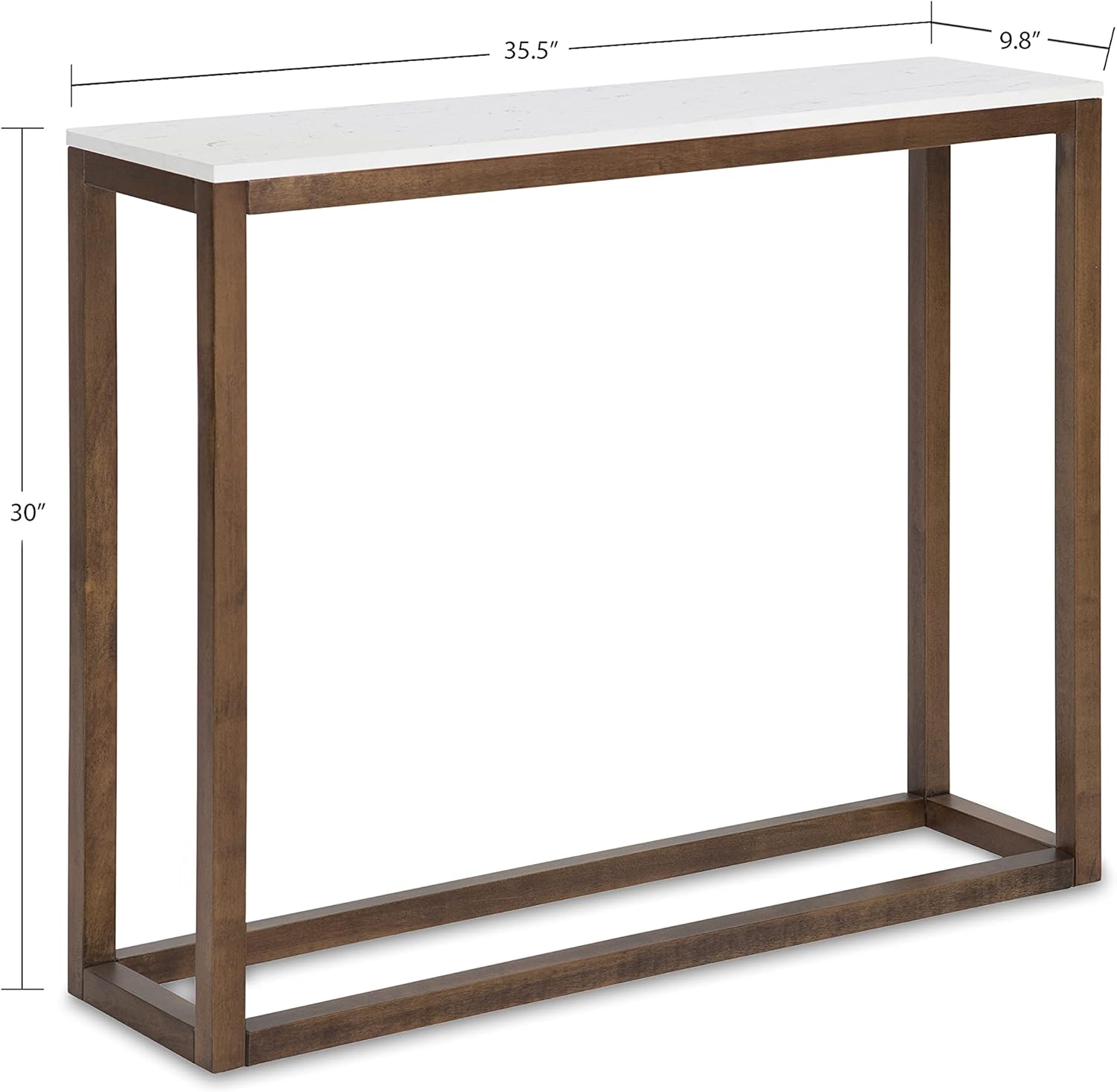 The beautiful man-made marble top of the Carmela console table makes it the perfect size to use in many places within your home. In the hallway, it will be a fantastic entryway table or place it in the dining room as a bar or serving area. This console could also be set in a bedroom as a lovely feature piece under a mirror. An elegant modern styled console The surface space will fit a collection of photo frames and/or several of your favorite home decor items Constructed of a durable man-made marble and a wood base Ships flat with easy to follow assembly instructions Hardware included