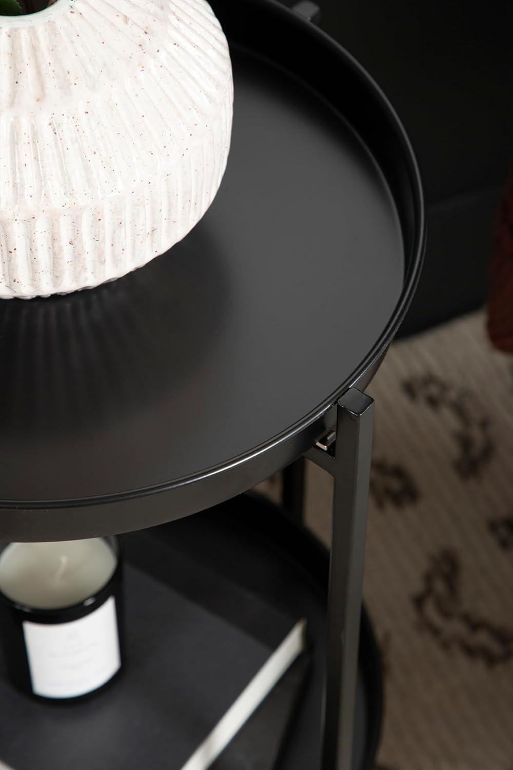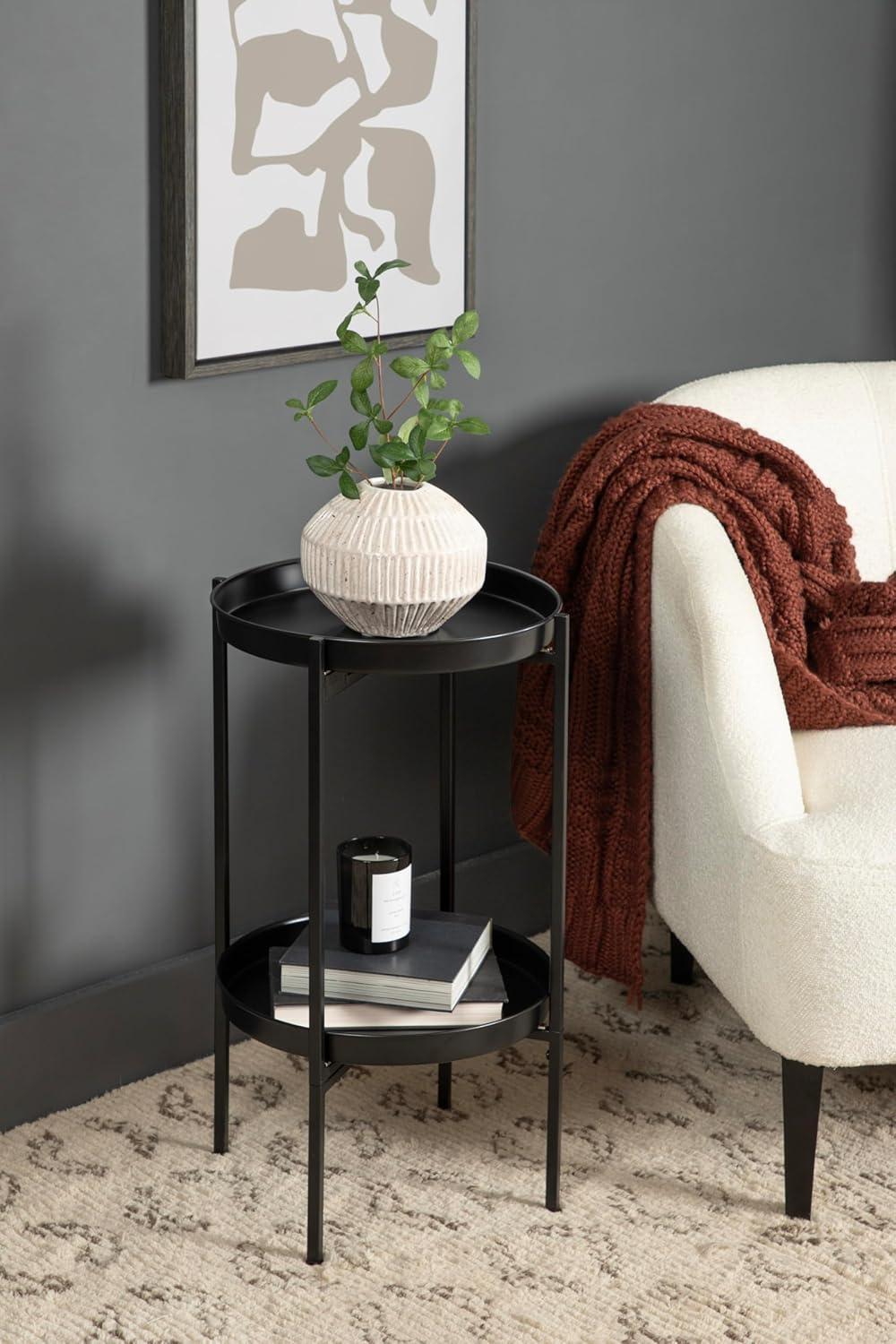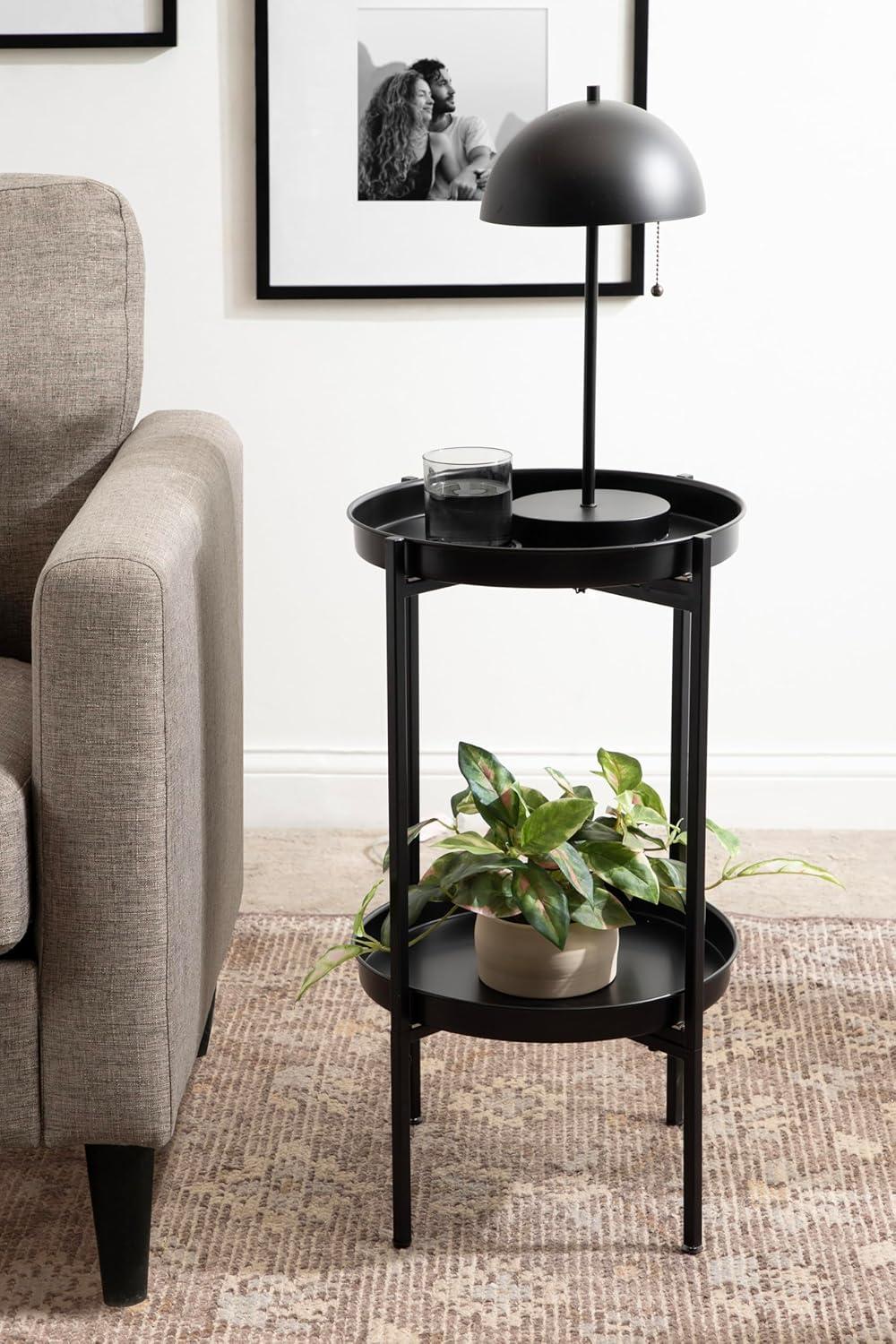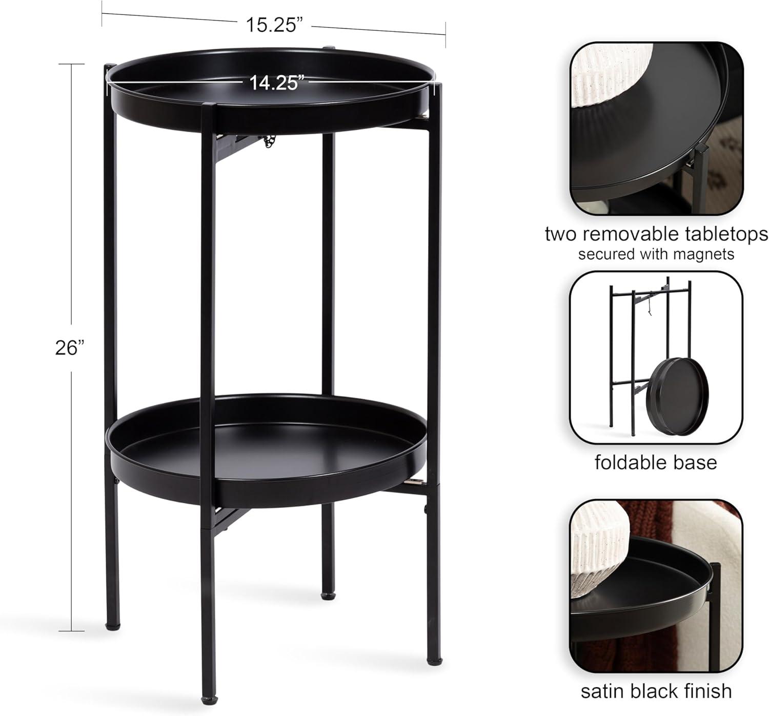 Kate and Laurel Celia Round Metal Foldable Tiered Side Table, 16 x 26, Black, Modern Accent Table with Removable Magnetic Tray Tabletops and Space-Saving Folding Base(Black)