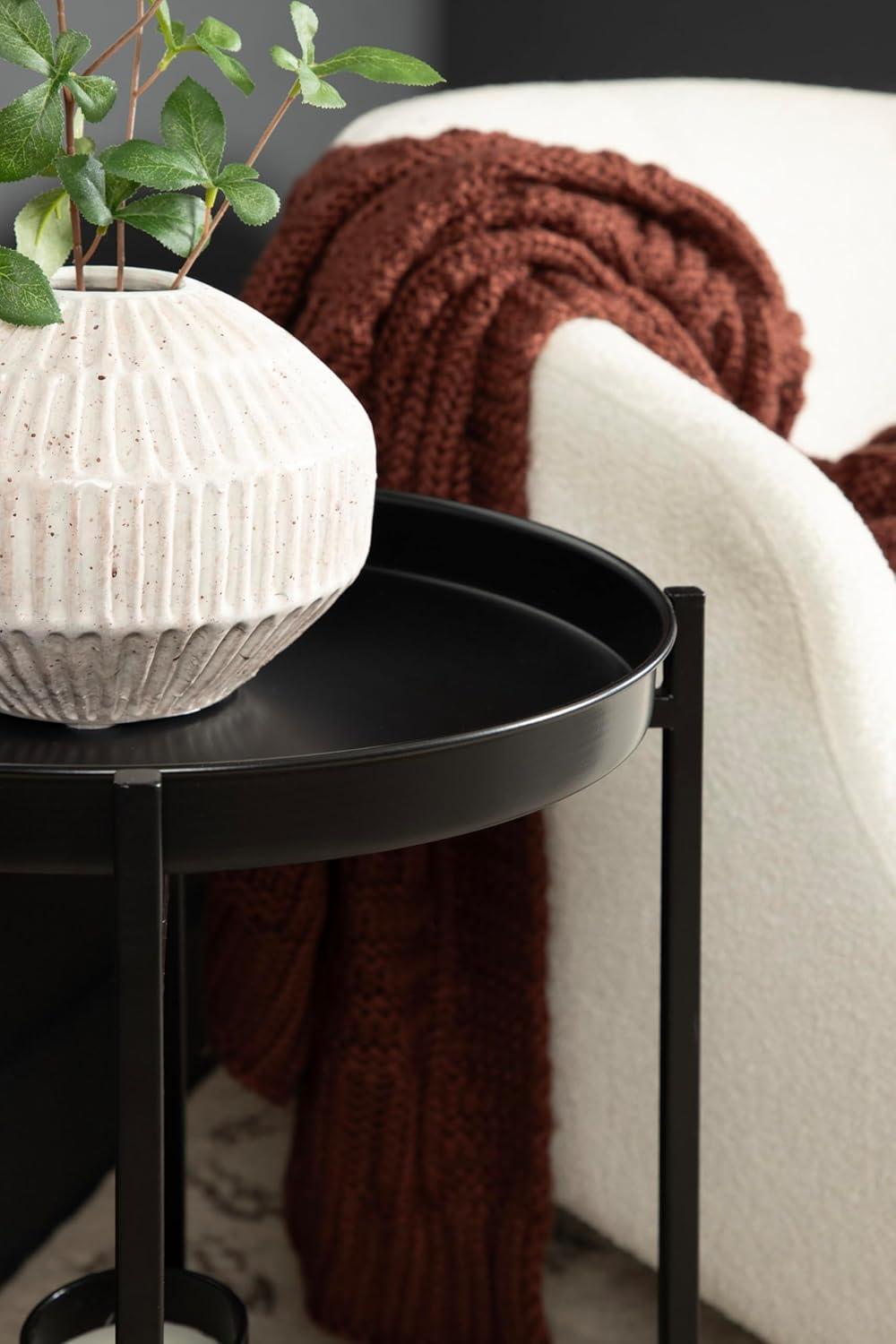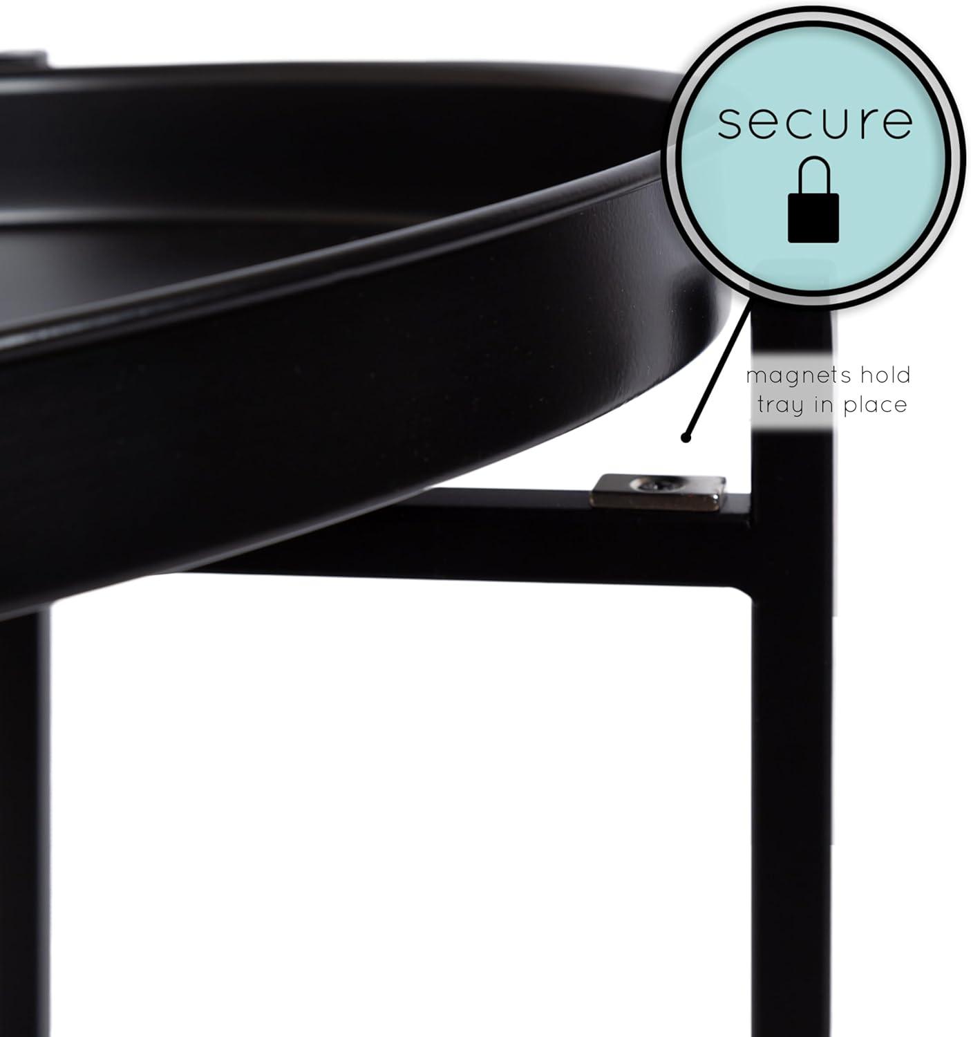 Looking for a versatile and stylish accent table that can complement any room in your home? Look no further than the Kate and Laurel Celia round accent table! One of the standout features of this tray table is its removable magnetic tray tabletops, which make it easy to clean and provide a convenient spot for holding drinks, snacks, or small items like your phone or keys. And when you're not using the table, simply fold down the base to save space and make storage a breeze. Measuring 15.25 inches in diameter by 26 inches high and featuring a beautiful satin black finish, this modern small side table is perfect for adding a minimal touch to your living room, bedroom, or any other space where you need a bit of extra surface area. Constructed from durable metal, this tiered tray table is built to last and can easily hold up to 50 pounds of weight. And with its elegant and modern design, it's sure to be a conversation starter and a focal point in any room. So why wait? Add this versatile and stylish accent table to your home décor today!