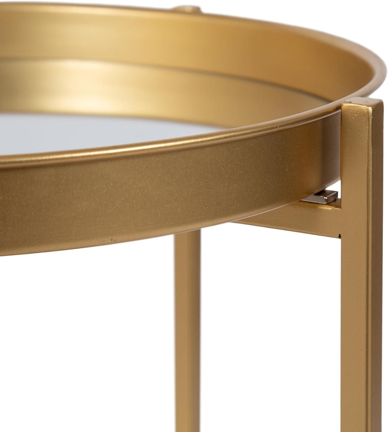 Kate and Laurel Celia Round Metal Foldable Tiered Side Table, 16 x 26, Black, Modern Accent Table with Removable Magnetic Tray Tabletops and Space-Saving Folding Base(Gold)