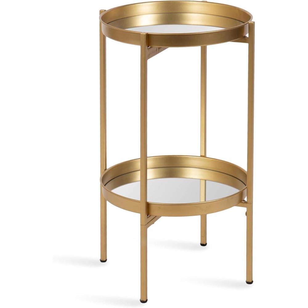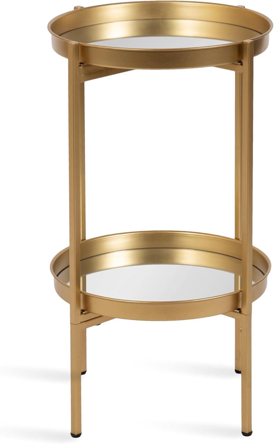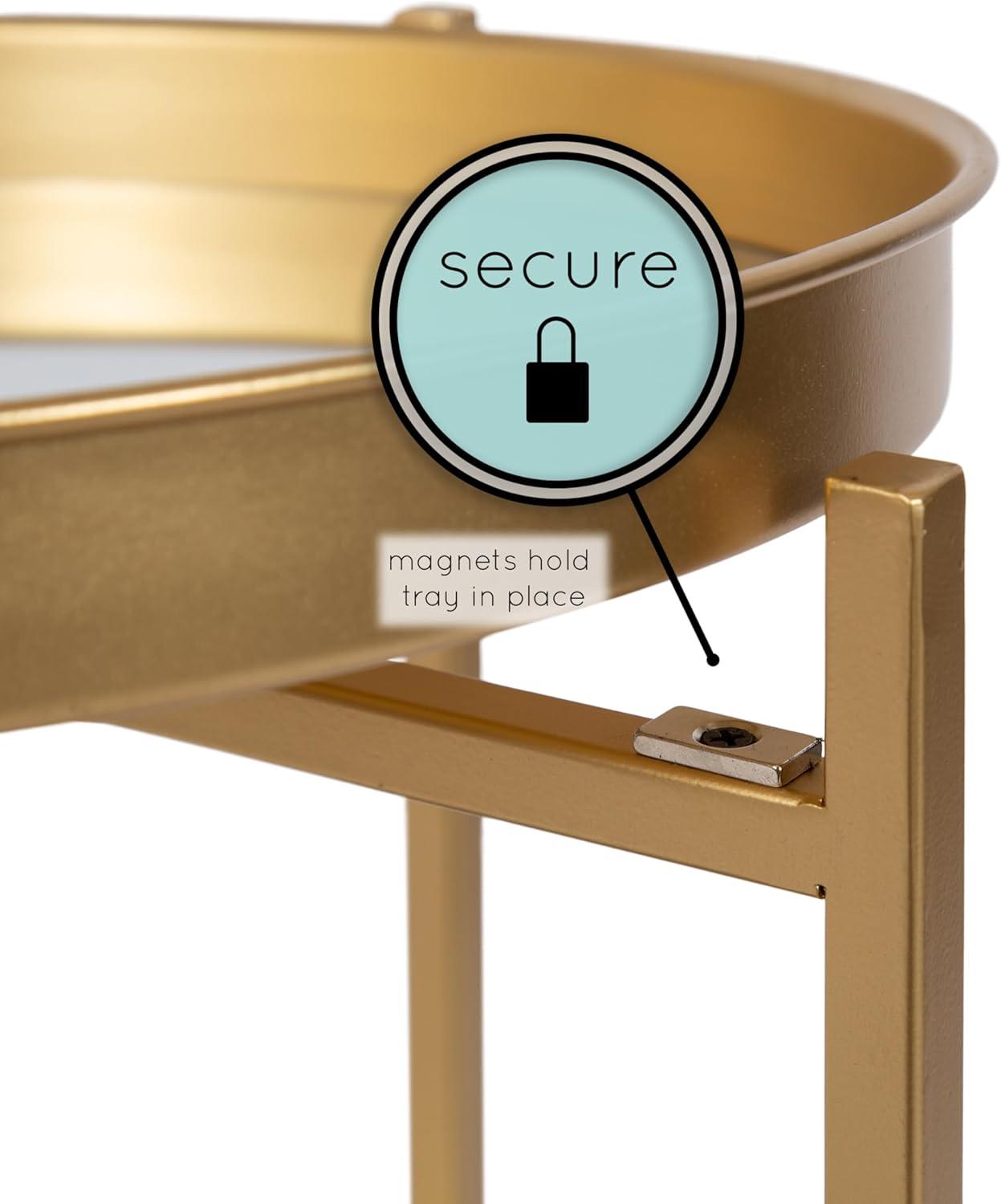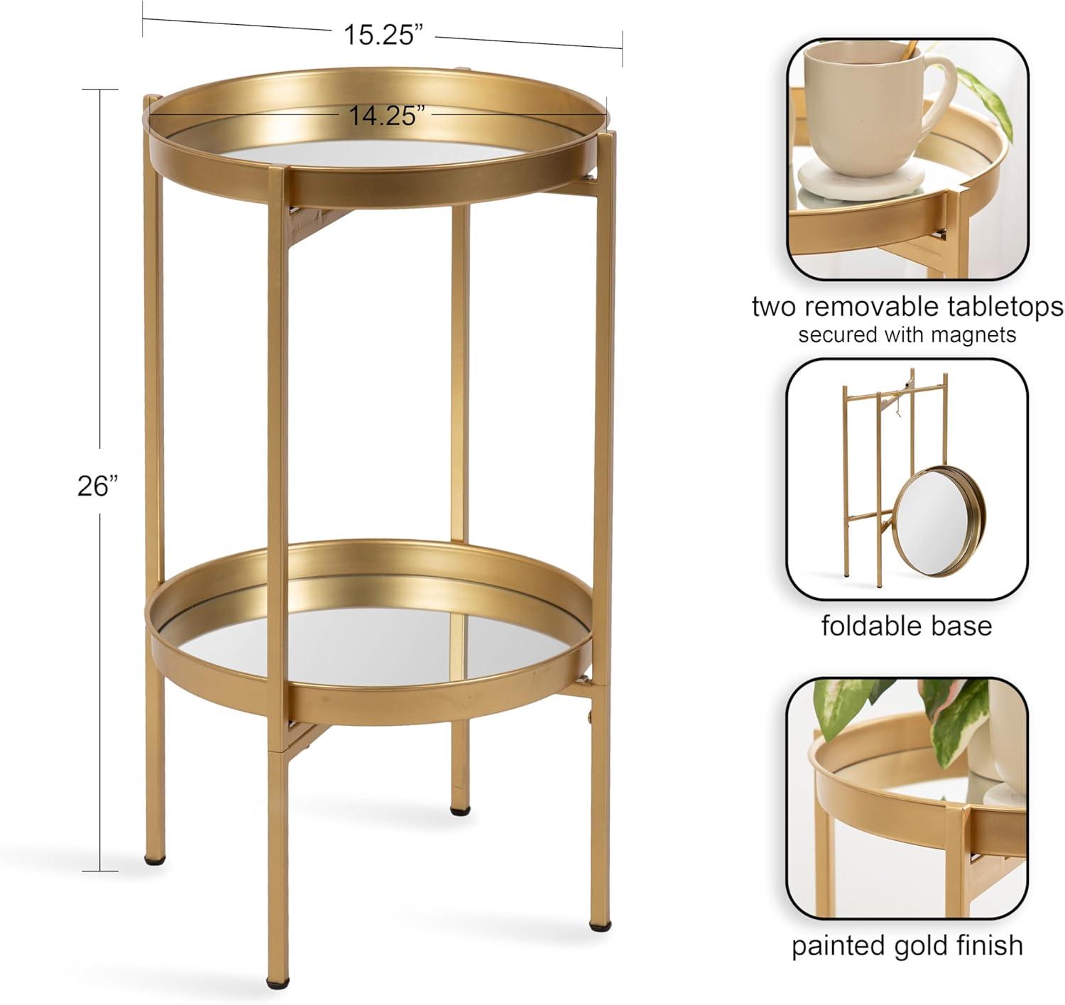 imageKate and Laurel Celia Round Metal Foldable Tiered Side Table 16 x 26 Black Modern Accent Table with Removable Magnetic Tray Tabletops and SpaceSaving Folding BaseGold