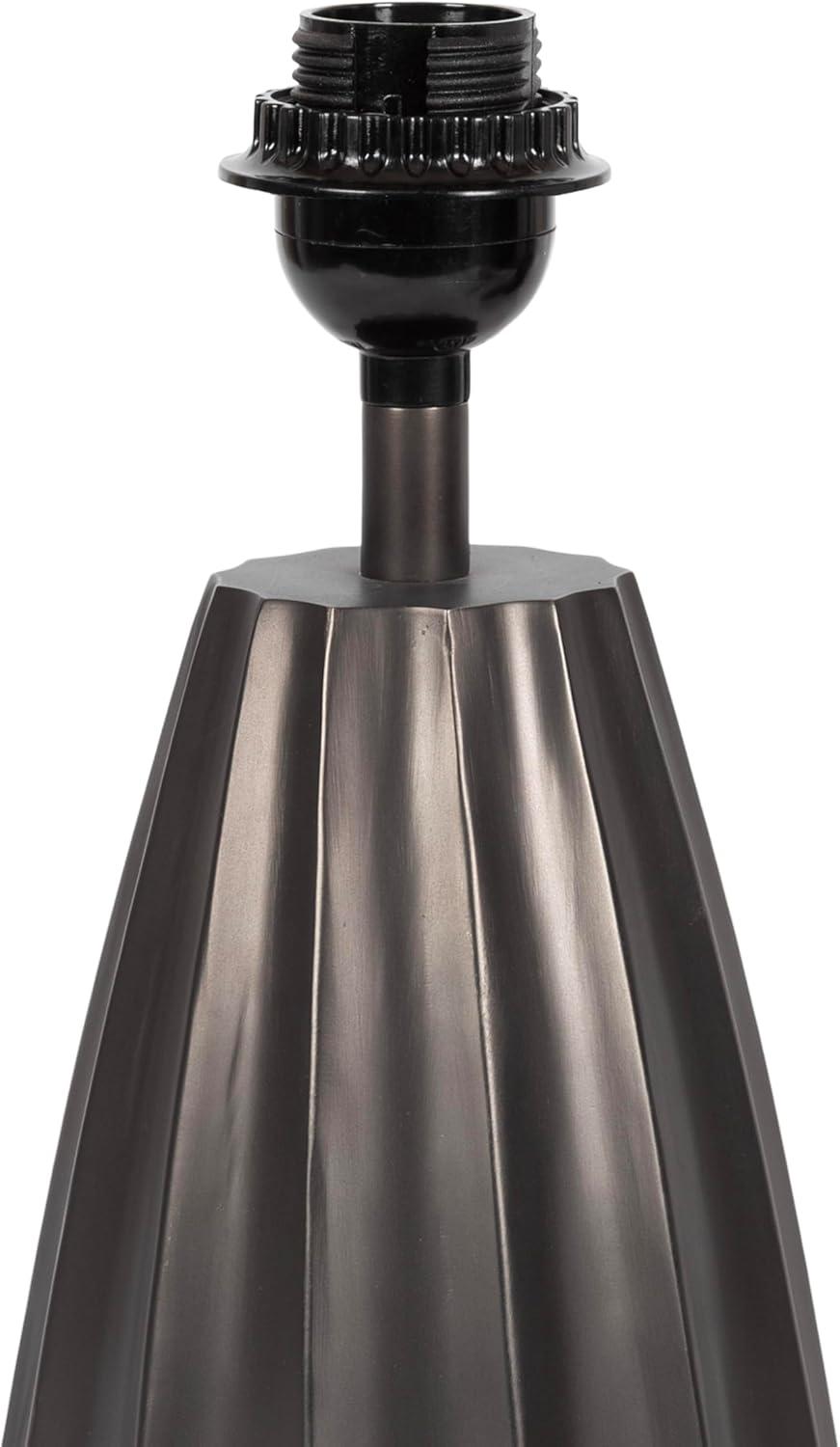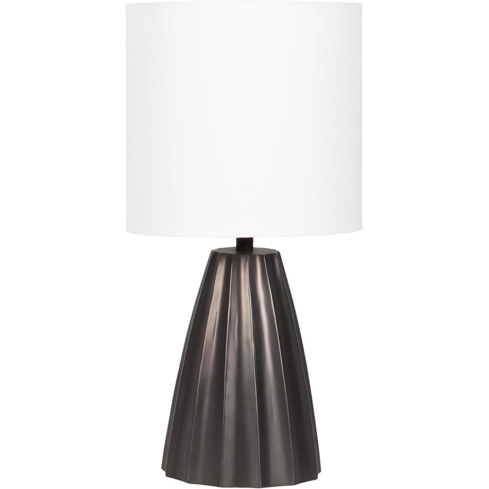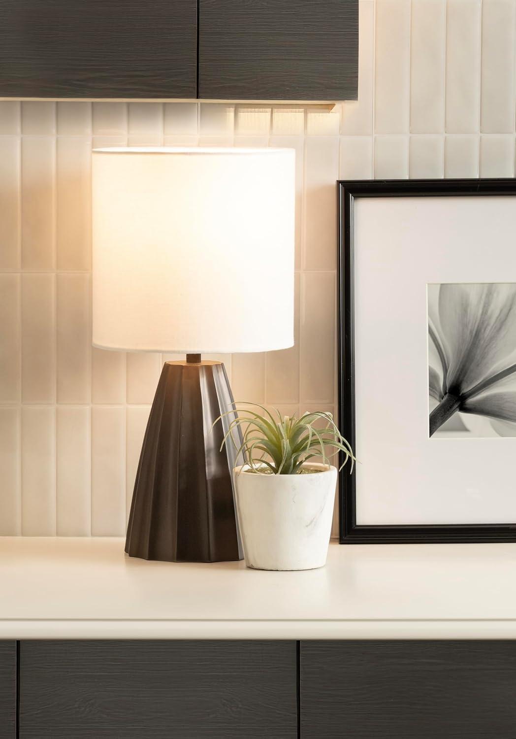 Elevate your home lighting with the Ciji bedside table lamp from Kate and Laurel—a sculptural piece that blends functional design with contemporary decor. Standing 16.5 inches tall, this compact yet eye-catching lamp features a sturdy 8-inch diameter with a sleek gunmetal finish, offering a modern aesthetic that complements a variety of decor styles, from minimalist to transitional. The scalloped, geometric metal base adds an artistic flair, making it as much a decorative object as a source of light. Topped with a soft white linen drum shade, the Ciji lamp diffuses light softly, creating a warm and inviting atmosphere perfect for bedrooms, living rooms, or home offices. Whether placed on a nightstand, console table, or desk, this lamp provides both style and substance. Designed for easy use with a standard E26 bulb (not included) that is up to 60 watts for an incandescent bulb or a 9W LED bulb, it's the perfect balance of practicality and elevated design. A UL-Certified product, this tabletop lamp can be used without worry. Add a modern edge to your space with this bold yet refined lighting piece.