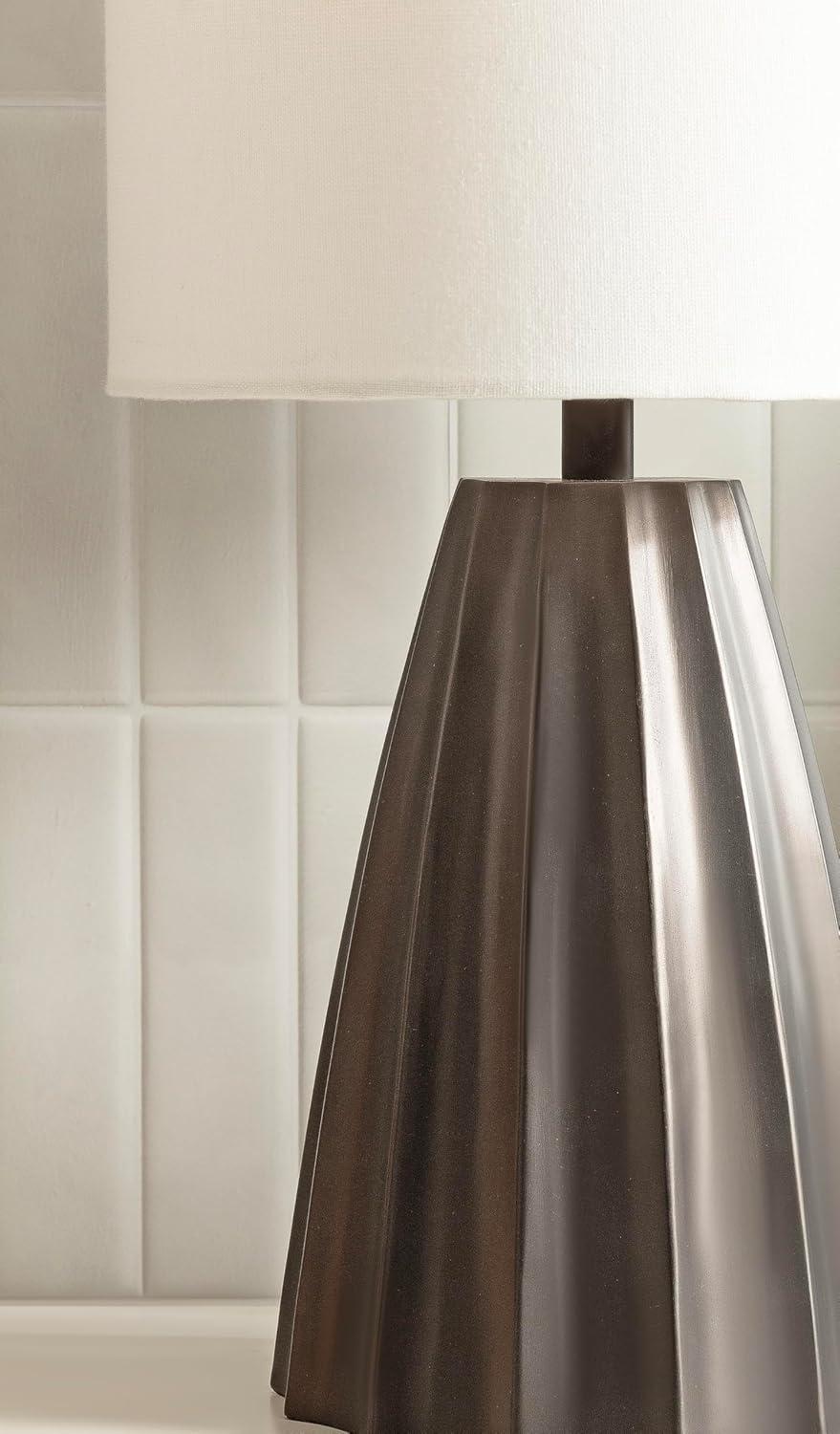 Kate and Laurel Ciji Modern Metal Bedside Table Lamp, 8 x 8 x 17, Gunmetal, Scalloped Decorative Tabletop Desk Lamp with Linen Shade for Living Room Decor(Walnut Brown)