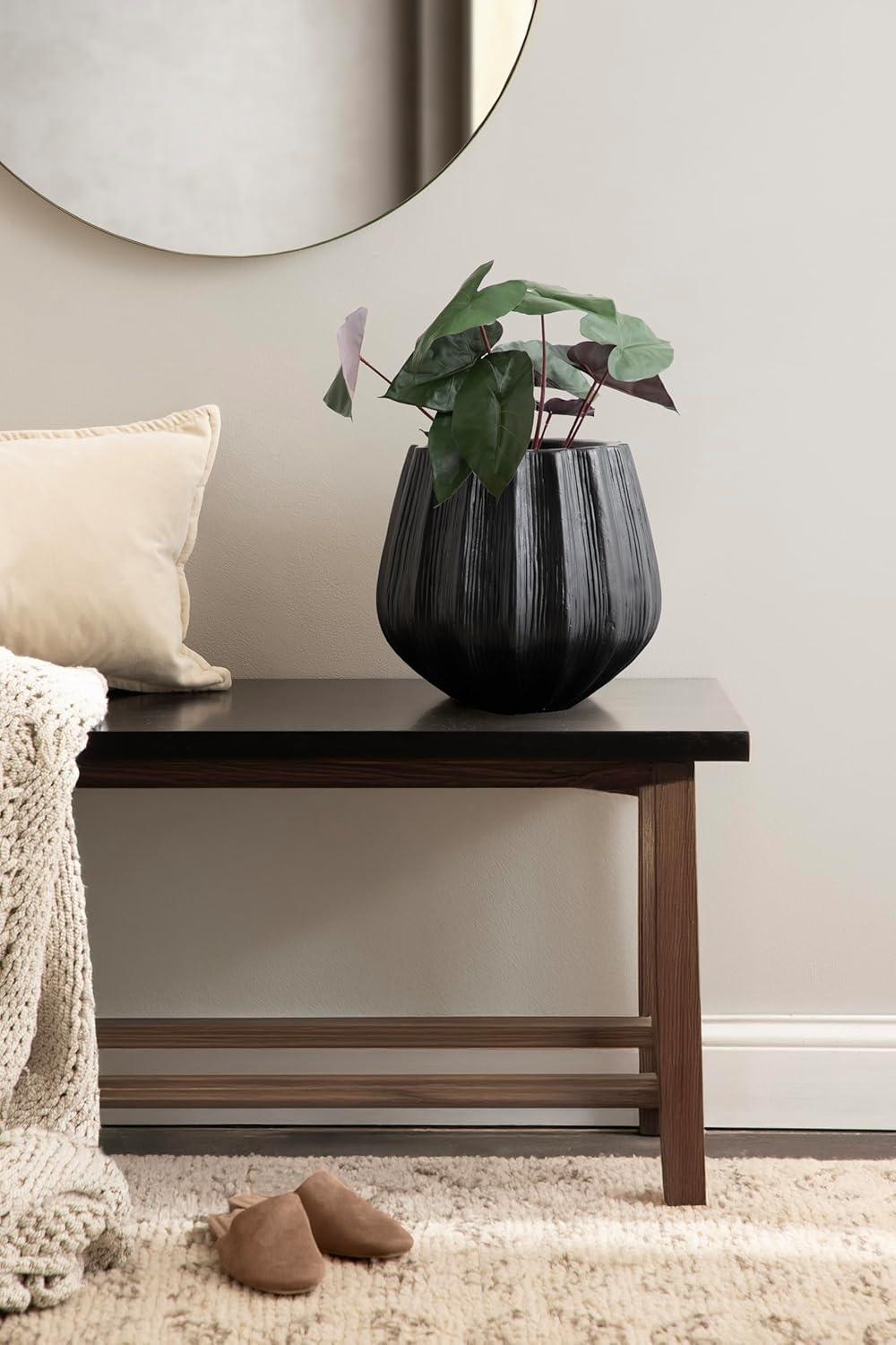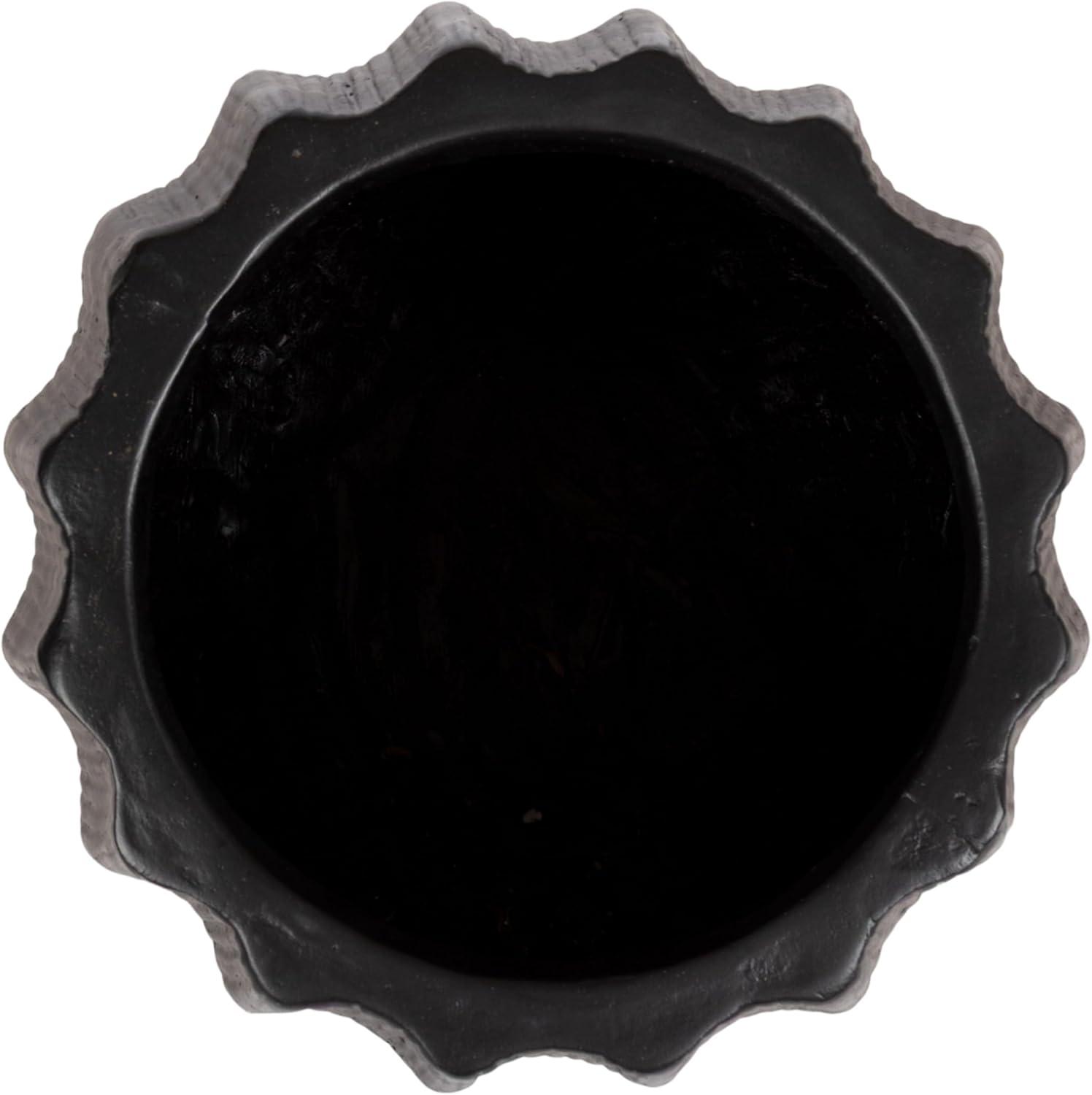 Kate and Laurel Claudel Modern Round Scalloped Planter Pot, 12 x 12 x 12, Black, Transitional Wavy Planter for Indoor Plants for Living Room or Sunroom Decor