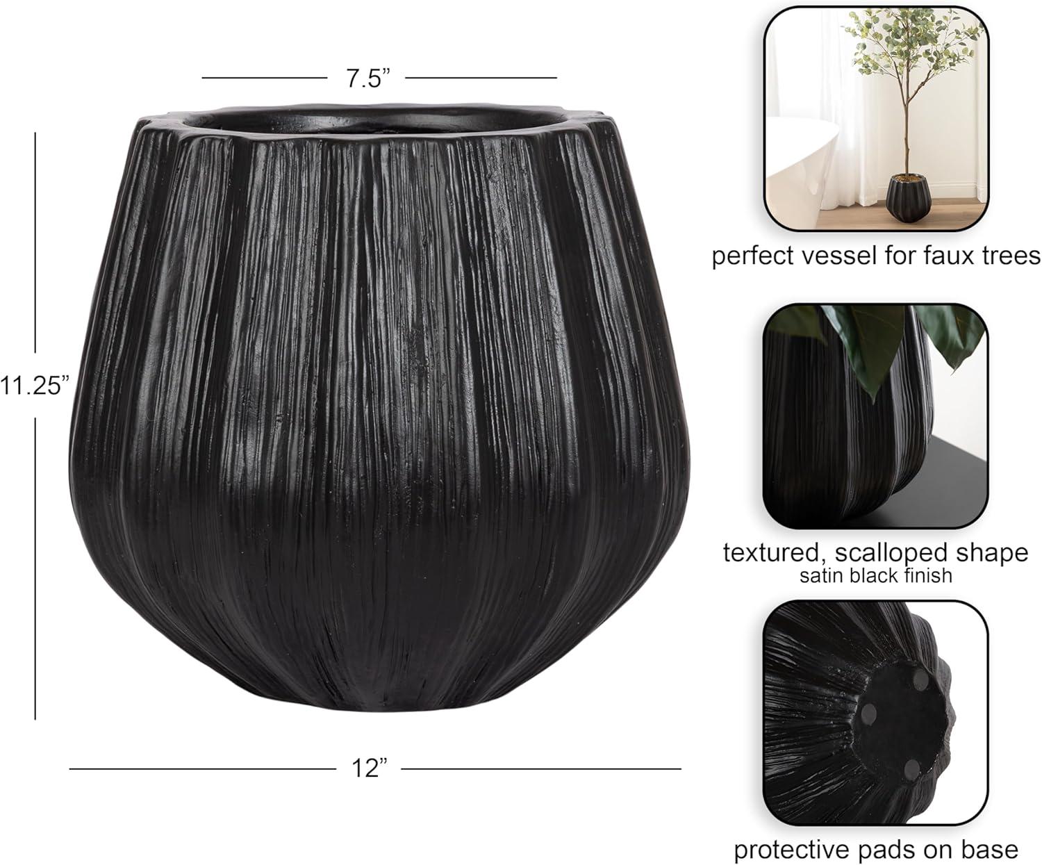 Remake your home into a space of modern simplicity and unique design with the Claudel scalloped planter pot. This geometric, freestanding planter showcases a unique style with its wavy, rippled design paired with its lightweight yet durable magnesium oxide construction. The planter pot features a sophisticated black hue that fits just about any space. This particular planter is 12 inches in diameter with a height of 11.25 inches. The versatile size makes it the perfect option to showcase a faux tree, a monstera plant, or even as decorative storage throughout your living room, bedroom, bathroom, entryway, or sunroom. The planter is perfect for adding faux plants to your office, too, in case you need a little greenery by your desk. This refined planter pot can be used on its own to house one plant, or utilize two or more of the planters throughout your home for a cohesive look and feel. Start adding greenery to your spaces in an instant as this planter ships fully assembled.