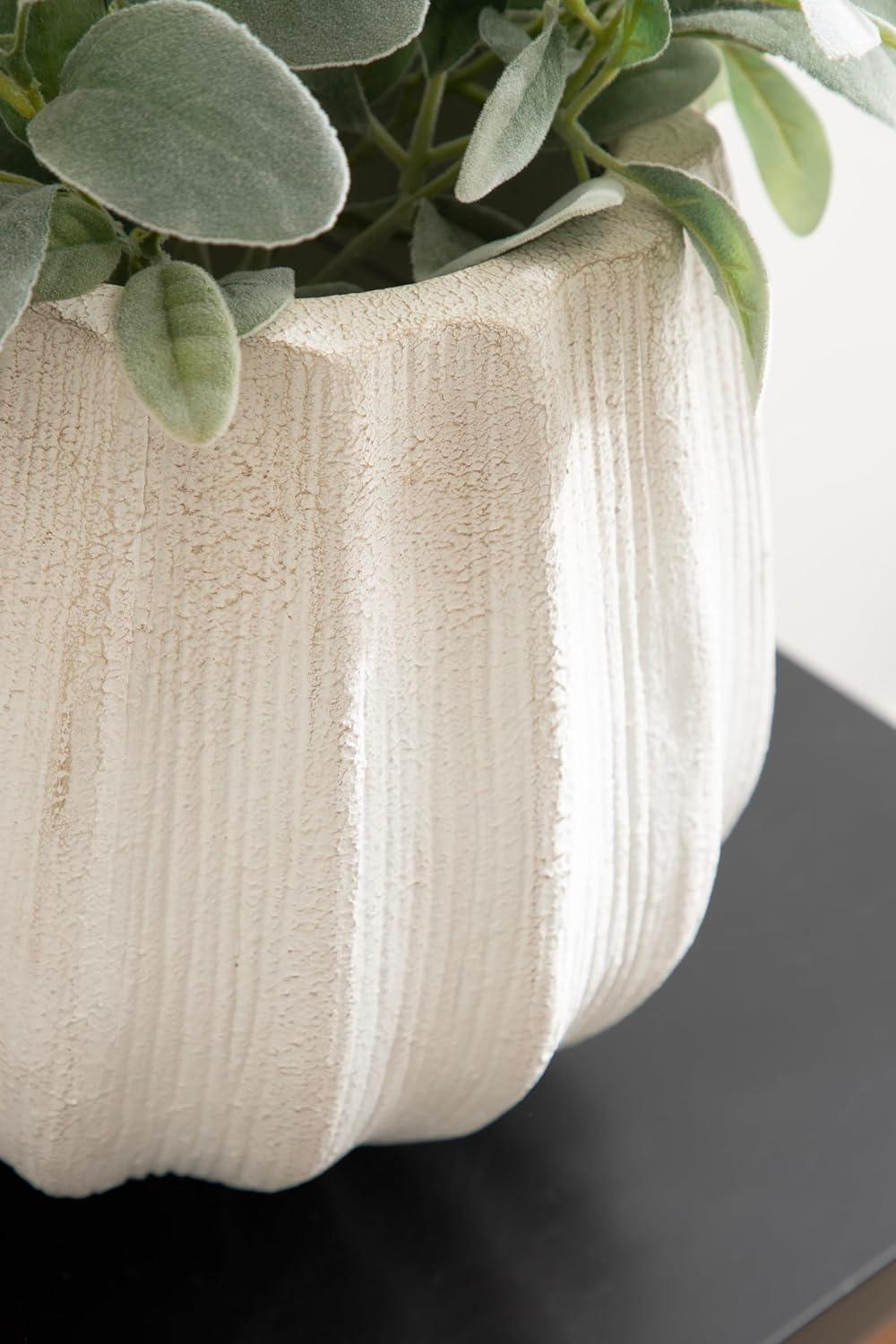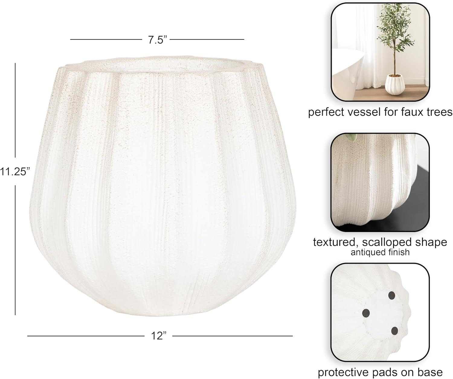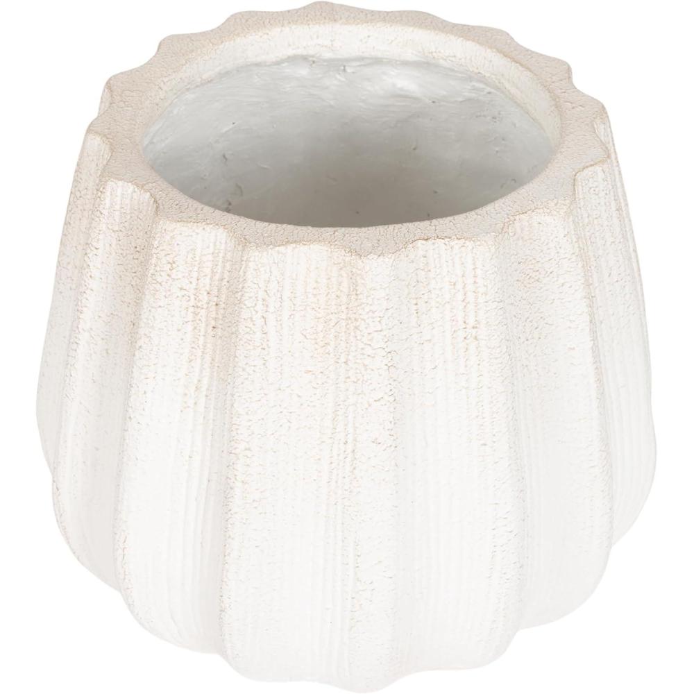 Remake your home into a space of modern simplicity and unique design with the Claudel scalloped planter pot. This geometric, freestanding planter showcases a unique style with its wavy, rippled design paired with its lightweight yet durable magnesium oxide construction. The planter pot features a versatile soft white hue that fits just about any space. This particular planter is 12 inches in diameter with a height of 11.25 inches. The versatile size makes it the perfect option to showcase a faux tree, a monstera plant, or even as decorative storage throughout your living room, bedroom, bathroom, entryway, or sunroom. The planter is perfect for adding faux plants to your office, too, in case you need a little greenery by your desk. This refined planter pot can be used on its own to house one plant, or utilize two or more of the planters throughout your home for a cohesive look and feel. Start adding greenery to your spaces in an instant as this planter ships fully assembled.
