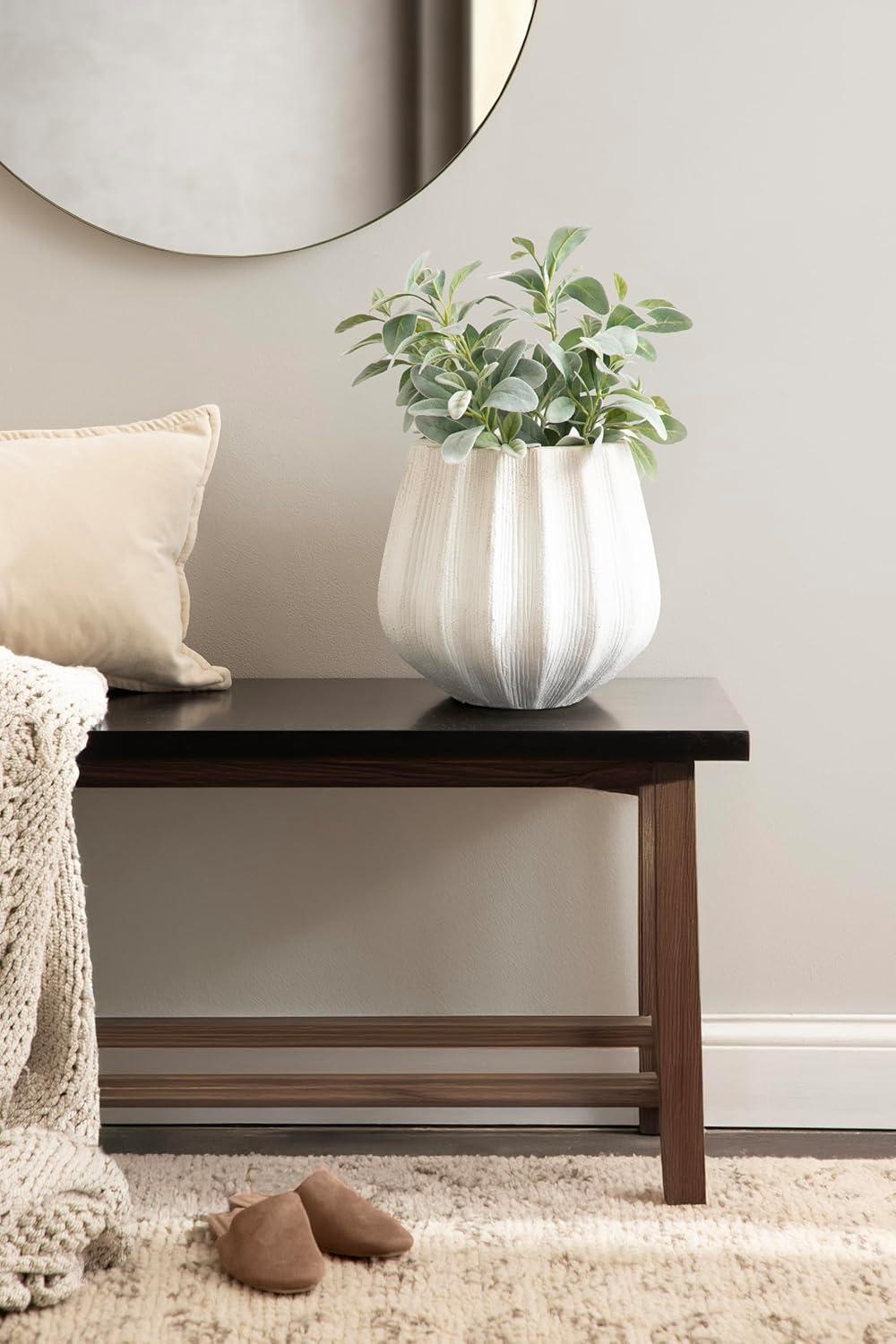 Kate and Laurel Claudel Modern Round Scalloped Planter Pot, 12 x 12 x 12, White, Transitional Wavy Planter for Indoor Plants for Living Room or Sunroom Decor