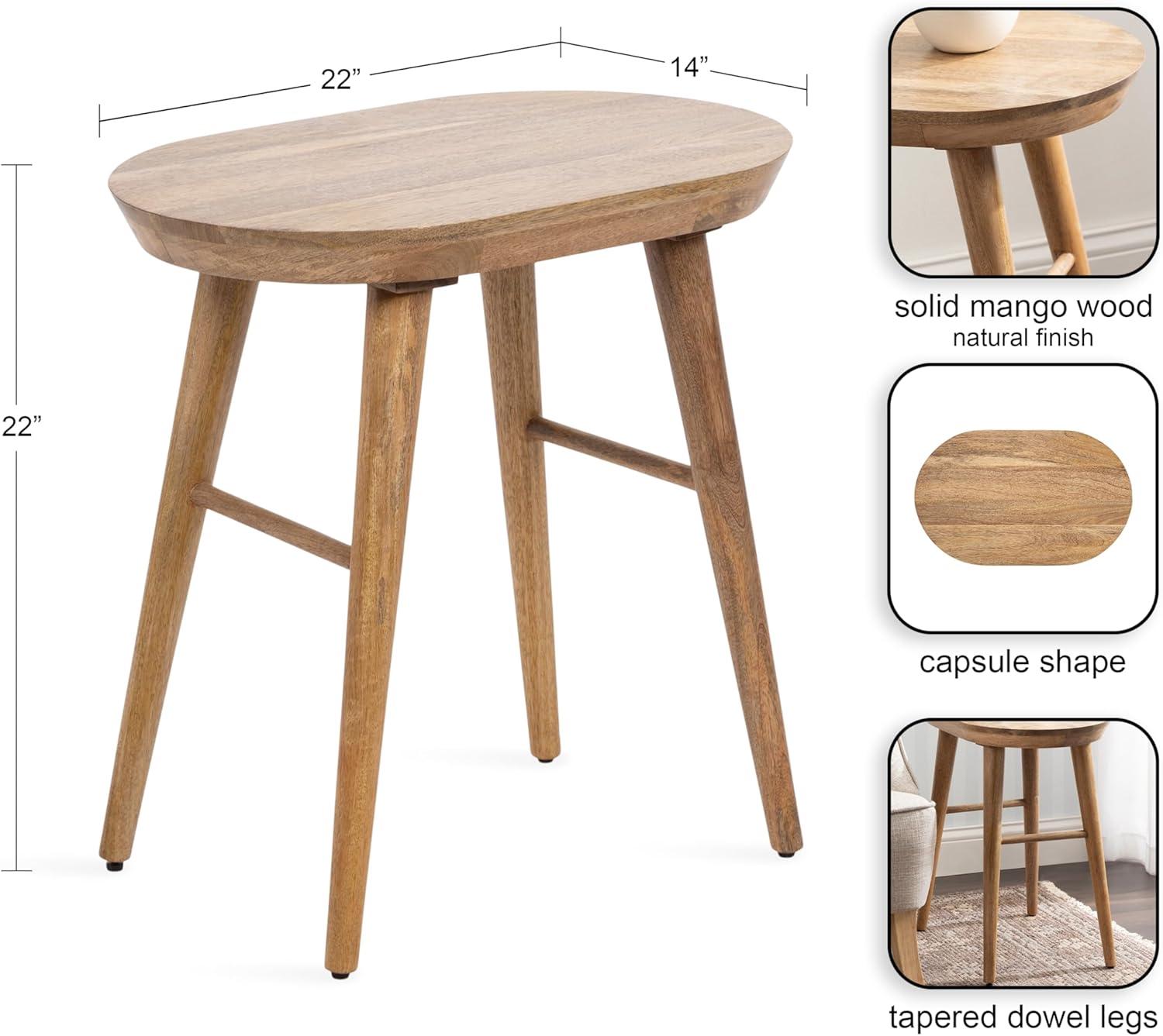 Kate and Laurel Conan Modern Oval Mango Wood Side Table, 22 x 14 x 22, Natural Wood, Mid-Century Capsule End Table with Tapered Dowel Legs for Use as Bedroom Nightstand or Indoor Plant Stand