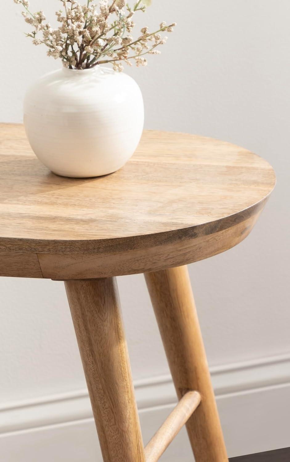 The Kate and Laurel Conan side table is a masterpiece of mid-century design that will elevate your living room decor to a whole new level of sophistication. Crafted with precision and attention to detail, this end table boasts a timeless oval shape and a warm natural brown finish that effortlessly complements any interior style. The tapered dowel legs add an elegant touch to the overall design while providing stability and balance. Its solid mango wood construction ensures both durability and beauty, making it a long-lasting addition to your home. It also means that each table will have its own unique wood grain, making your table truly one-of-a-kind. With the Conan side table, you can create a welcoming and stylish atmosphere that exudes warmth and character. Upgrade your living space today with this exquisite piece of furniture that combines form and function seamlessly. At 22 inches wide by 14 inches deep by 22 inches high, this end table provides ample surface space for your essentials, from morning coffee to evening cocktails. Or, use it next to your bed as a charming bedroom nightstand option.