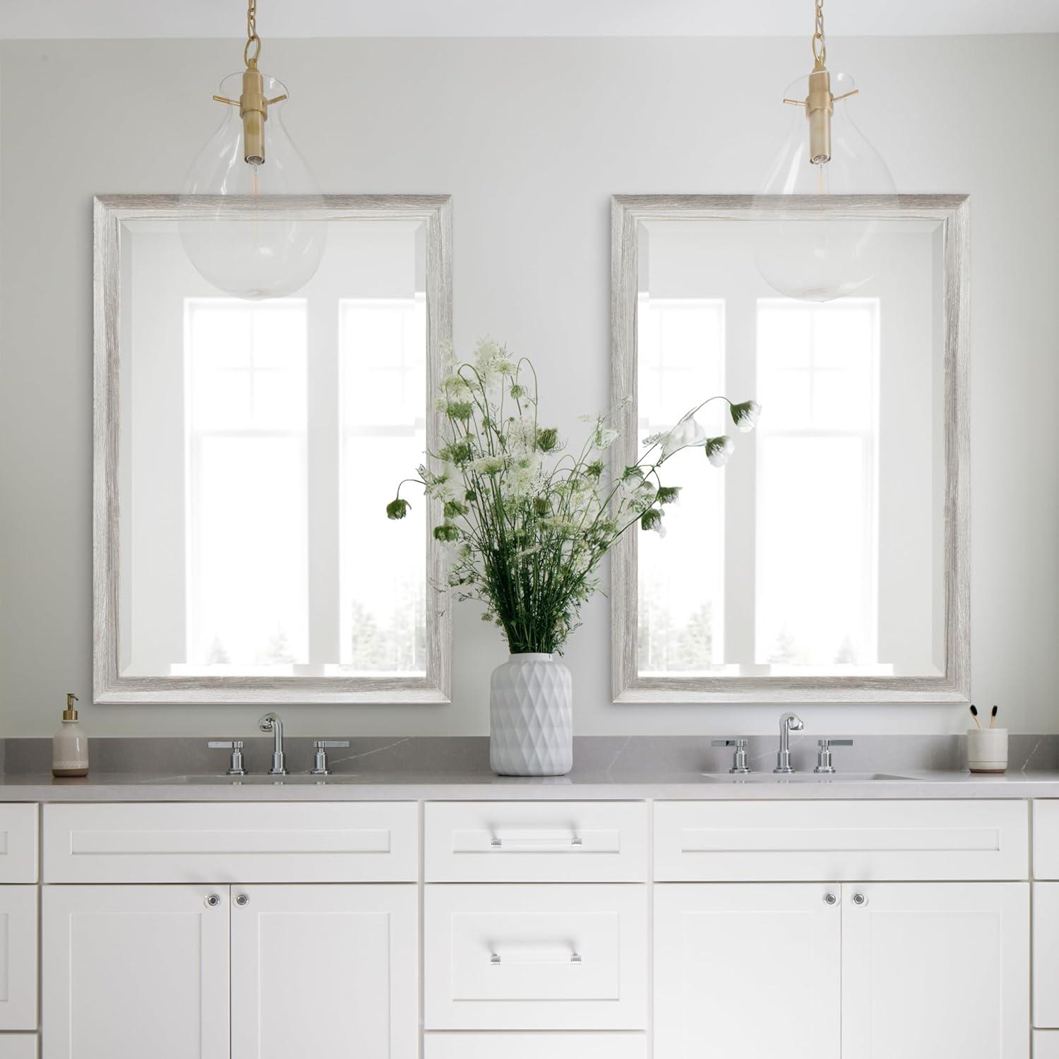 Perfect Bathroom Mirror for Over Sink: At 25.5 inches wide by 31.5 inches high, this large bath mirror works well with a single vanity or hang two side by side for a double vanity