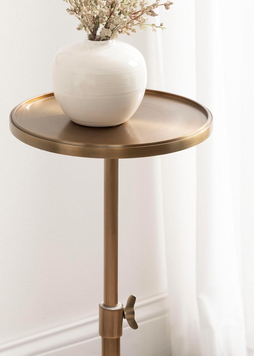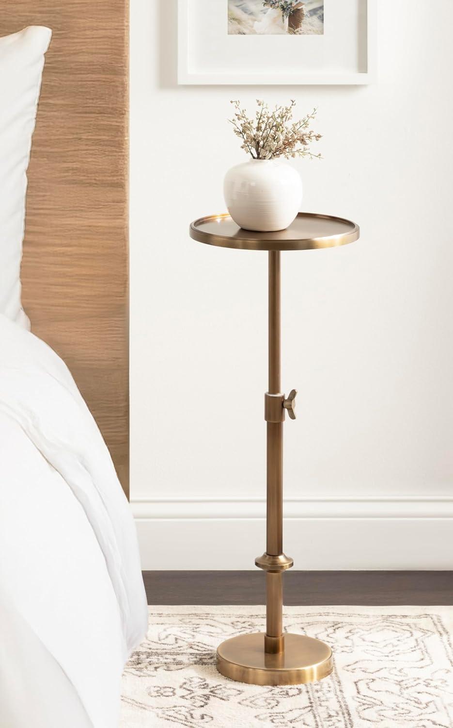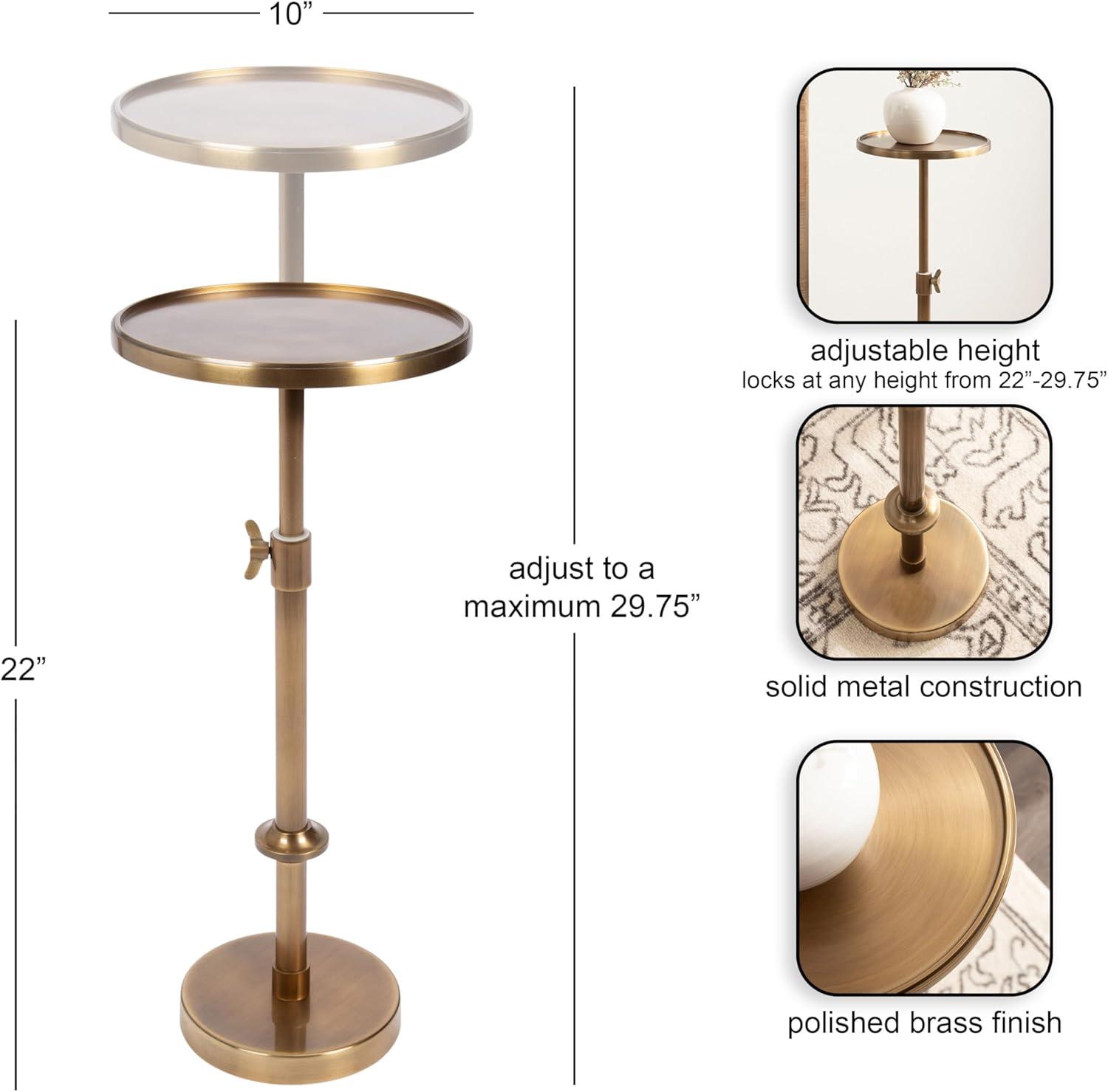 Kate and Laurel Engles Traditional Adjustable-Height Pedestal Drink Table, 10 x 10 x 30, Polished Nickel, Vintage Round Living Room Pedestal Table for Indoor Plant Stand with Protective Tabletop Lip(Gold)