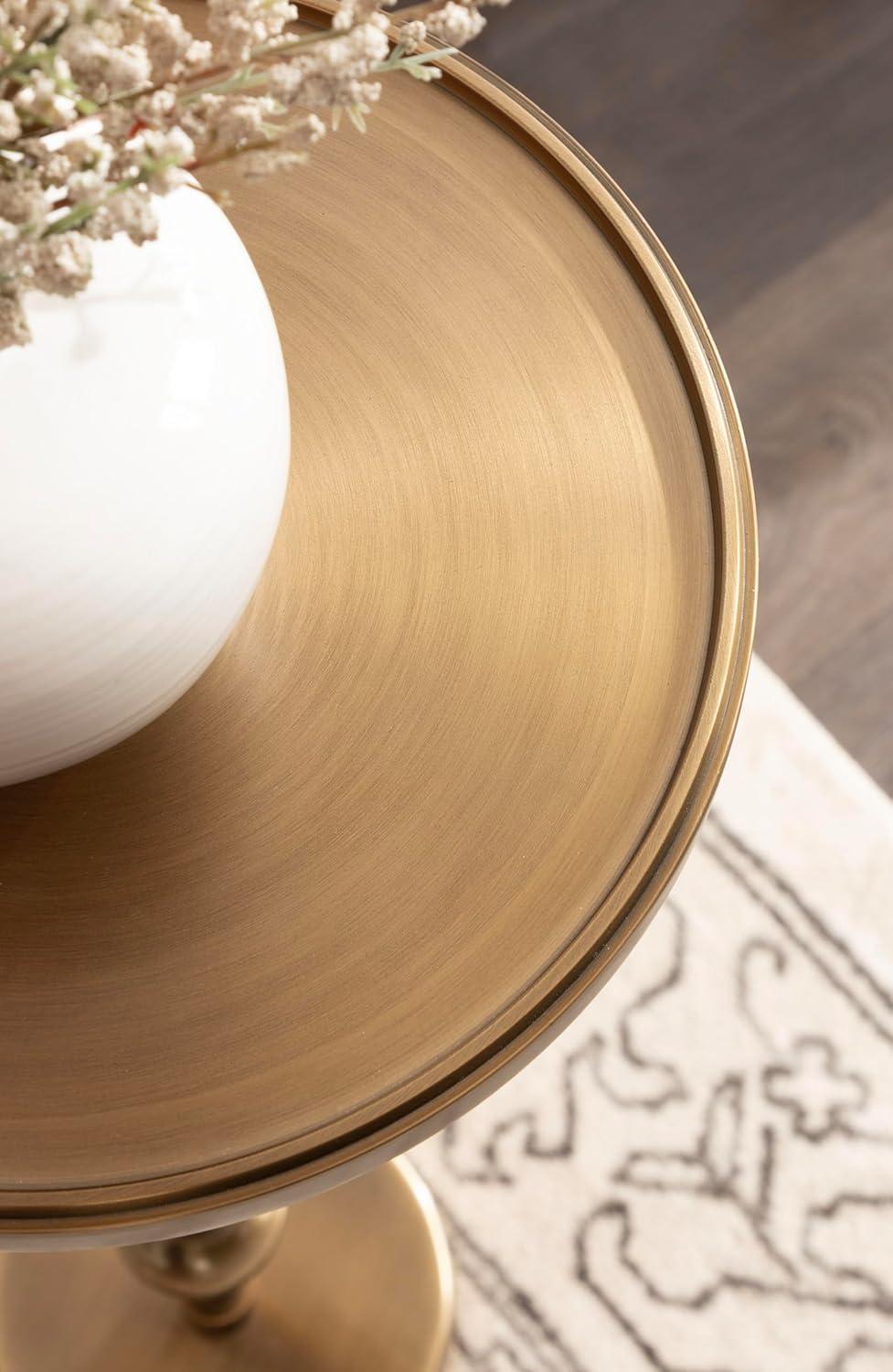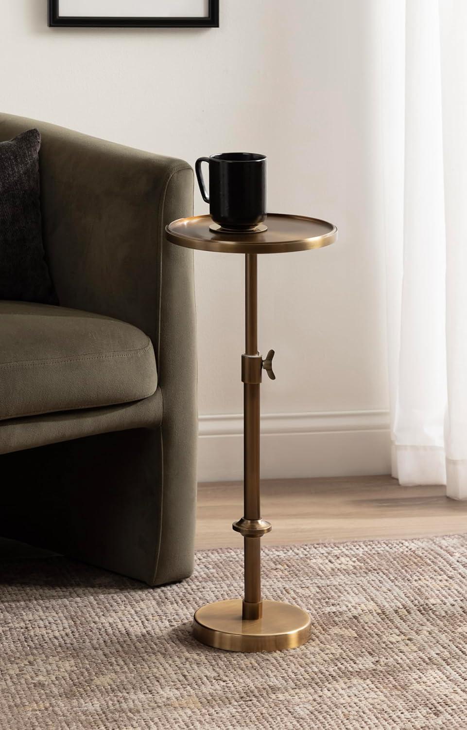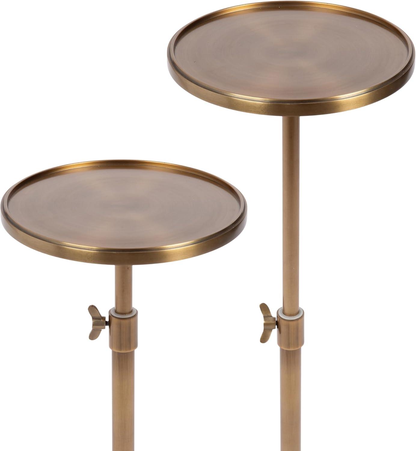 Kate and Laurel Engles Traditional Adjustable-Height Pedestal Drink Table, 10 x 10 x 30, Polished Nickel, Vintage Round Living Room Pedestal Table for Indoor Plant Stand with Protective Tabletop Lip(Gold)
