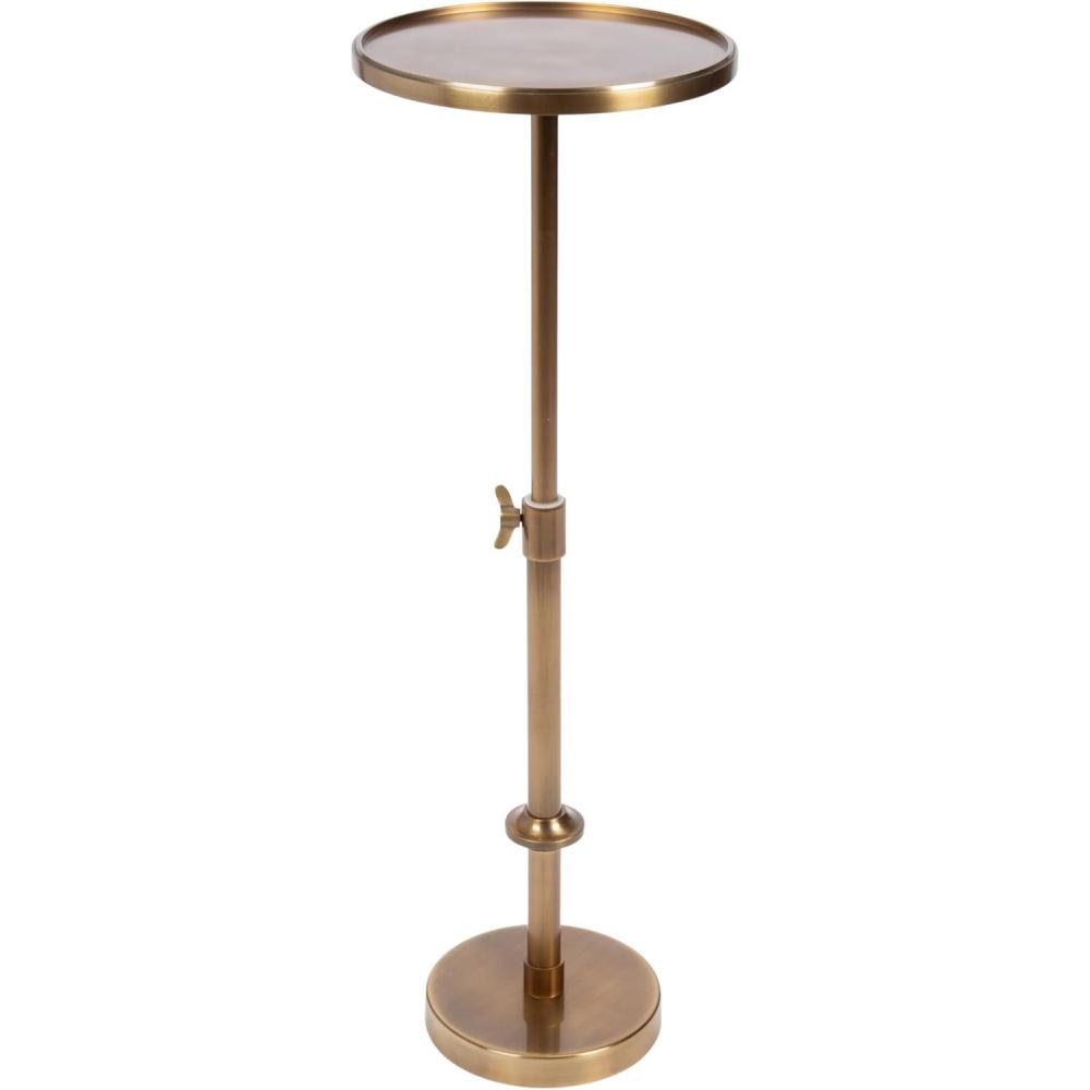 This charming one-of-a-kind accent table makes a bold impression with its handcrafted traditional style. The Engles drink table has a sophisticated design, with a round tabletop featuring a smooth surface with a protective lip. This round drink table features a unique telescope design, which allows you to adjust the height anywhere from 22 inches to 29.75 inches tall. This means that you can make it fit whatever height works best for your space. The table was constructed from a metal material featuring a polished nickel tabletop and adjustable base to give it an aesthetic reminiscent of both traditional and modern styles. This elegant end table's overall dimensions are 10 inches wide by 10 inches deep by 29.75 inches tall when fully extended, making it a fantastic addition to a couch, armchair, ottoman, or bed. The Engles pedestal table looks great serving drinks on coasters, acting as a catch-all for small household items, or displaying a sprawling house plant as a plant stand. The small size makes it fantastic for small spaces or corners as well. Assemble this beautiful drink table in a matter of minutes with an easy-to-follow, no-tools assembly process.