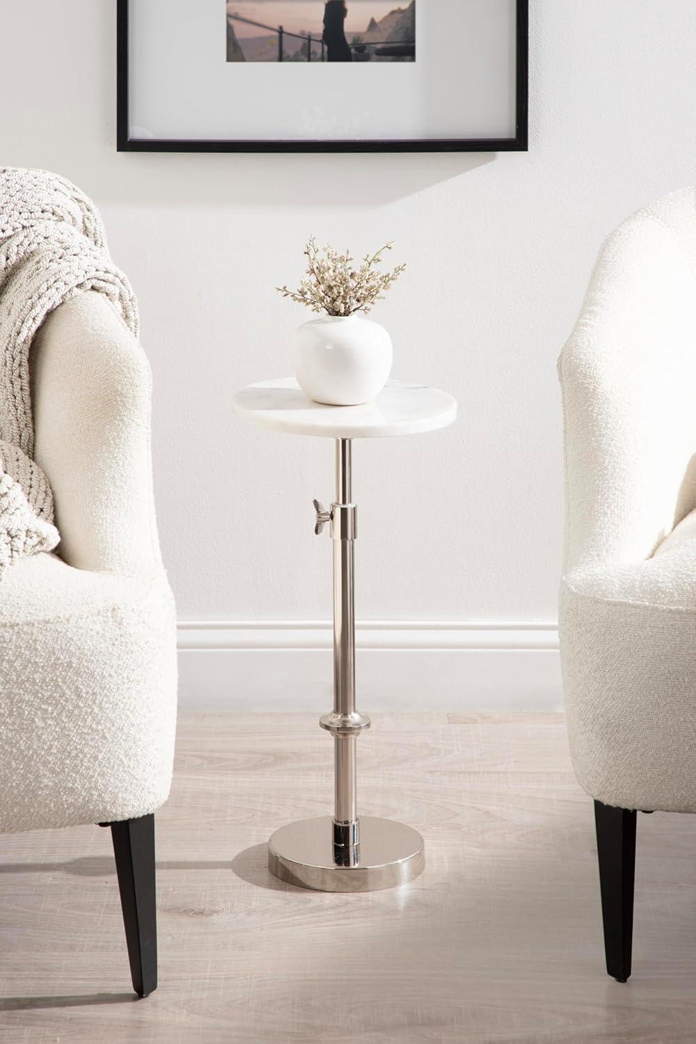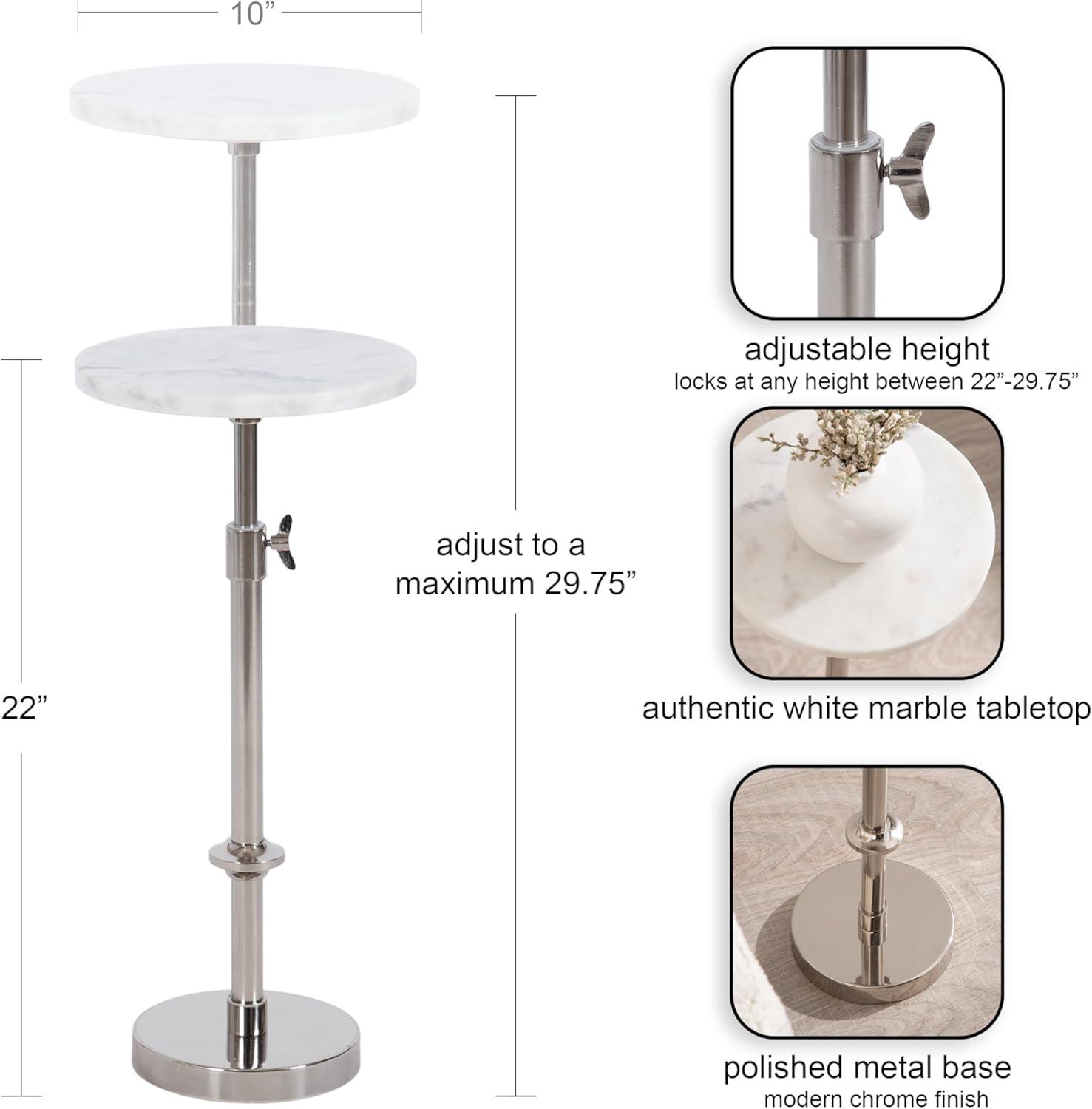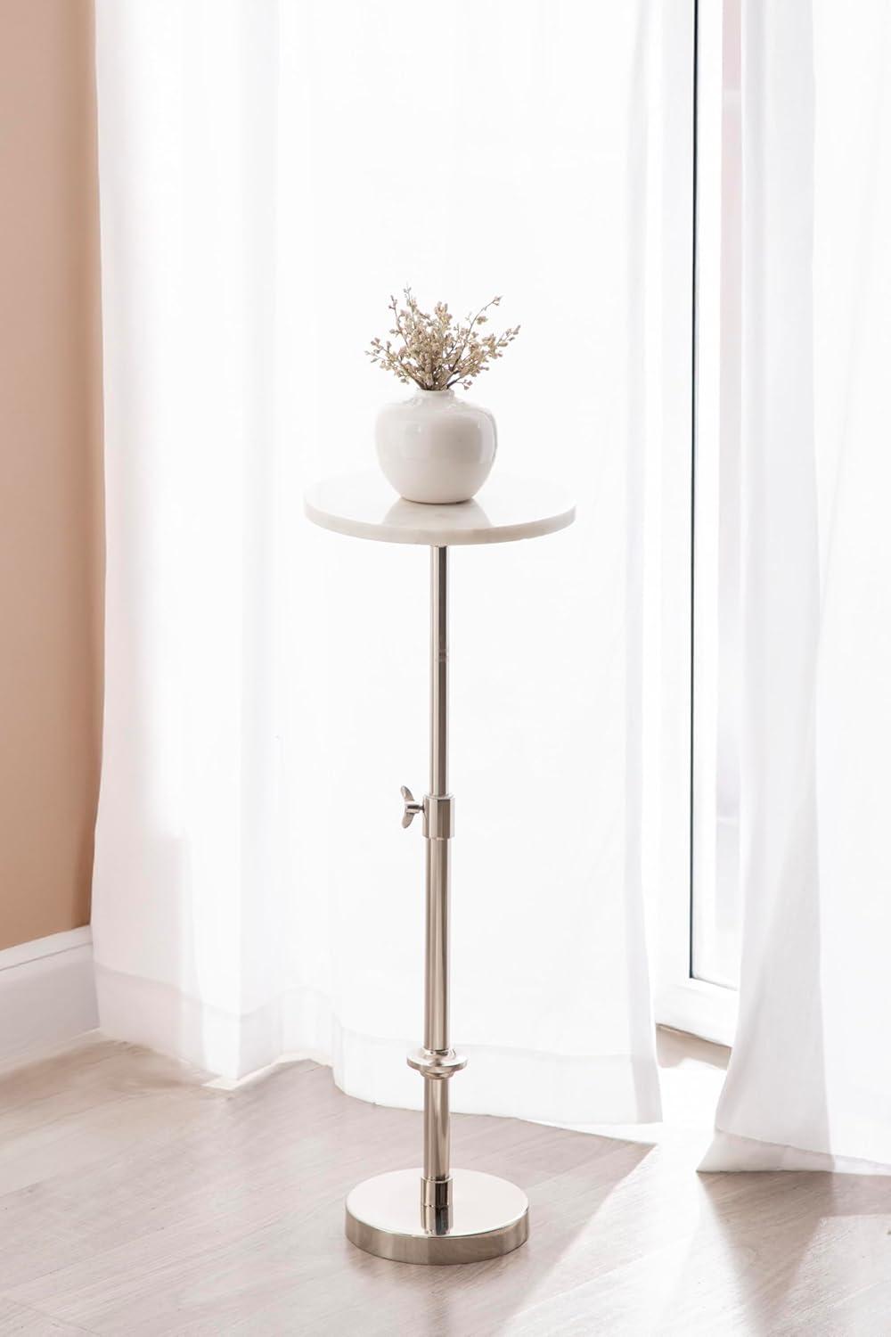 Kate and Laurel Engles Traditional Adjustable-Height Pedestal Side Table, 14 x 14 x 30, Black Marble and Antique Brass, Vintage Round End Table for Use as Indoor Plant Stand with Authentic Marble Top(Silver/White)