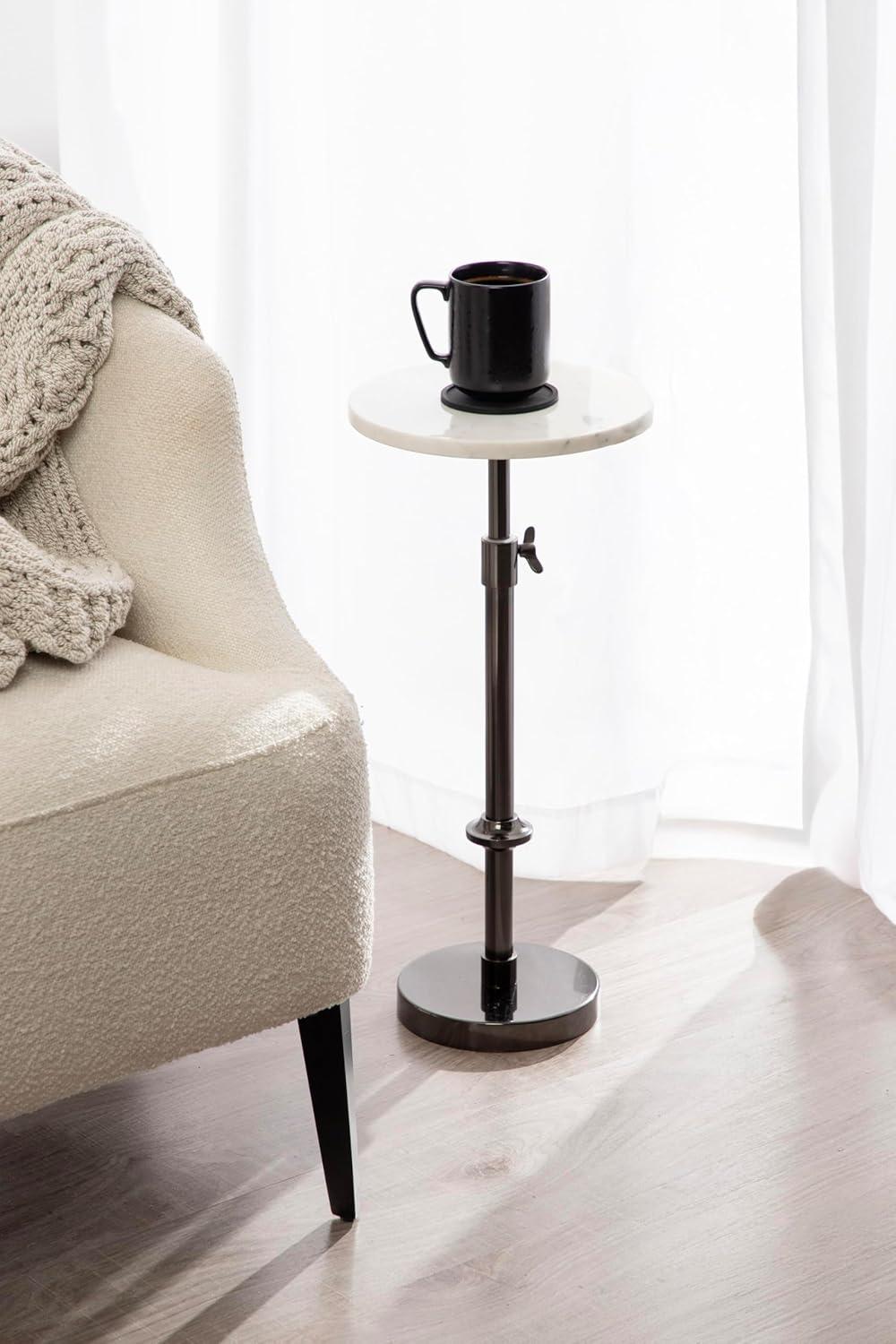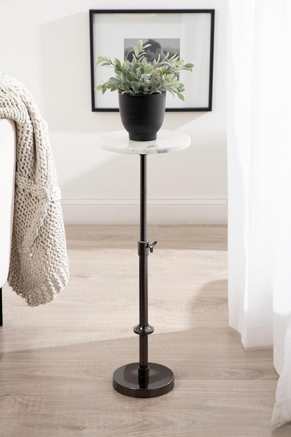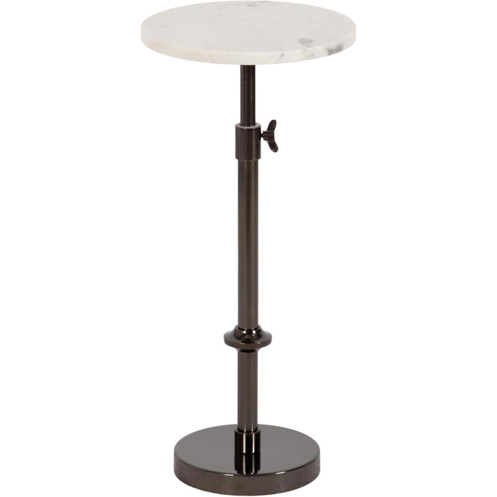 This charming one-of-a-kind accent table makes a bold impression with its handcrafted traditional style. The Engles side table has a sophisticated design, with an authentic black marble tabletop. This round end table features a unique telescope design, which allows you to adjust the height anywhere from 22 inches to 29.75 inches tall. This means that you can make it fit whatever height works best for your space. The table base is constructed from a metal material featuring an antique brass finish to give it an aesthetic reminiscent of traditional style. This elegant end table's overall dimensions are 14 inches wide by 14 inches deep by 29.75 inches tall when fully extended, making it a fantastic addition to a couch, armchair, ottoman, or bed. The Engles pedestal table looks great serving drinks on coasters, acting as a catch-all for small household items, or displaying a sprawling house plant as a plant stand. The versatile size makes it fantastic for small spaces or corners as well. Assemble this beautiful side table in a matter of minutes with an easy-to-follow, 3-step assembly process.