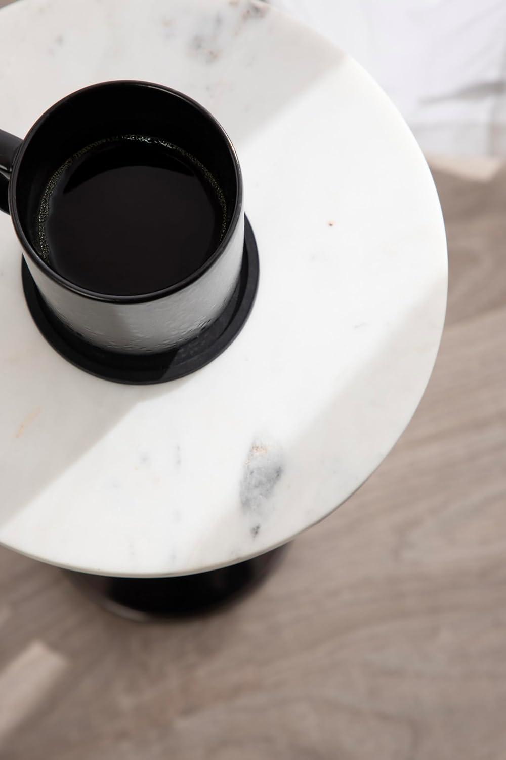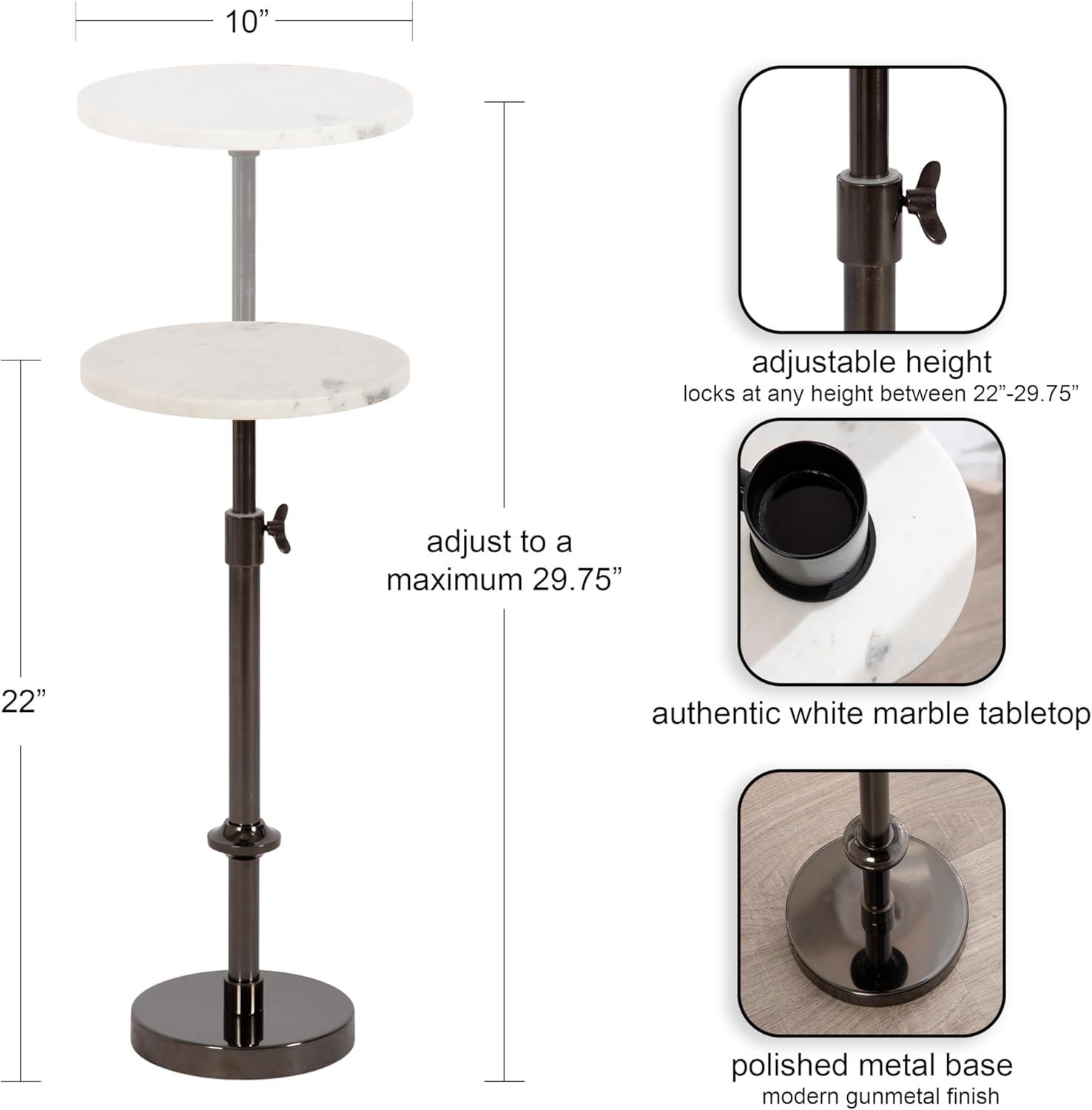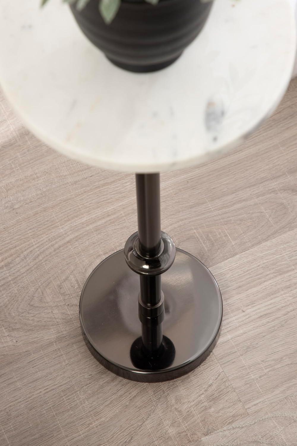 This charming one-of-a-kind accent table makes a bold impression with its handcrafted traditional style. The Engles side table has a sophisticated design, with an authentic black marble tabletop. This round end table features a unique telescope design, which allows you to adjust the height anywhere from 22 inches to 29.75 inches tall. This means that you can make it fit whatever height works best for your space. The table base is constructed from a metal material featuring an antique brass finish to give it an aesthetic reminiscent of traditional style. This elegant end table's overall dimensions are 14 inches wide by 14 inches deep by 29.75 inches tall when fully extended, making it a fantastic addition to a couch, armchair, ottoman, or bed. The Engles pedestal table looks great serving drinks on coasters, acting as a catch-all for small household items, or displaying a sprawling house plant as a plant stand. The versatile size makes it fantastic for small spaces or corners as well. Assemble this beautiful side table in a matter of minutes with an easy-to-follow, 3-step assembly process.