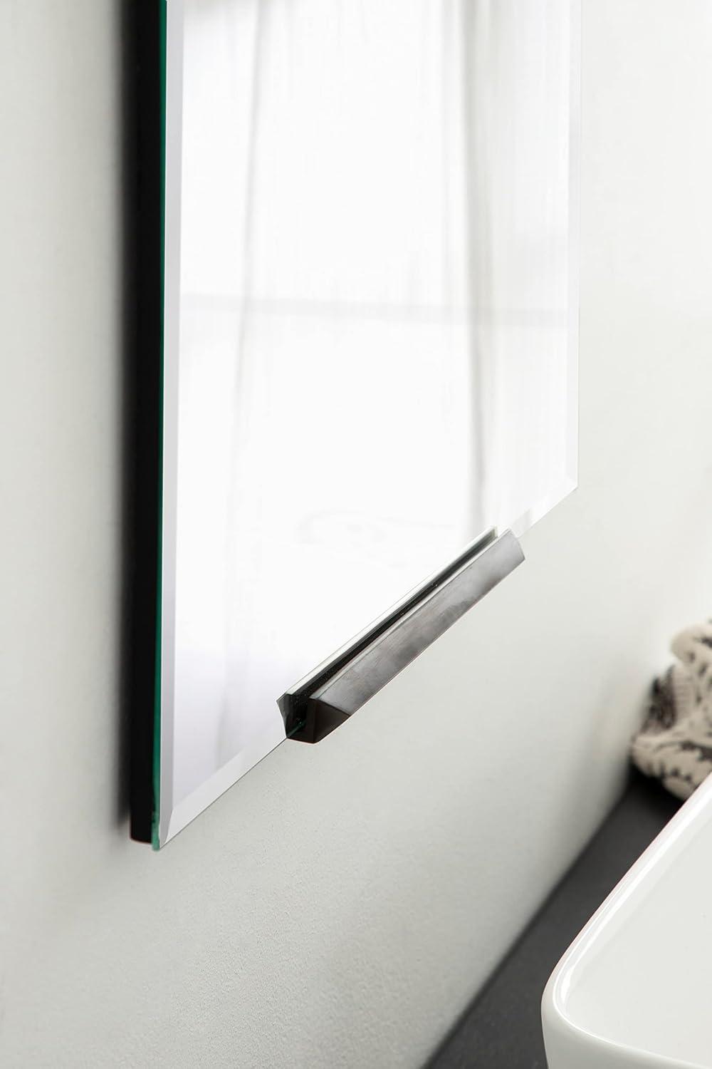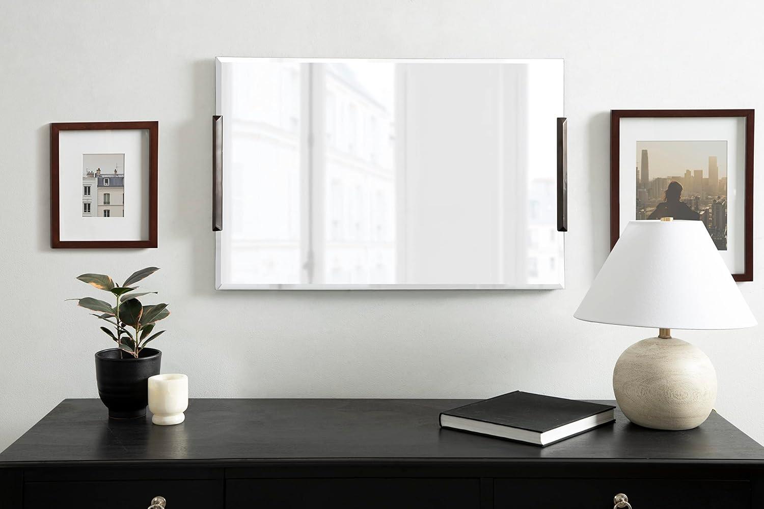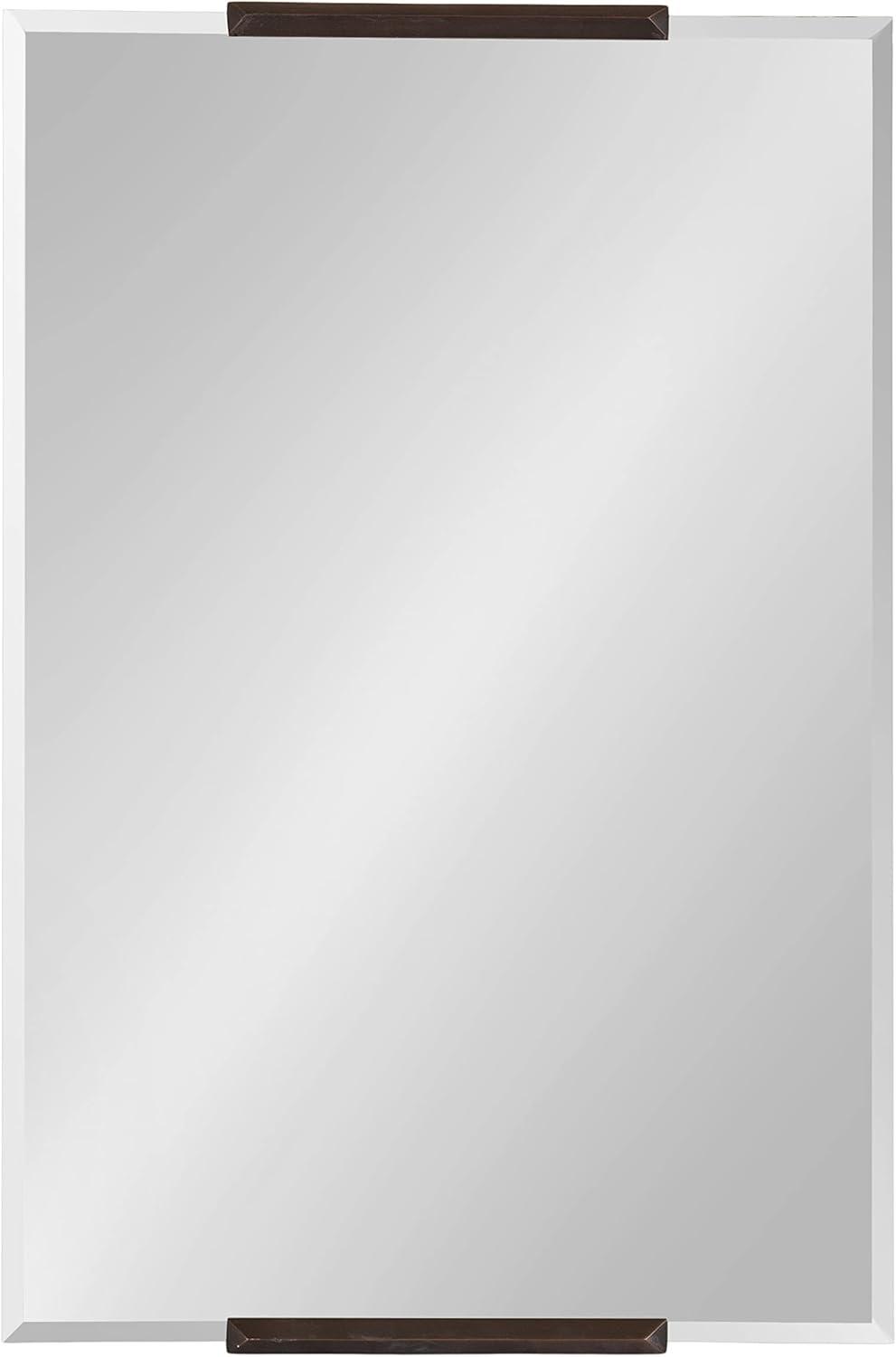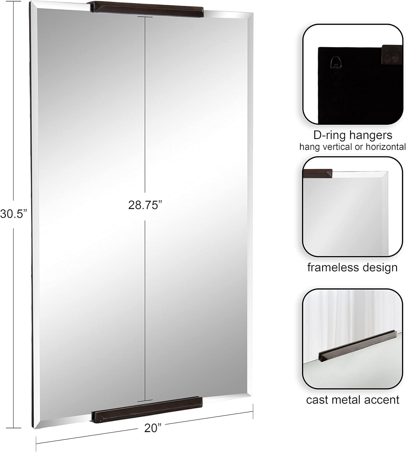 Fill your space with modern elegance with the stunning Erina wall mirror. This versatile mirror has a very unique design with a frameless construction that gives your space a sleek addition. Its gorgeous bevel along its outside provides a three-dimensional look and feel to your home. At the top and bottom of the Erina, there's a bronze cast metal accent that gives this piece an additional level of elegance and refinement. Due to its lovely, refined design, the Erina would serve as the perfect addition as a bathroom vanity mirror, a bedroom accent mirror, or a living room decor addition. Created to elevate bathroom vanity setups, the Erina mirror is the perfect size at 20 inches wide by 30.5 inches high. This luxurious wall mirror includes the ability to hang either vertically or horizontally in order to fit your available wall space. With its attached D-ring hangers, you can hang the Erina easily and securely. Utilize the luxurious Erina mirror to completely transform your home decor standard.