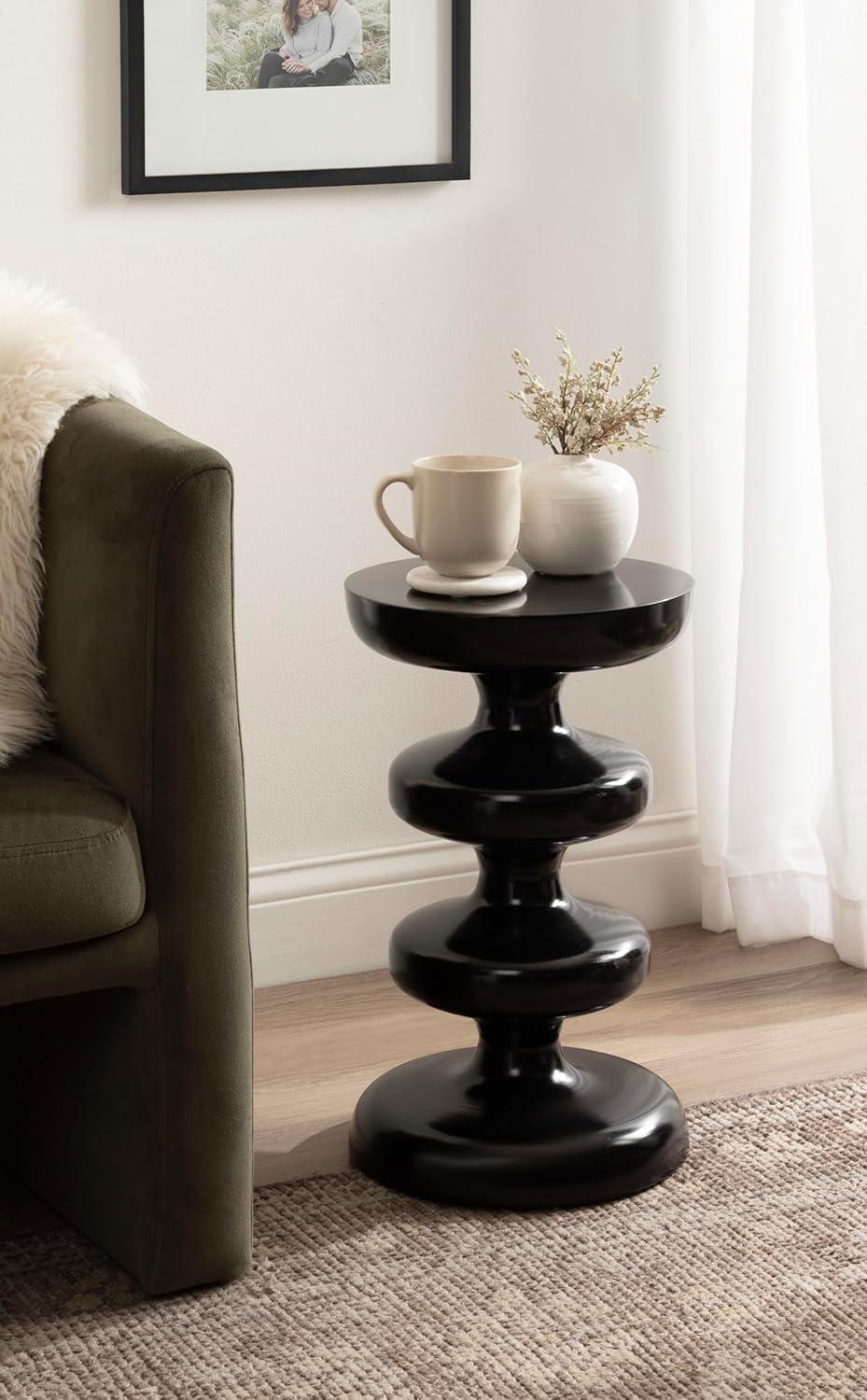 Kate and Laurel Fondi Modern Metal Round Side Table, 12 x 12 x 21, Green, Dorm Living Room Stacked Bubble End Table for Use as Bedroom Nightstand or Outdoor Patio Decor Option(Black)