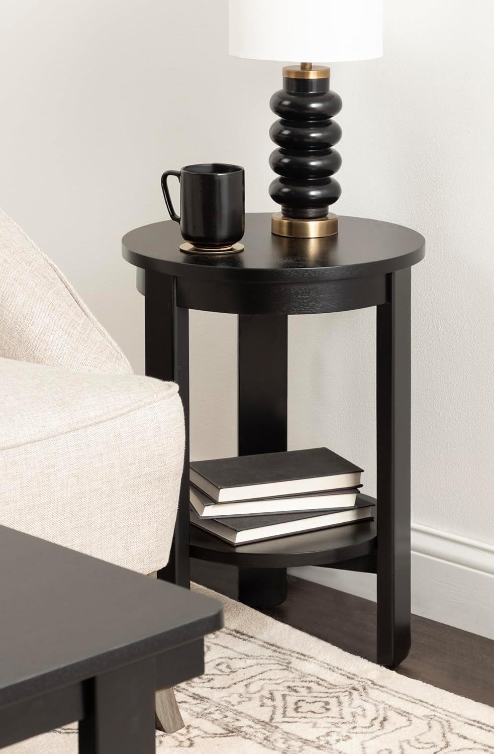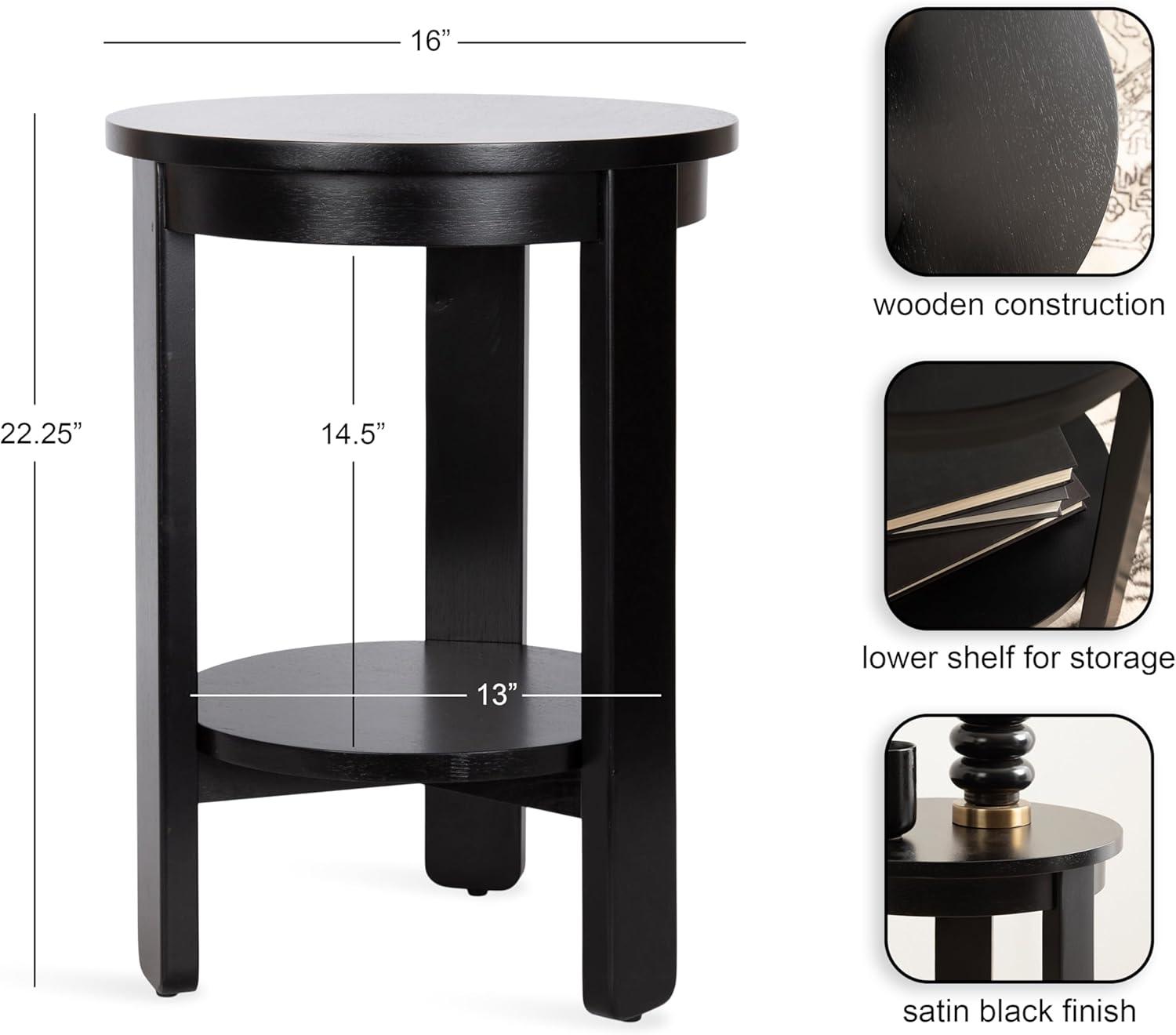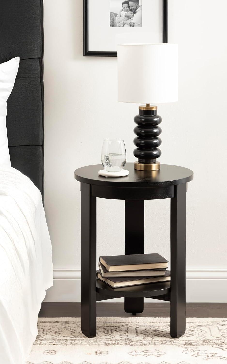 Kate and Laurel Foxford Tiered Round Side Table, 16 x 16 x 23, Walnut Brown, Transitional Two-Tier Circle Nightstand Table with Storage and Resilient Wood Construction for Bedroom Decor(Black)