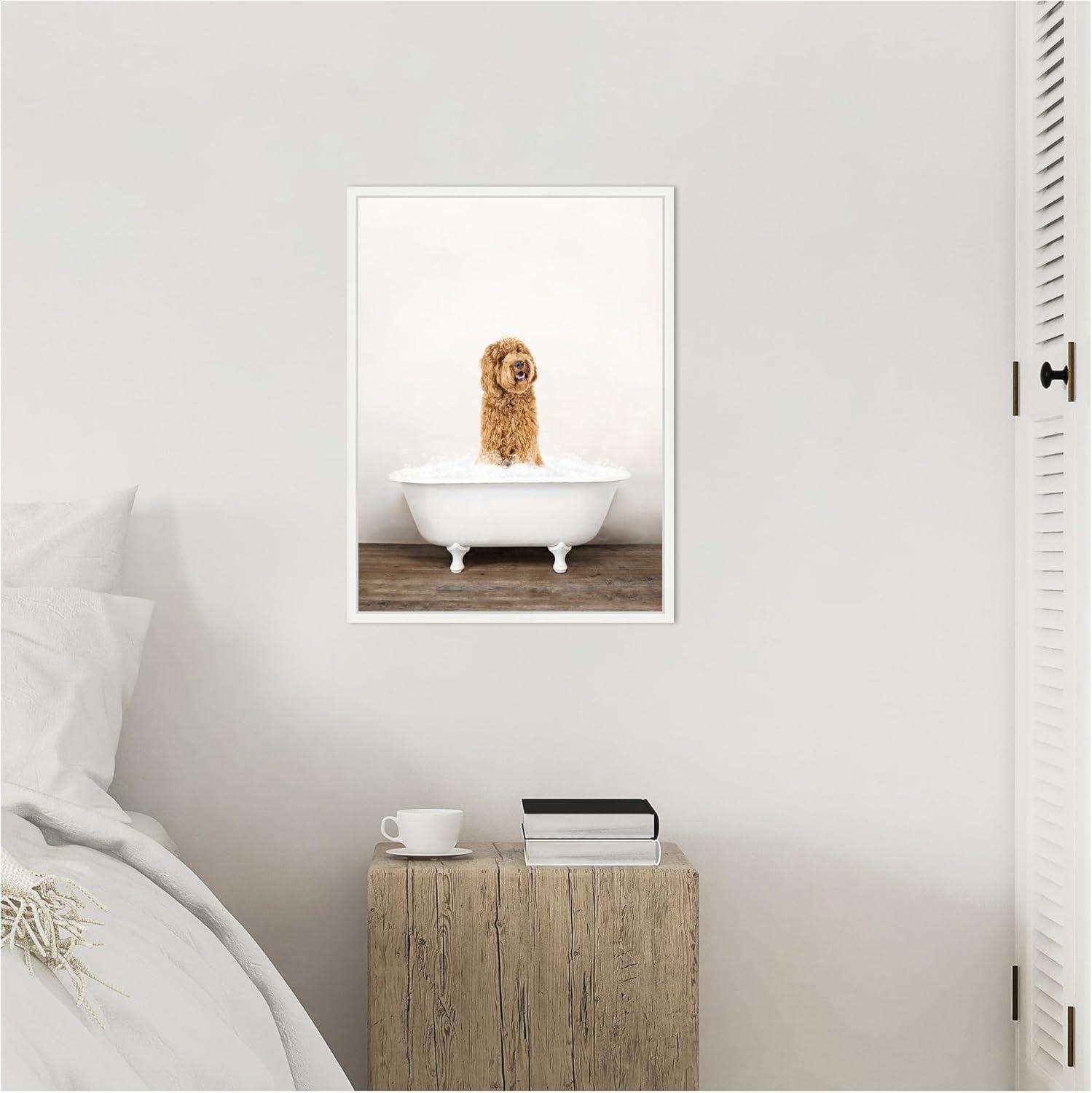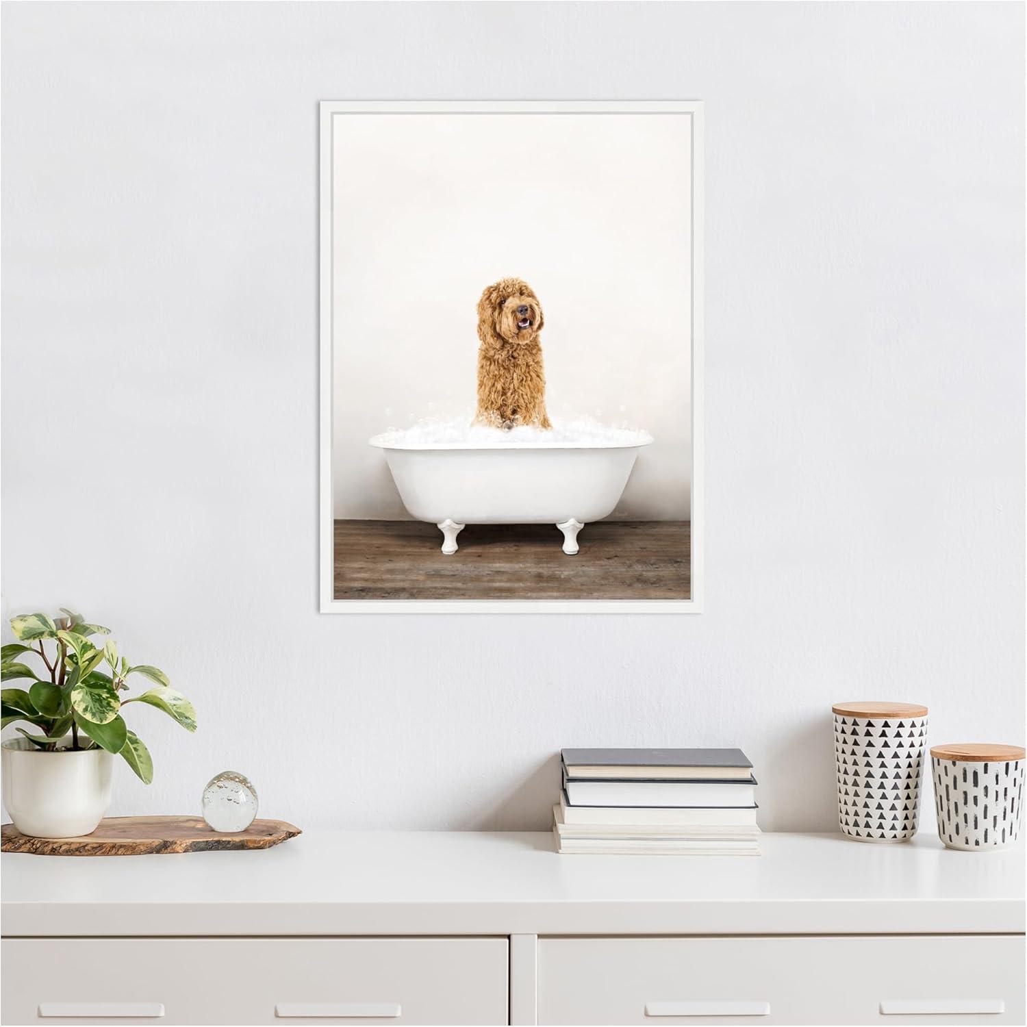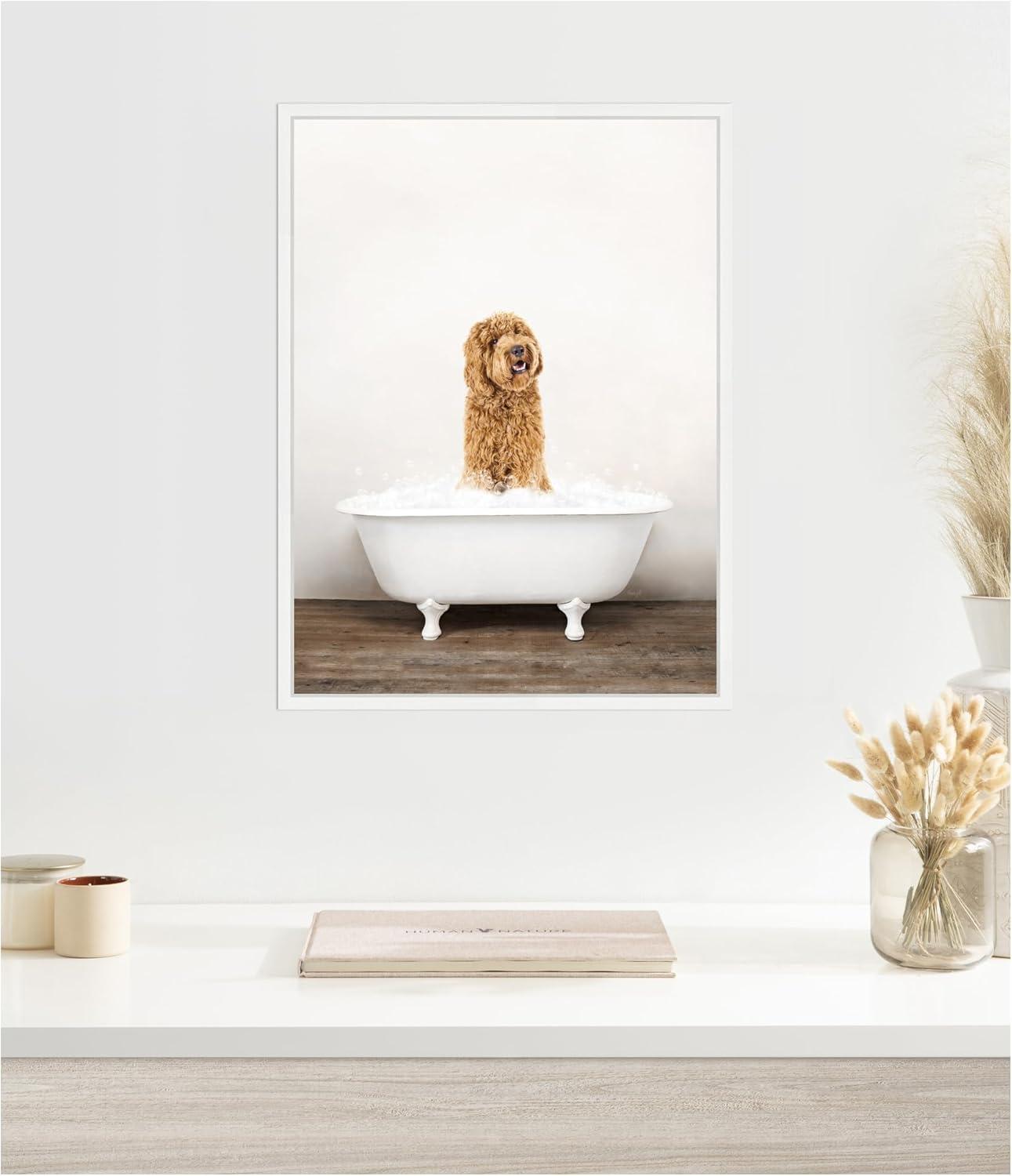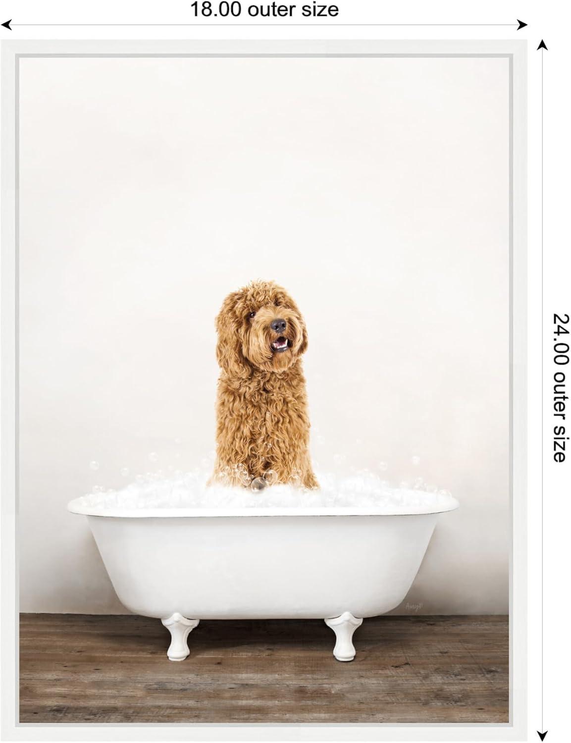 Kate and Laurel Golden Labradoodle in Rustic Bath Style Framed Canvas Wall Art by Amy Peterson 18 x 24 Sylvie White, Farmhouse, Animals, Bathroom Art for Wall Decor, Living Room, Bedroom