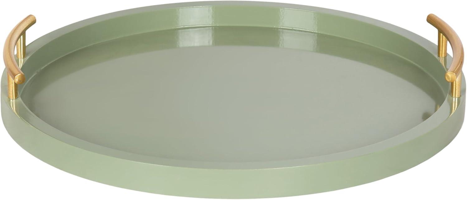 Add some elegance and serving space with the Halsey round decorative wooden tray. The polished metal handles add to its style and functionality. Place this charming tray on your entrance console table as a catchall tray to keep your keys and mail as you come and go, or it's spacious enough to be used as a decorative accent on an ottoman to hold your beverages on coasters. Constructed of a solid wooden material with a beautiful satin black finish and polished gold metal handles, this circular tray is sturdy enough to serve guests your favorite cocktails on coasters. The outside dimensions measure 16 inches in diameter with a height of 2.25 inches. It has a slight lip along the outer edge to keep your items contained without interfering with its sleek nature. Bring a smart and attractive decorative accent into your home with this beautiful modern round tray. The refined metal handles allow you to easily transport this tray from room to room without worry.