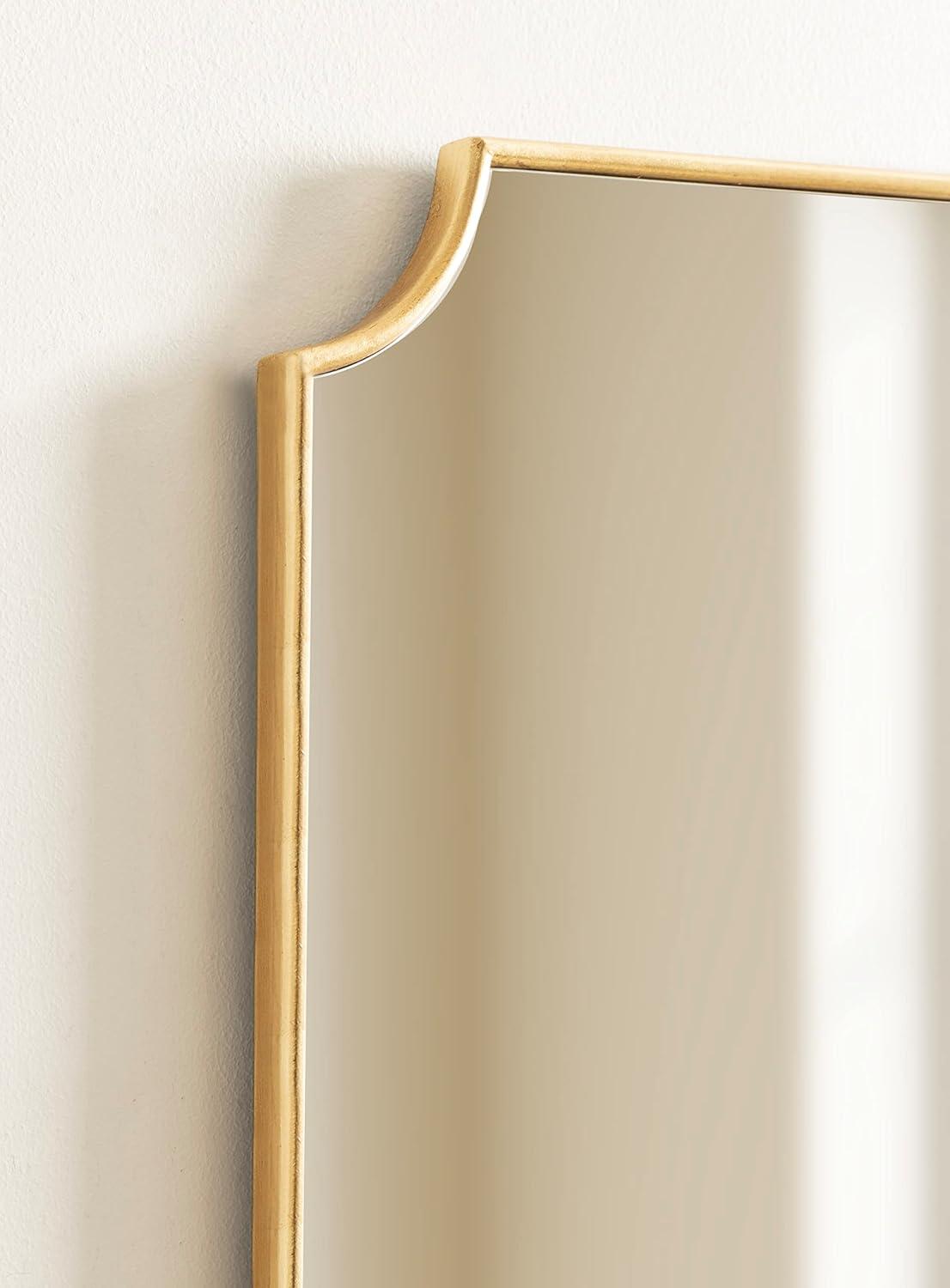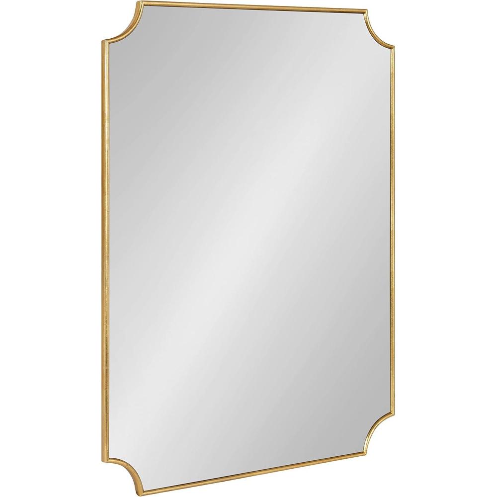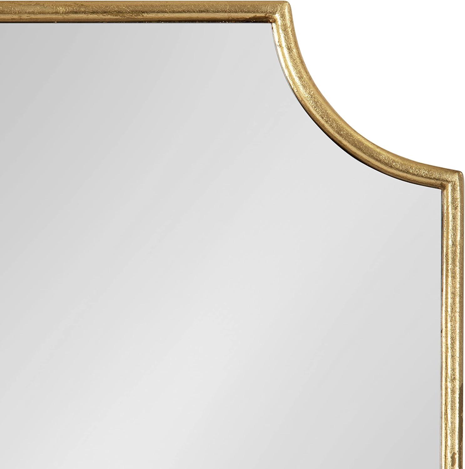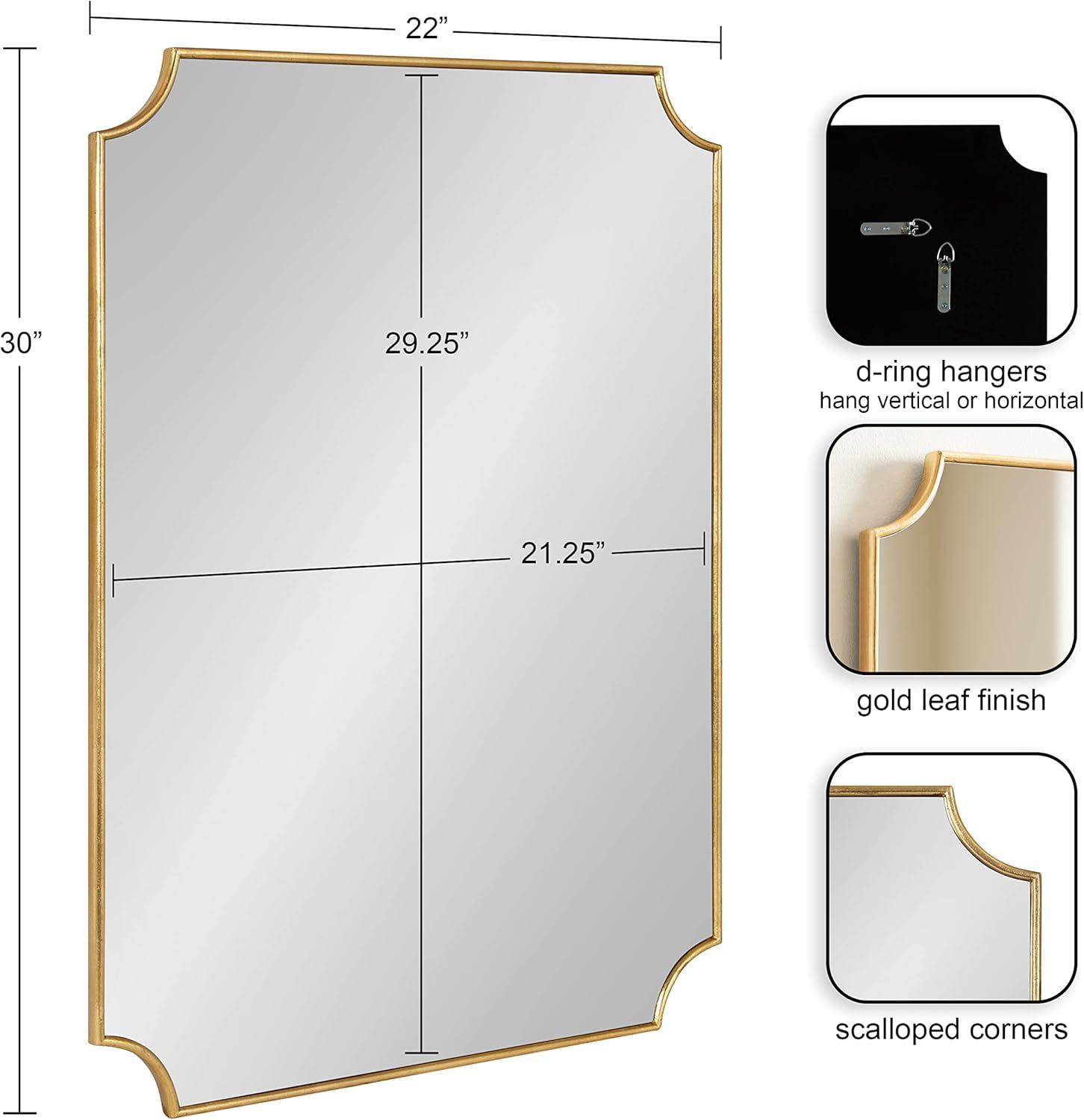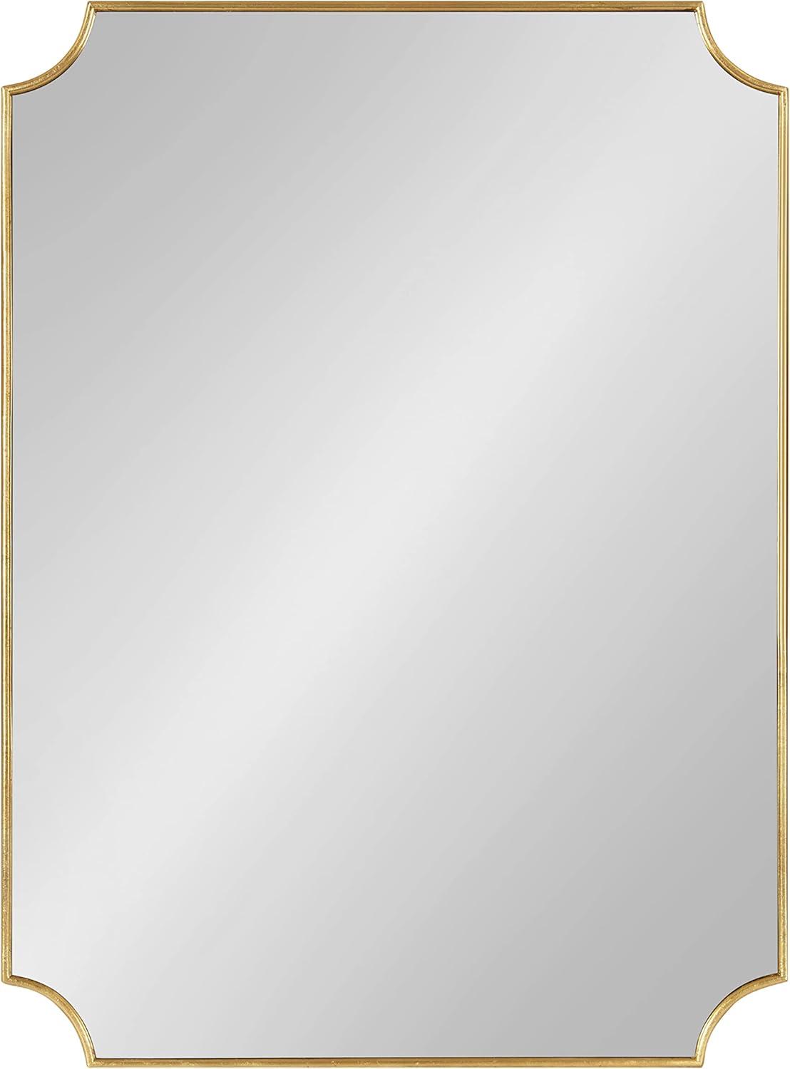 The Healey mirror communicates a warm yet sophisticated decor theme on your wall. It features a rectangular shape with four scalloped corners, rounded to provide an elegant curvature. The gold finish heightens this elegance, taking cues from principles of glamorous design. The frame itself is lightweight and easy to move and hang. Its overall dimensions are 22 inches wide by 30 inches tall, making the Healey fantastic as a statement-making replacement for wall art in your living room, bedroom, entryway, or dining room. The Healey also looks fantastic as a bathroom vanity mirror, suited for a single or double vanity. Its size makes it fantastic for hanging in multiples, creating a stellar wall display. Hang this mirror over a console table, above your mantle, or flanking your bed to give your home a much-needed refresh. Installation of the Healey mirror only takes a matter of minutes with metal D-ring hangers attached vertically and horizontally for a versatile, no-hassle hanging process.