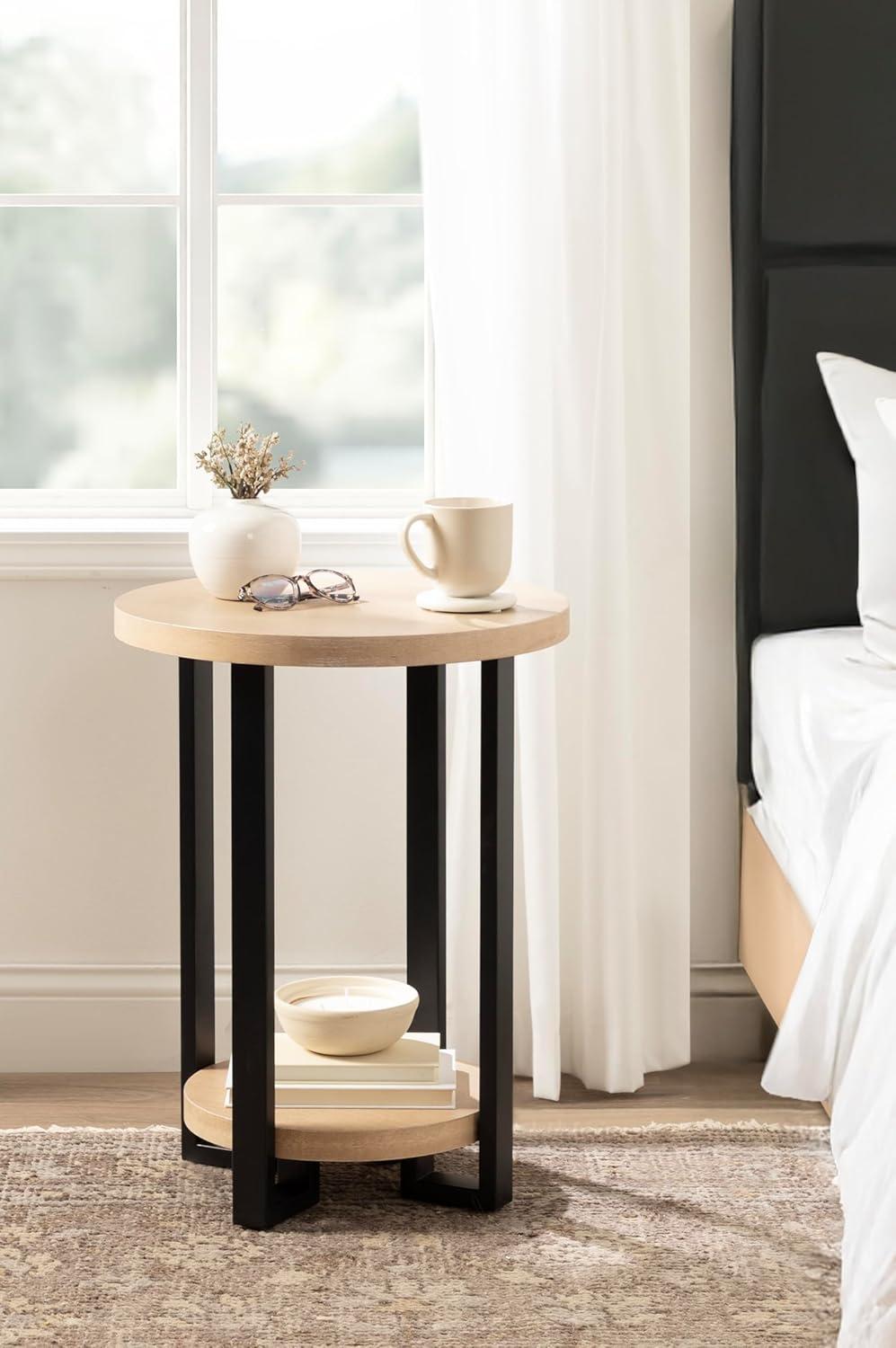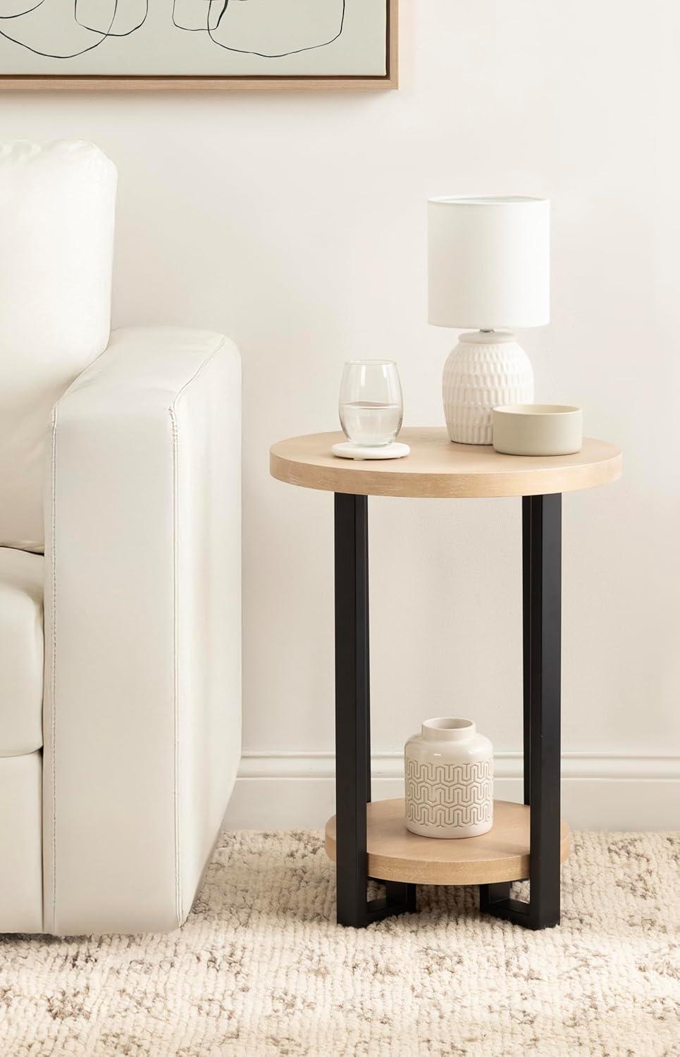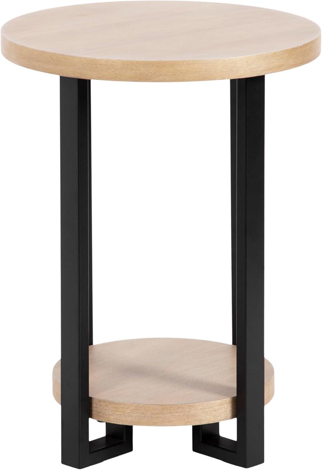 Kate and Laurel Hendricks Modern Geometric Round Wood Side Table, 19 x 19 x 25, Light Natural and Black, Decorative Circular Living Room End Table with Storage for Useful Home Decor
