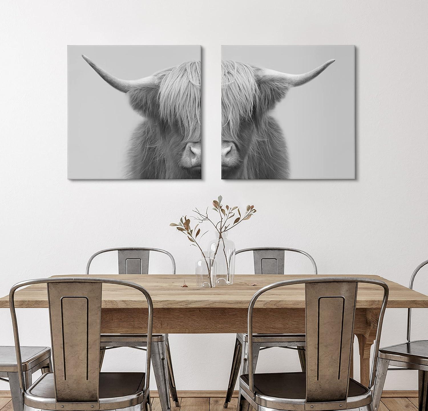 Kate and Laurel Hey Dude Highland Cow Gray Wall Art Set by The Creative Bunch Studio, 2 Piece 20 x 20 Black and White, Rustic Cow Art for Wall