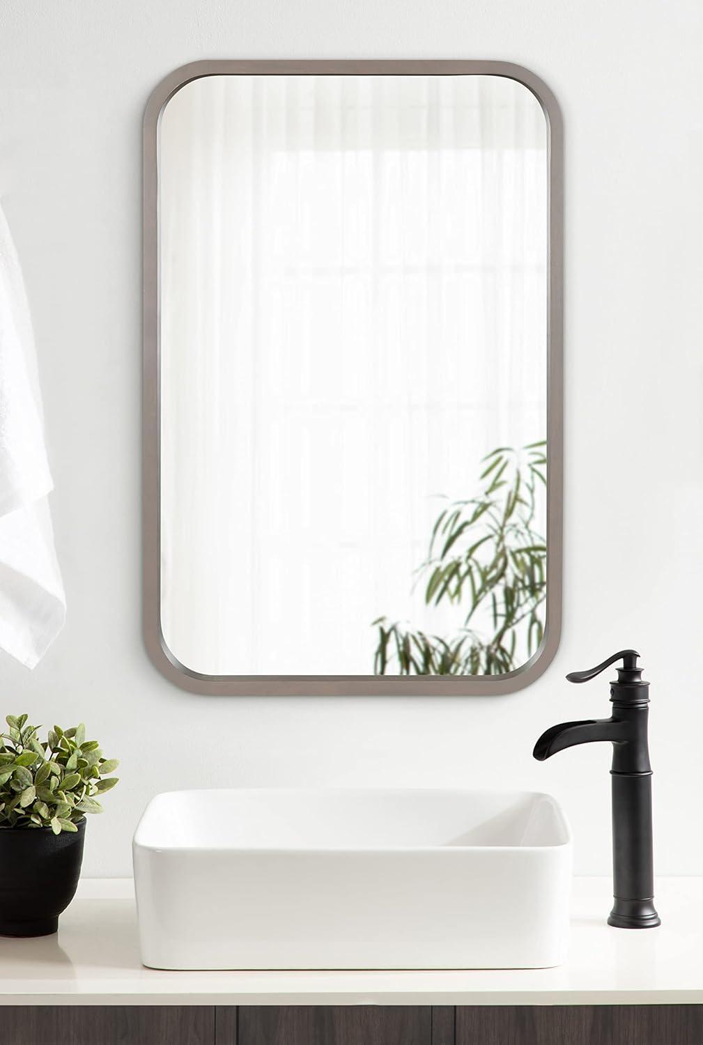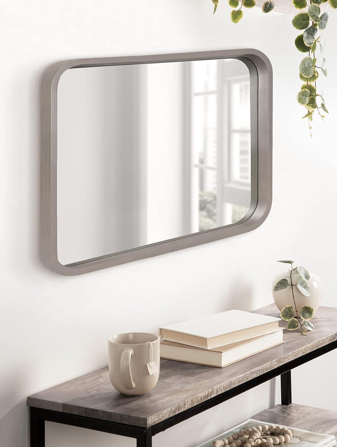 Kate and Laurel Hutton Modern Rounded Rectangle Wall Mirror, 20 x 30, Walnut Brown, Transitional Geometric Mirror for Wall(Grey)
