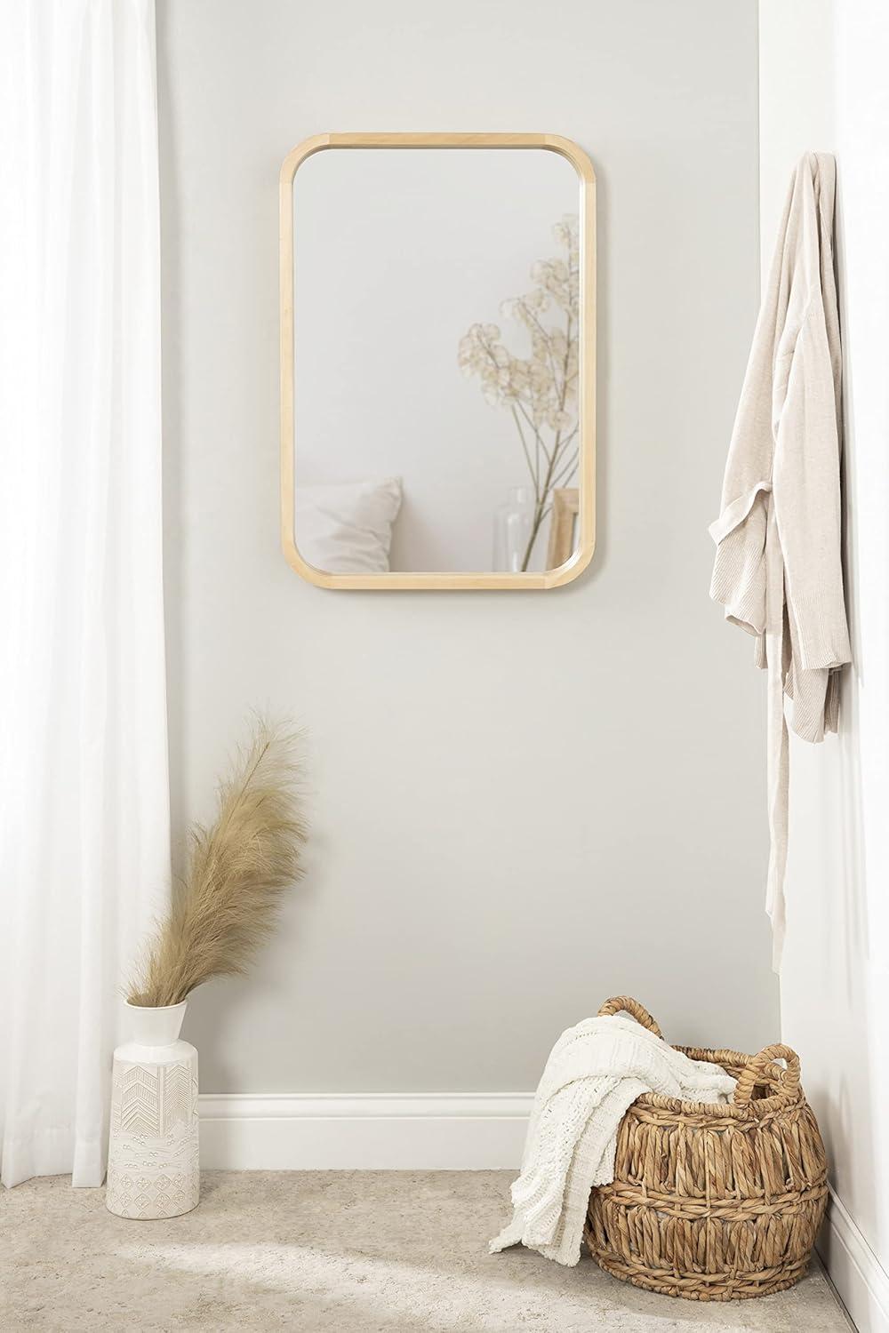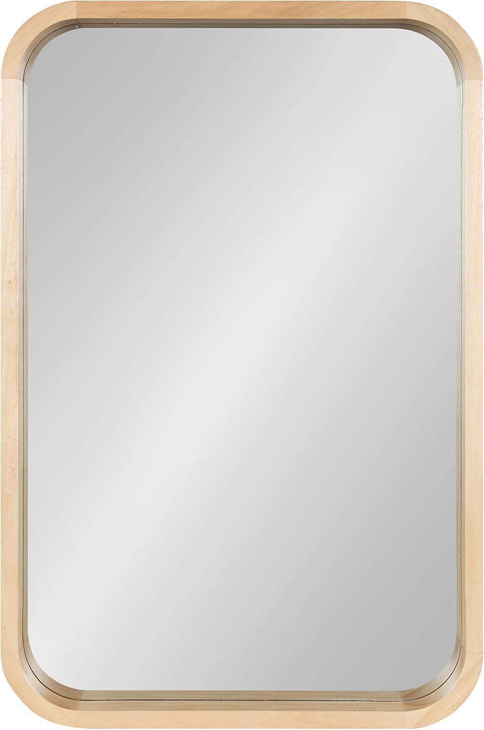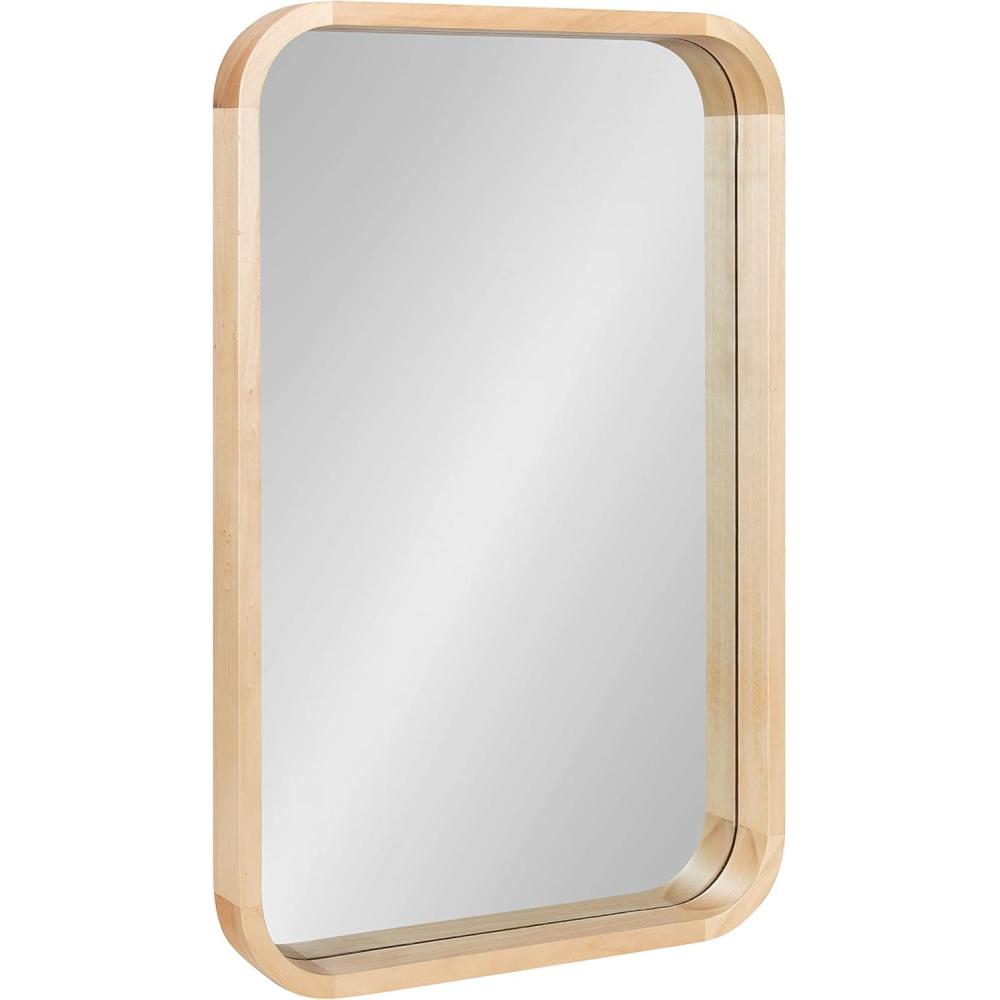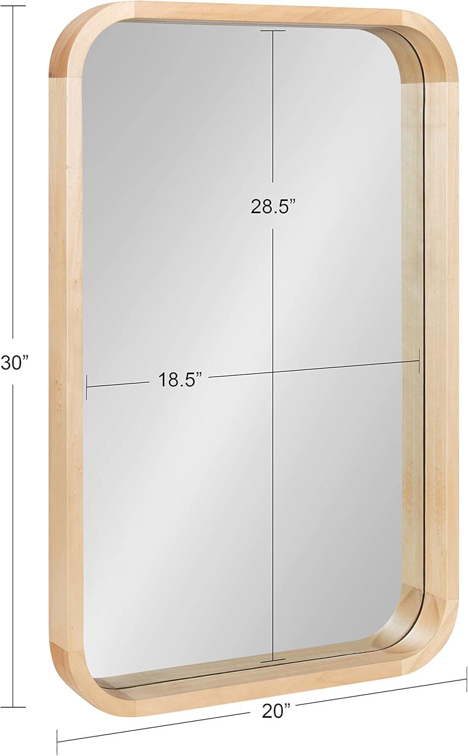 The Hutton wall mirror adds a charming modern statement to your wall while highlighting your home's vibrancy. The design utilizes a clean aesthetic, with a radius rectangle shape that has rounded corners for a softer look. The frame also features a walnut brown finish, creating a dynamic yet transitional accent capable of blending into various decor schemes. The Hutton frame was constructed from a premium solid poplar wood, giving it a thickness and robust quality that will last for years of display. Its overall dimensions are 20 inches by 2 inches by 30 inches, making it a bold wall accent that commands attention. At this size, the Hutton mirror is fabulous as a way to enhance the vibrancy of your home, reflecting your natural light to brighten the room and make it feel more open. It looks perfect both vertically and horizontally as a decorative focal point or as a bathroom mirror over a single or double vanity. Use the metal D-ring hangers attached to the back of the frame for quick, no-hassle hanging in a matter of minutes.
