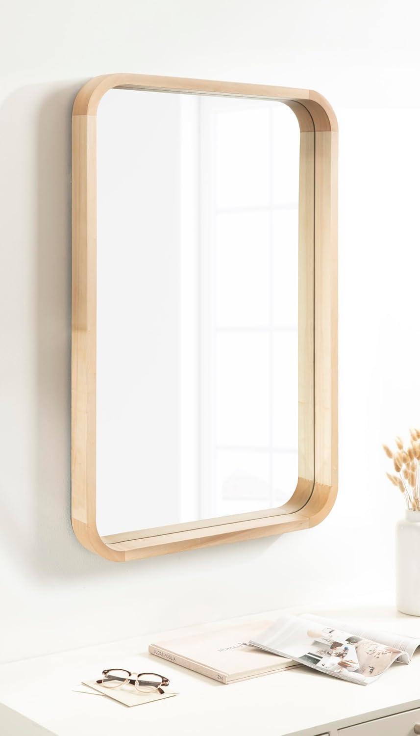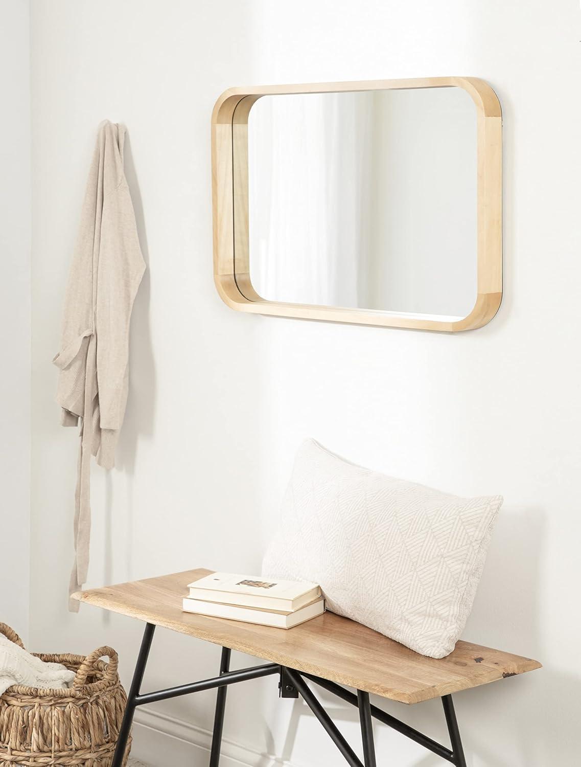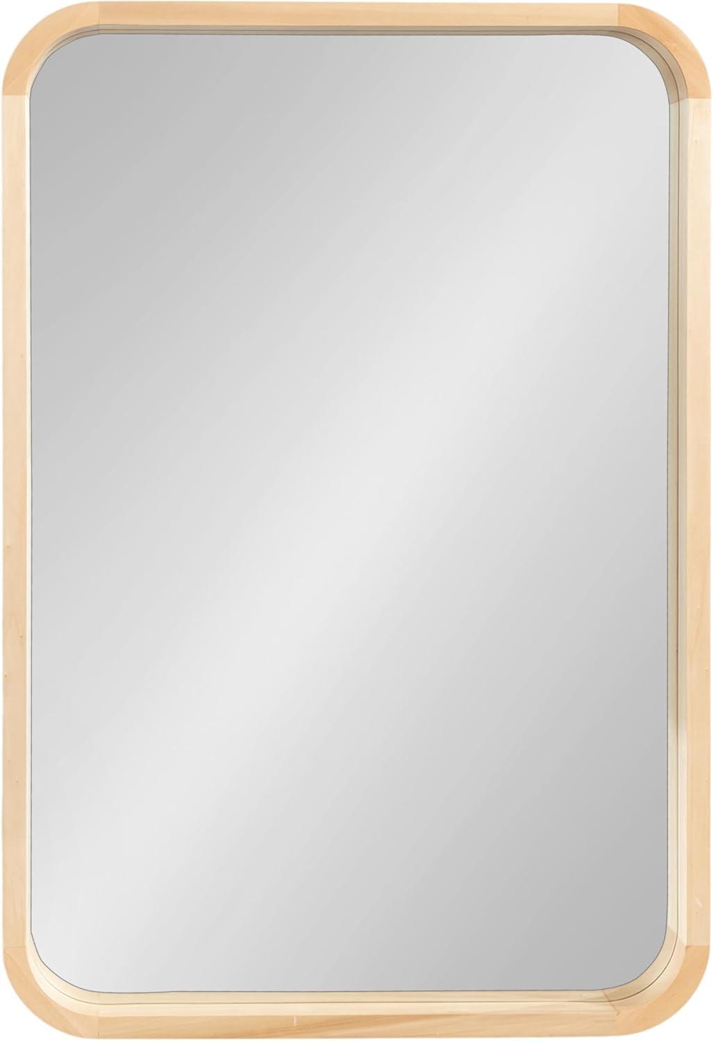 The Hutton wall mirror adds a charming modern statement to your wall while highlighting your home's vibrancy. The design utilizes a clean aesthetic, with a radius rectangle shape that has rounded corners for a softer look. The frame also features a walnut brown finish, creating a dynamic yet transitional accent capable of blending into various decor schemes. The Hutton frame was constructed from a premium solid poplar wood, giving it a thickness and robust quality that will last for years of display. Its overall dimensions are 20 inches by 2 inches by 30 inches, making it a bold wall accent that commands attention. At this size, the Hutton mirror is fabulous as a way to enhance the vibrancy of your home, reflecting your natural light to brighten the room and make it feel more open. It looks perfect both vertically and horizontally as a decorative focal point or as a bathroom mirror over a single or double vanity. Use the metal D-ring hangers attached to the back of the frame for quick, no-hassle hanging in a matter of minutes.