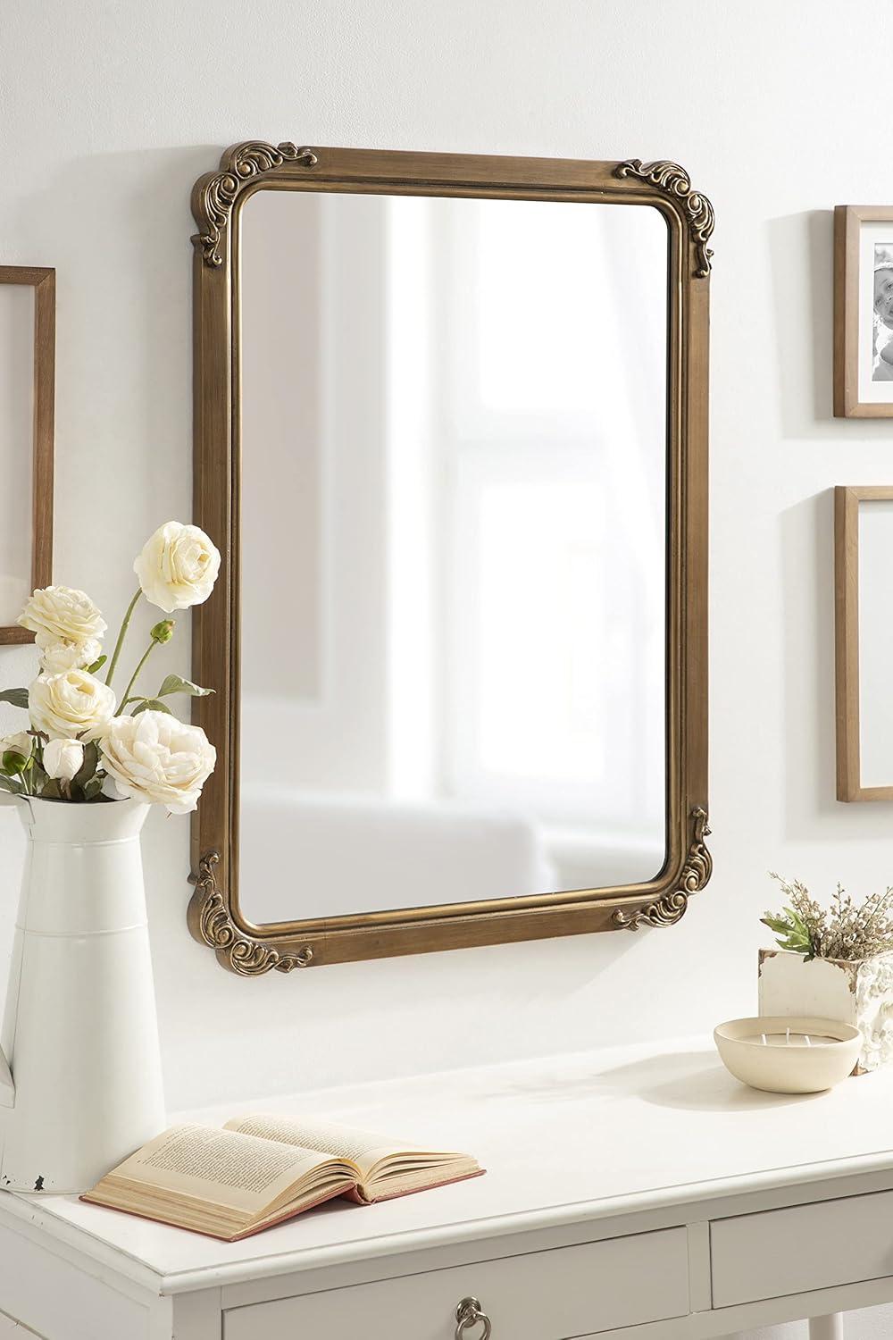 Create a space that embraces timeless glamour by including the Ivette mirror within your wall decor. Inspired by traditional baroque accents, the Ivette mirror has a classic rectangular shape with beautiful garland detailing draped across each corner. The Ivette's frame is made from a lightweight blend of wooden material, with a beautiful chrome silver finish to enhance its overall look. This edition of the glamorous Ivette is 25 inches wide by 1.25 inches deep by 34.5 inches tall, making it perfect for your living room, entryway, or bedroom decor. This accent piece also hangs vertically and horizontally to work with the space within your home, fitting on different walls throughout your home. D-ring hangers are attached to the back of the frame in both orientations to ensure a straightforward installation process. The reflective surface is also 21.25 inches by 30.5 inches, enhancing the brightness and dimension of your space by reflecting light sources. Use this lovely mirror to create a captivating focal point or even bathroom decor or a vanity mirror in your master bath.