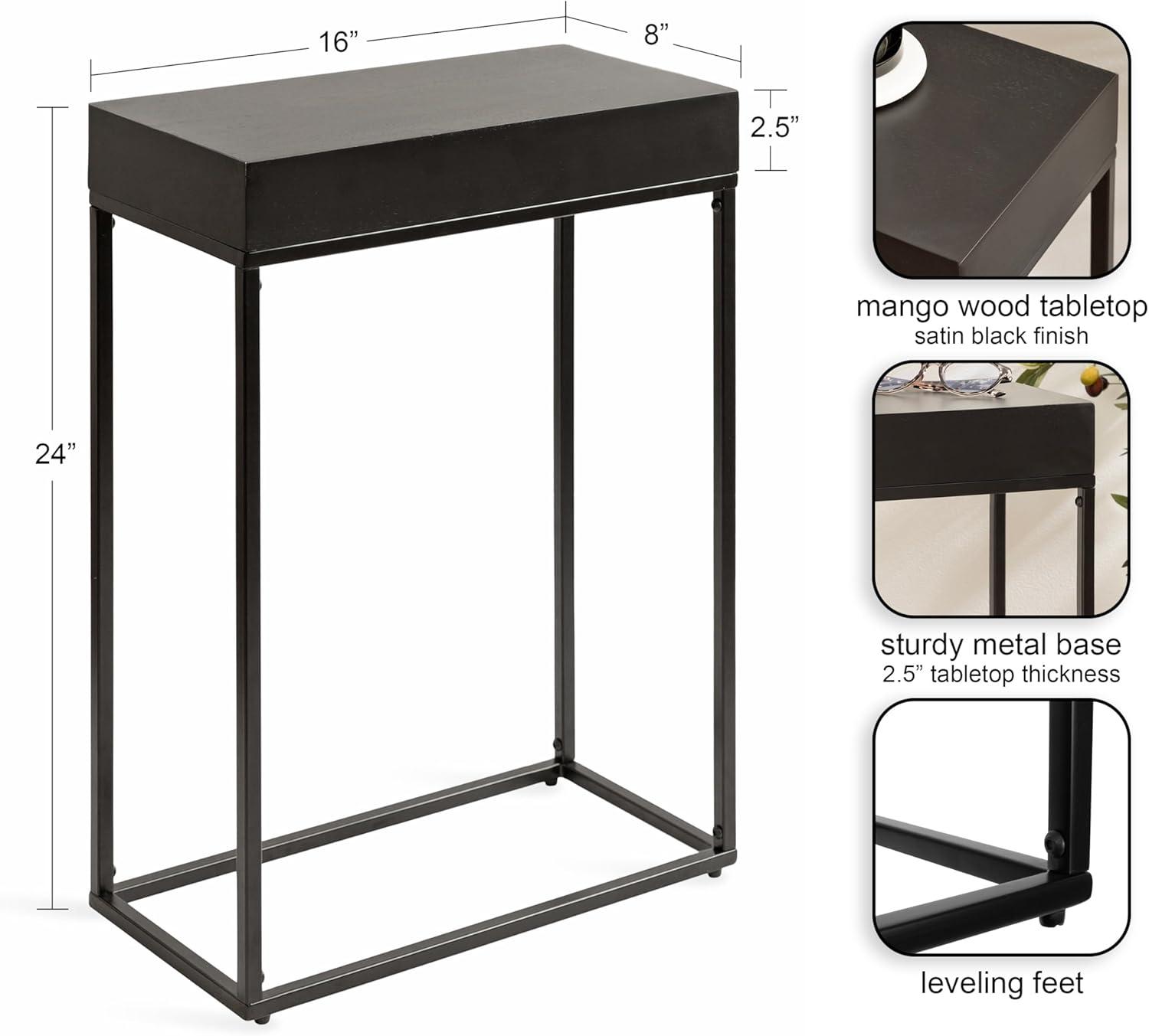 Kate and Laurel Karlsen Modern Wood and Metal Narrow Side Table, 16 x 8 x 24, Black and Antique Brass, Minimal Slim End Table for Use as Bedroom Nightstand or Accent Entryway or Living Room Decor(Black)